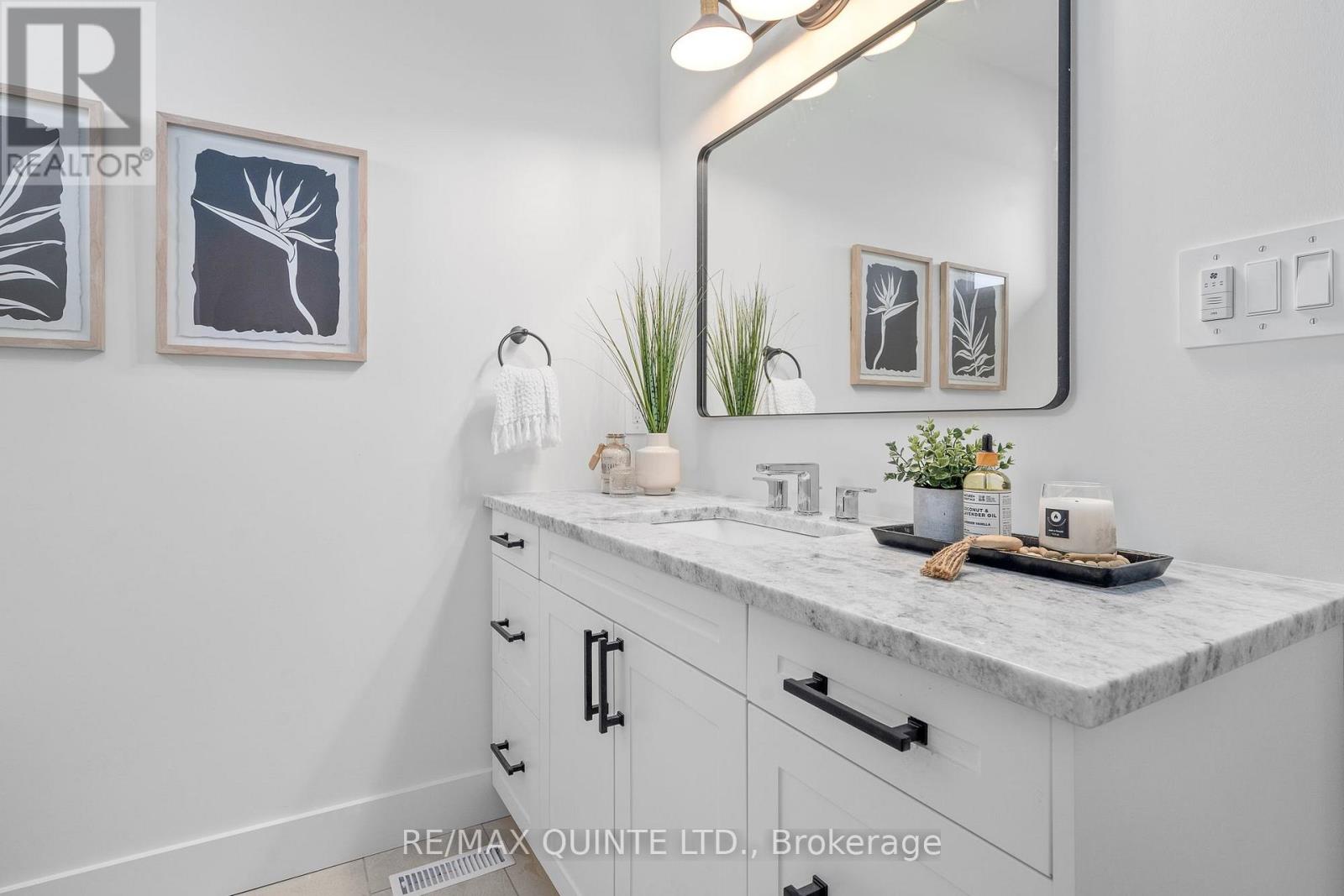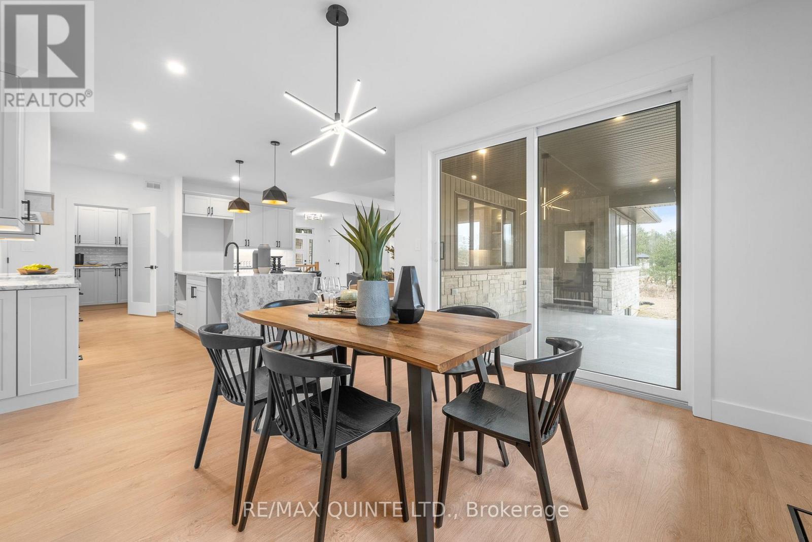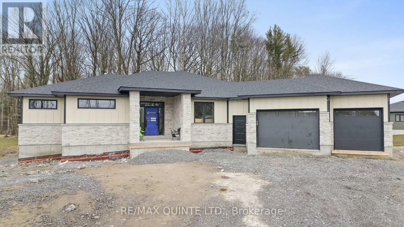 Secure one of the last lots in Portage Place! This masterfully executed 5-bedroom, 3.5-bath executive bungalow offers over 4,200 sq. ft. of finished living space in Prince Edward County. Strategically located near the 401 and municipal amenities, the home features a functional open-concept layout with a stone fireplace, walk-in pantry, and a covered rear deck for seasonal extension. The floor plan includes a dedicated home office and a primary retreat featuring a 5-piece ensuite with radiant in-floor heating and custom-fitted walk-in cabinetry. Two additional main-floor bedrooms share a 4-piece bath. The fully finished basement adds significant value with 2 bedrooms, full bathroom and expansive entertainment area. Technical infrastructure includes a 3-car insulated and drywalled garage, 0.7-acre lot, municipal water, and FIBE internet. A prudent choice for those seeking an executive residence with modern amenities. (id:51158)