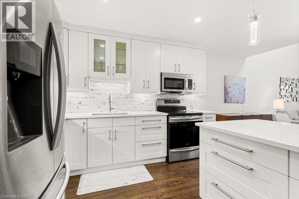 $552 MonthlyStunning Renovated Bungalow Loft in the Heart of Downtown Burlington! Experience living in this beautifully renovated 2-bedroom, 3-bathroom bungalow loft. Perfectly situated just steps from the vibrant heart of downtown Burlington, this condo-style townhouse offers both luxury and convenience. The main floor boasts a bright, open-concept layout highlighted by soaring vaulted ceilings that create an atmosphere of space and light, two spacious bedrooms, two fully updated bathrooms, and laundry facilities. The modern kitchen and living areas are perfect for both relaxing and entertaining. Additionally, the flex loft space can be used as a bedroom, office or living area and offers a third updated full four-piece bathroom. A partially finished basement offers excellent potential for a home gym, recreational room, or additional storage space. Forget about exterior chores; with this property, landscaping and exterior maintenance are taken care of, allowing you to simply lock the door and enjoy all that the area has to offer. Walk to the YMCA, the public library, and an abundance of Burlington's best restaurants, cafes, and shops. This is a rare opportunity to own a unique and stylish home in one of the city's most desirable locations. (id:51158)