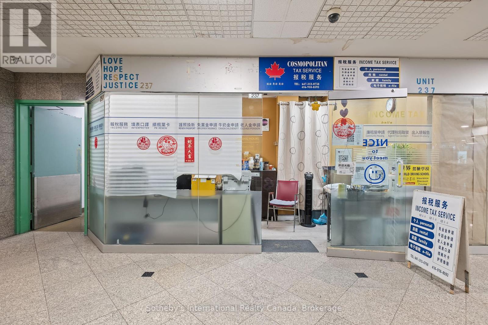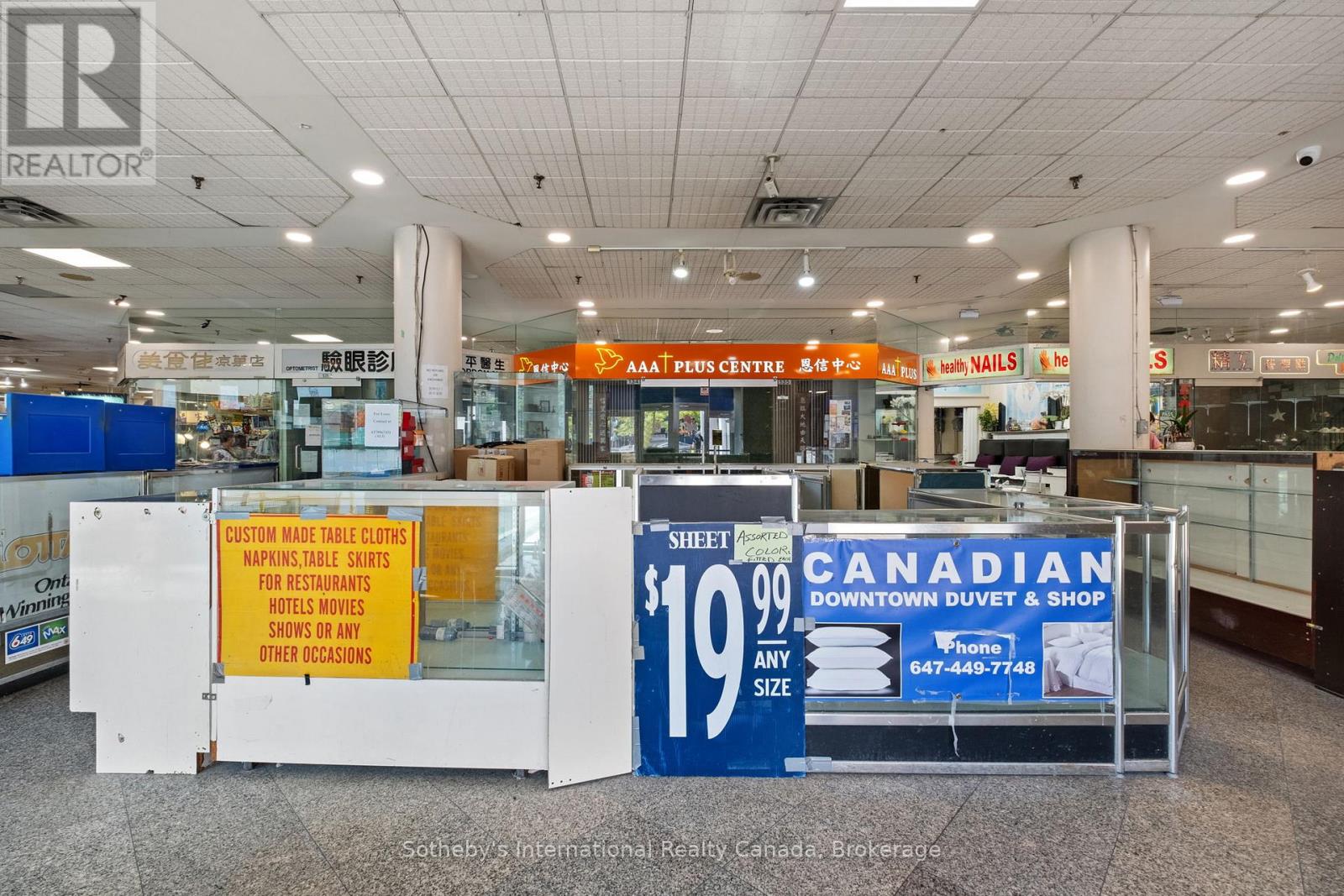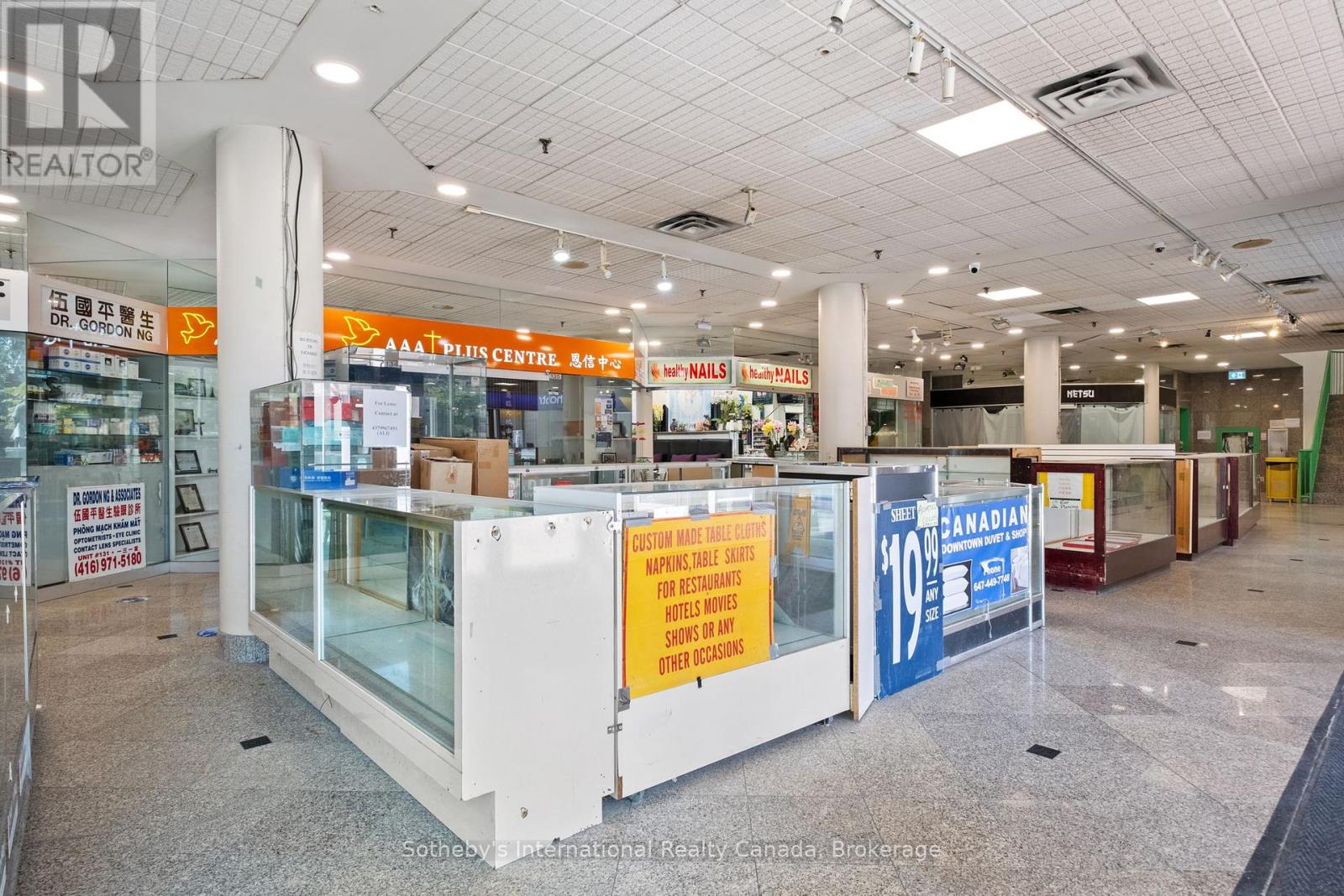 Seize a rare opportunity to own a high-traffic retail package in Chinatown Centre, one of Toronto's most established and vibrant indoor shopping malls. This exceptional offering is a turnkey-ready investment for owner-operators, combining Unit #237 (approx. 91 sq ft) on the second level with seven exclusive-use kiosks (approx. 1,841sq ft) on the main floor, for a total of approximately 1,932 sq ft of prime retail space. With all fixtures and kiosks included, this is a ready-to-go property with excellent visibility and high foot traffic, perfect for businesses such as cosmetics, telecommunications, jewelry, florists, handbags, and gifts. Don't miss this unique chance to own, not just lease, a significant retail footprint in a highly sought-after downtown destination. (id:51158)