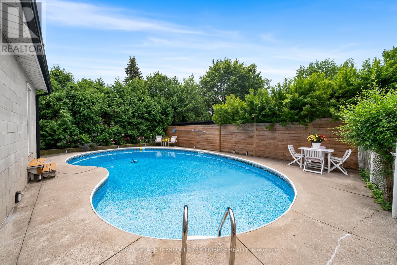 Charming and spacious family home, situated on a coveted 50 x 142 ft south-facing lot, offering an abundance of natural light throughout the day. Step inside to discover a generous interior layout that includes expansive living and dining areas, ideal for both casual family living and elegant entertaining. The heart of the home is the inviting kitchen, complemented by a cozy breakfast area- the perfect spot for morning coffee and casual meals. This home features three well-sized bedrooms, each with closet space and a comfortable retreat at the end of the day. Outside, find the spectacular inground swimming pool with solar heating, providing an eco-friendly way to enjoy the water all season long. Located in a highly sought-after neighborhood, this home combines the tranquility of a residential setting with easy access to nearby amenities, schools, and parks. Whether you're hosting family gatherings, relaxing by the pool, or enjoying the sun-filled interiors, this home is the perfect place to create lasting memories. **EXTRAS include newer furnace & newer AC, barbeque, pool equipment, pool solar heater, 3 skylights, newer roof (partial), newer washer & dryer.** (id:51158)