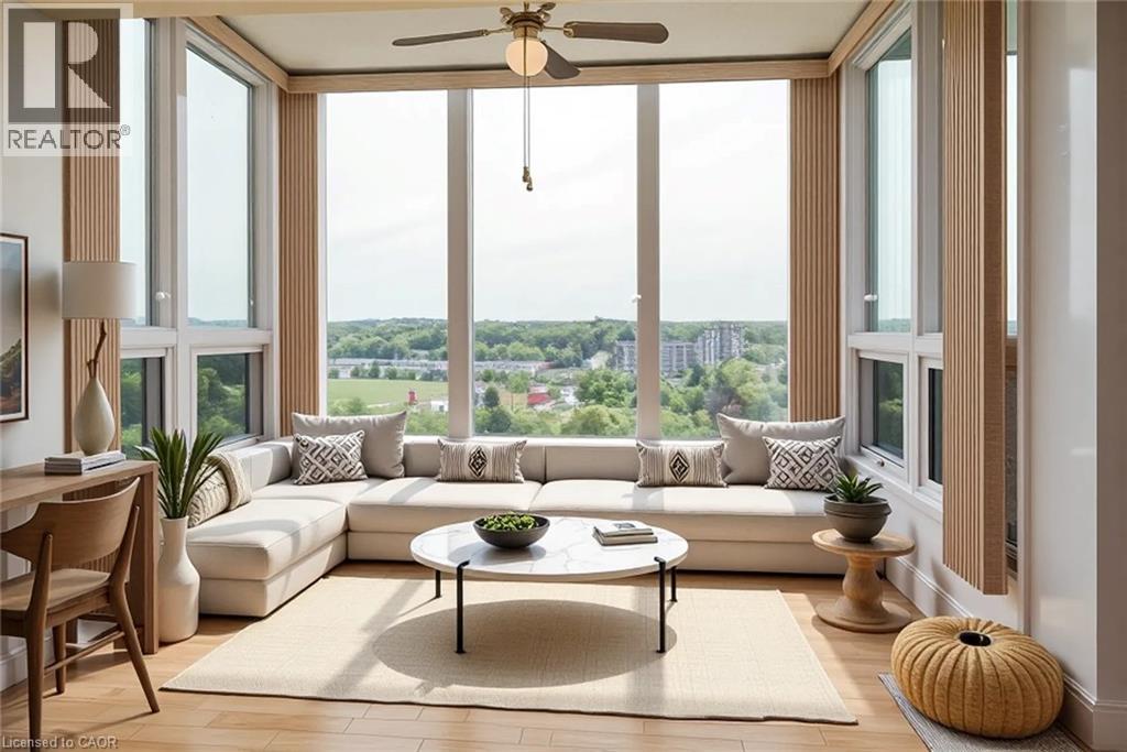 Welcome to Kressview Springs, where condo living meets comfort and convenience. This bright and spacious 2-bedroom, 2-bathroom unit, offering sweeping views of Riverside Park and the Grand River. Whether you’re enjoying morning coffee in the sunroom, relaxing on your private balcony, or exploring the trails just outside your door, this home connects you to nature in every season. Inside, the open living and dining space flows easily, with large windows filling the unit with natural light. The kitchen is open-concept with great storage, and the convenience of in-suite laundry makes day-to-day living simple. The primary bedroom features a private ensuite, while the second bedroom works perfectly for guests and or a home office. The building is known for its exceptional amenities: heated indoor pool, hot tub, fitness room, library, games room, woodworking shop, craft room, and an outdoor terrace with BBQs. Secure underground parking, a storage locker, and recent updates to the windows and lobby make this a turn-key choice. With easy access to Highway 401, public transit, shopping, and restaurants, this unit offers a lifestyle that’s both peaceful and practical. Don’t miss your chance to make Kressview Springs your new home. Schedule a private showing today! (id:51158)