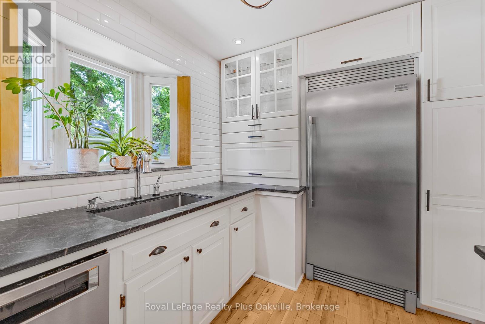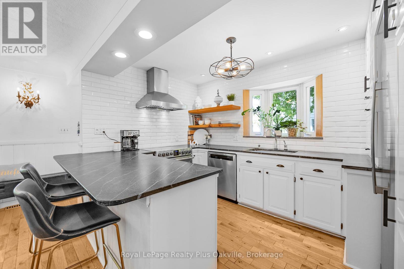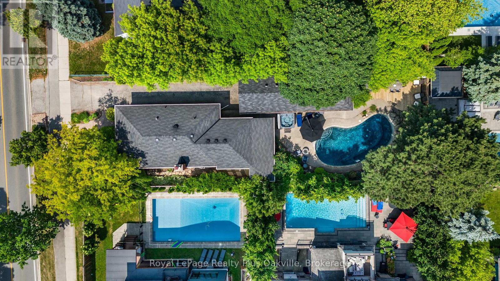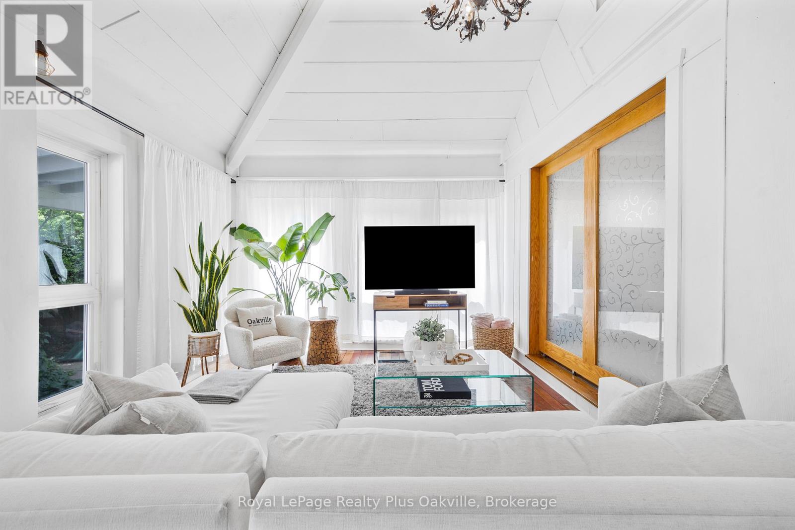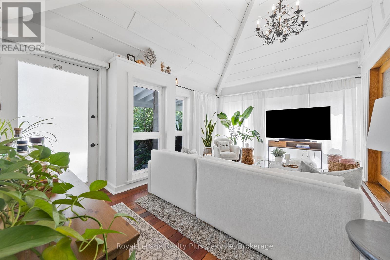 Nestled within the tranquil Bronte neighbourhood, this well-maintained bungalow with a private front porch presents a rare opportunity in Bronte Village. A one-of-a-kind find, boasting a sought-after 50' x 150' treed private lot, this property exudes charm and character. The heart of the home features a fabulous family room addition with a vaulted ceiling, enhanced by natural light streaming through the abundance of windows.Two bedrooms on main level with the primary bedroom overlooking the back gardens. Two full bathrooms in the home with main floor dining room plus the lower level has a large rec-room with a bar area and wood burning fireplace. Beyond the main residence, a delightful pool house invites relaxation, complemented by a large driveway offering ample parking for up to four vehicles. Step into the incredible Muskoka-like backyard oasis, complete with an in-ground saltwater pool and hot tub, surrounded by gorgeous gardens, mature trees, armour stone, deck, and exposed aggregate concrete a perfect stage for summer entertaining. With two gas lines, outdoor gatherings are a breeze. This property is a must-see to fully appreciate the blend of privacy, comfort, and entertainment potential it offers. (id:51158)