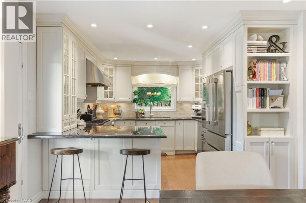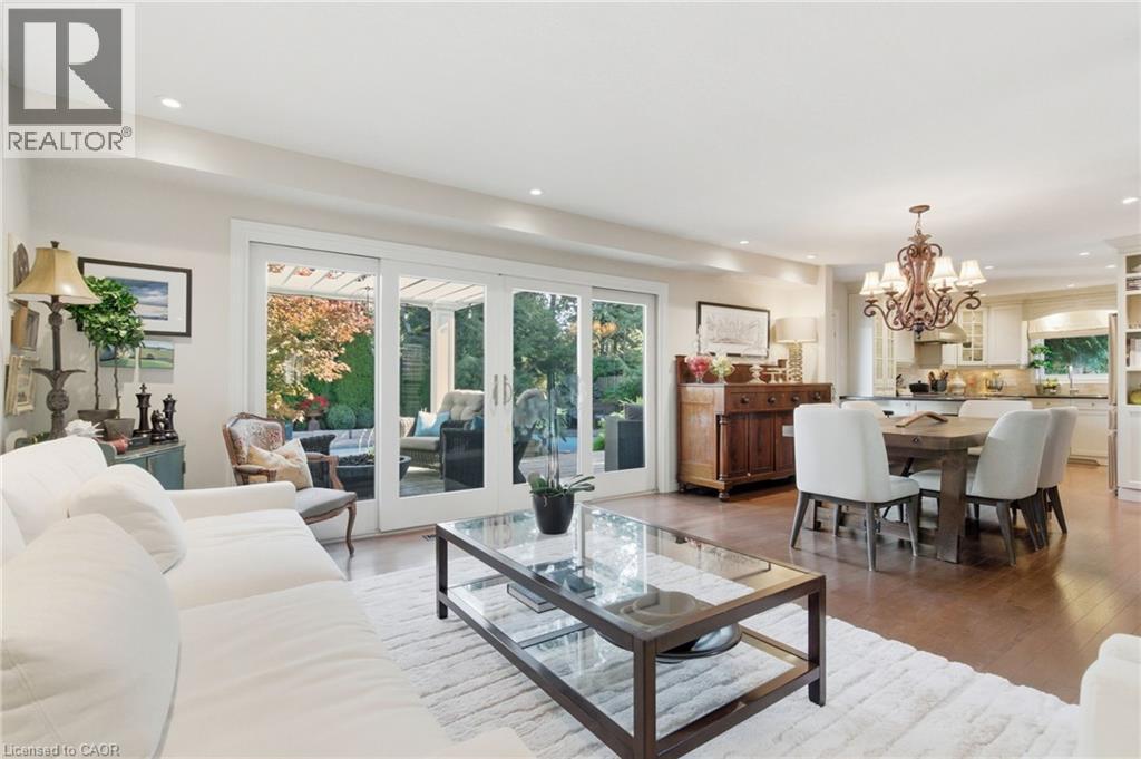 Welcome to this beautifully renovated home in one of Burlington’s most established and family-friendly neighbourhoods! Ideally located near parks, shopping, and quick highway access, this stunning 2-storey residence has been thoughtfully redesigned with quality finishes and attention to detail. The open-concept main floor showcases a modern kitchen with gas cooktop, double wall oven, large windows, and island seating that flows seamlessly into the dining and living rooms, perfect for everyday living and entertaining. A versatile bonus room on the main level, currently a TV lounge, could serve as a home office, playroom, or even a main-floor bedroom. Upstairs, brand-new carpeting leads to four spacious bedrooms. The primary retreat offers two closets (one walk-in) and a beautifully updated 4-piece ensuite, while the updated main bath features a large glass shower. The fully finished lower level includes new carpeting, a games area with pool table, and a cozy rec room for movie or sports nights. Step outside to your private backyard paradise! The heated inground pool is surrounded by mature trees, lush gardens, and professional landscaping for complete privacy. An expansive deck offers multiple seating areas, a covered lounge with gas fire feature, gas BBQ hookup, and ambient lighting, perfect for day or night enjoyment. This exceptional property combines comfort, style, and outdoor luxury in the heart of Brant Hills. (id:51158)