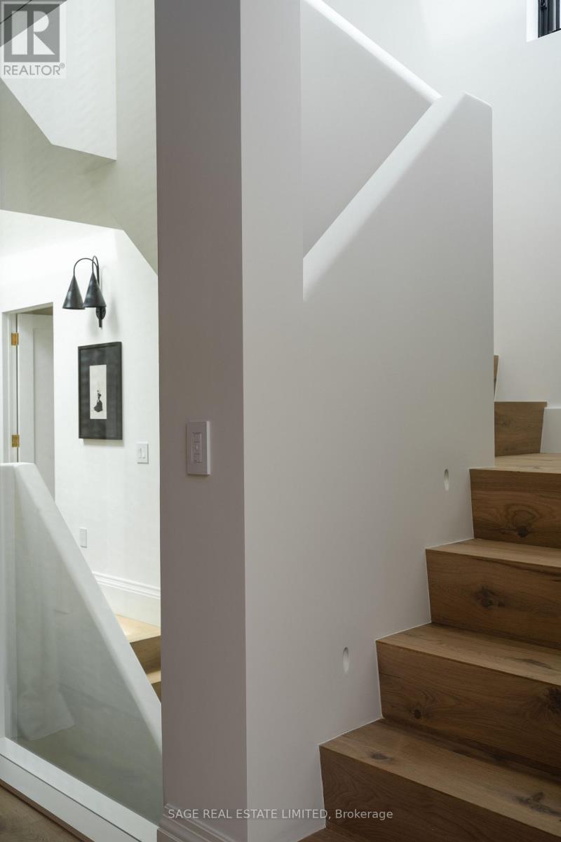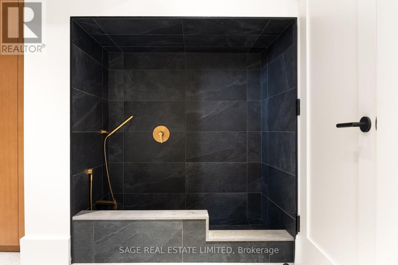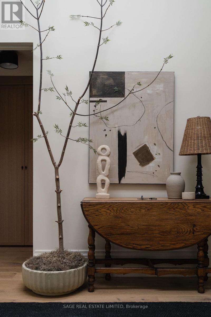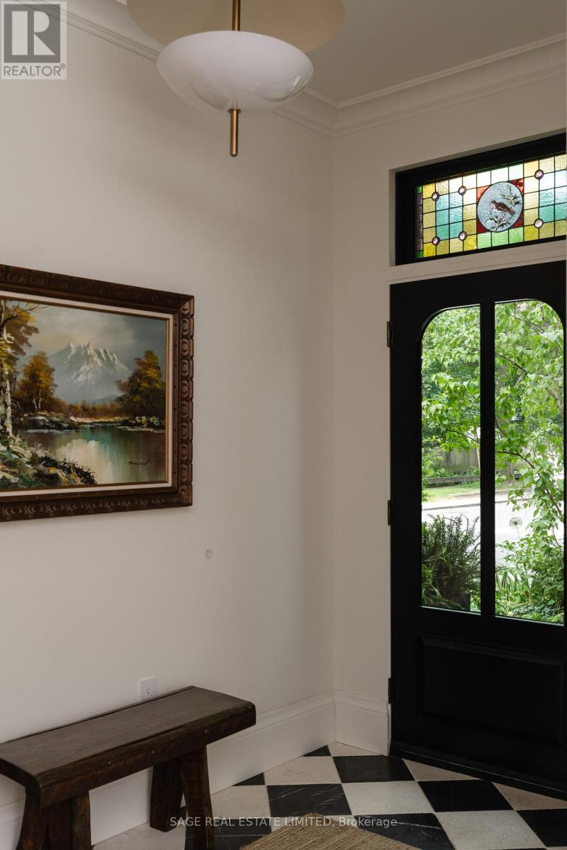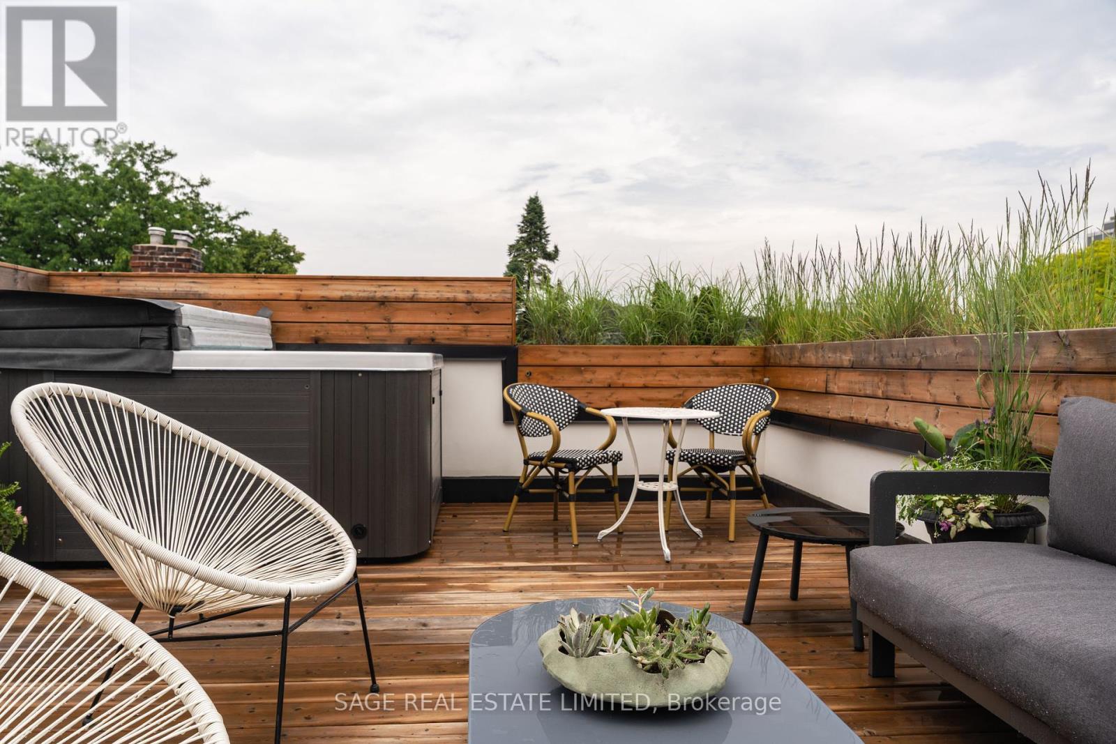 THE BOLD AND THE BORDEN. Absolute heart-stopper in the Annex with every single thing you thought of and things you hadn't even considered needing until this very second (keep reading). Designed by interior designer and homeowner, Lyndsay Jacobs Interior, this home is a gorgeous collision of design, function, soul and craftsmanship. Standout features include: meticulously restored 1878 stained glass windows, Canadian limestone fireplace mantle with gas insert, exposed brick, custom millwork throughout and soft curved walls that gently guide you through the space. Natural light pours in from 10-foot bi-fold kitchen windows/doors highlighting abundant custom cabinetry and a 17-foot floating Nero Borghini marble shelf. Built-in column fridge/freezer set up keeps things sleek, with under-counter refrigeration and prep sink offering daily luxury and professional level functionality. Skylights draw your eyes up through a four storey staircase by Ultrastairs, leading to serene, peaceful bedroom quarters where the outside world disappears and offers you a deep exhale from the chaotic energy of the day. Bathrooms feature unlacquered brass plumbing fixtures from Watermark, Waterworks and Kallista. And then there's the rooftop: a private, treetop-view sanctuary with a saltwater Arctic Spa hot tub, beverage station, natural gas fire pit hookup and pure Toronto magic in all four seasons.The lower level includes a custom media room designed by Bay Bloor Radio, with in-wall Bowers & Wilkins surround sound. Other lower level features include a 400-bottle, climate controlled wine cellar, a dog wash and a fully contained in-law suite. Perilously perfect location sandwiched between the fab restaurant scenes on Harbord and in Yorkville and a quick skip to Ossington. Boldly go to Borden. A winner in every single way. (id:51158)