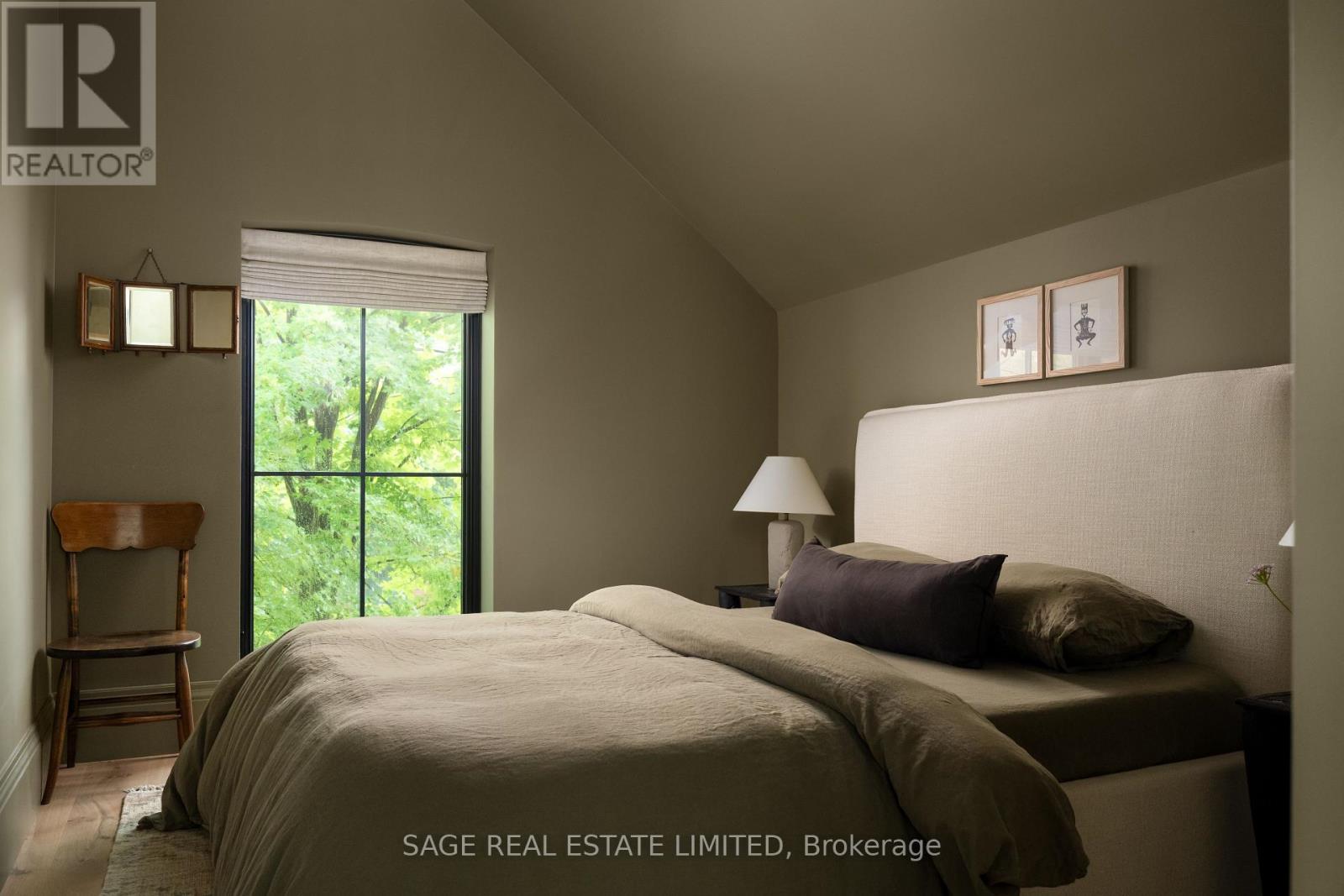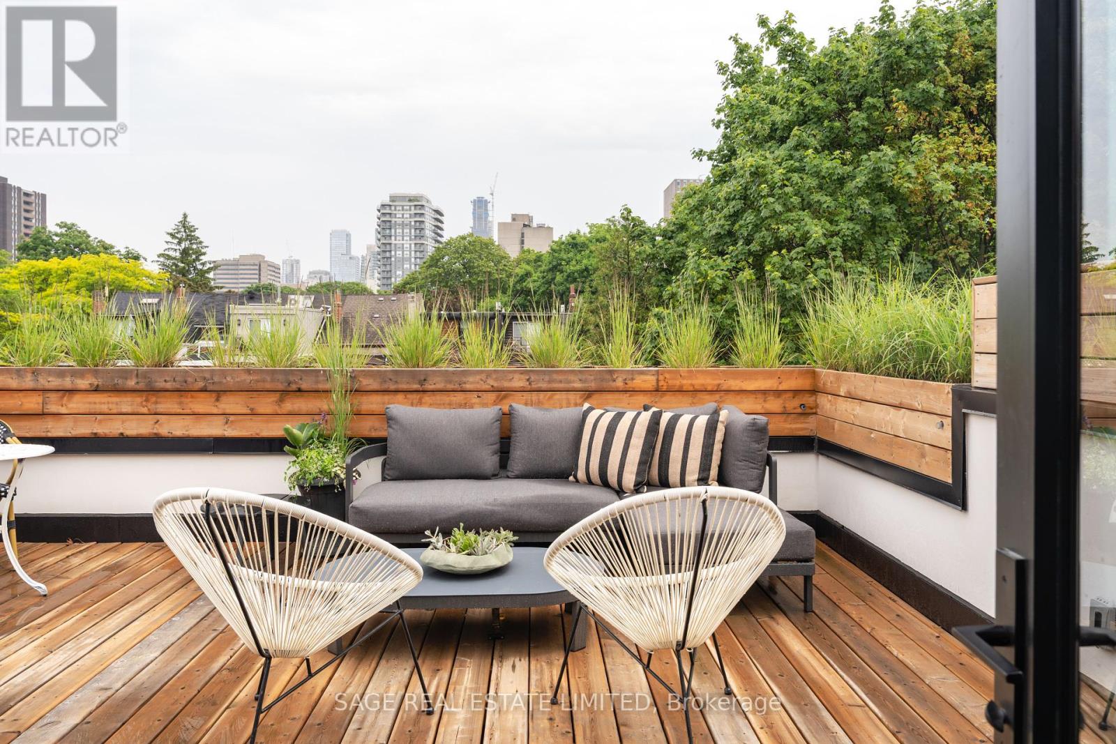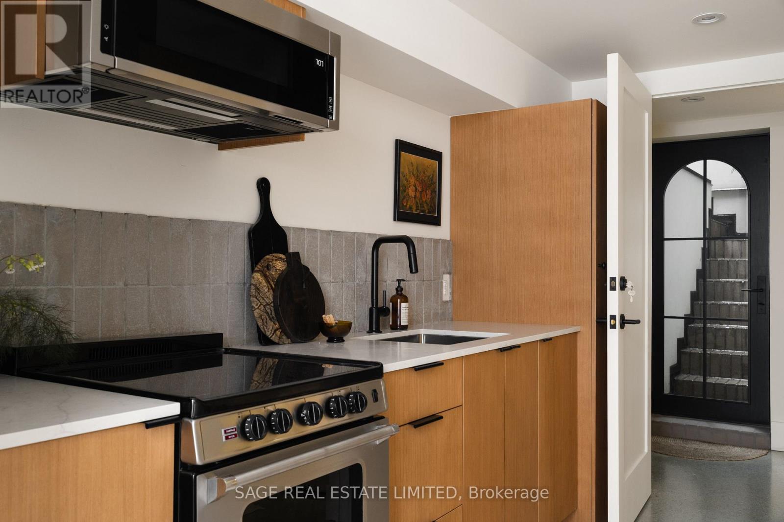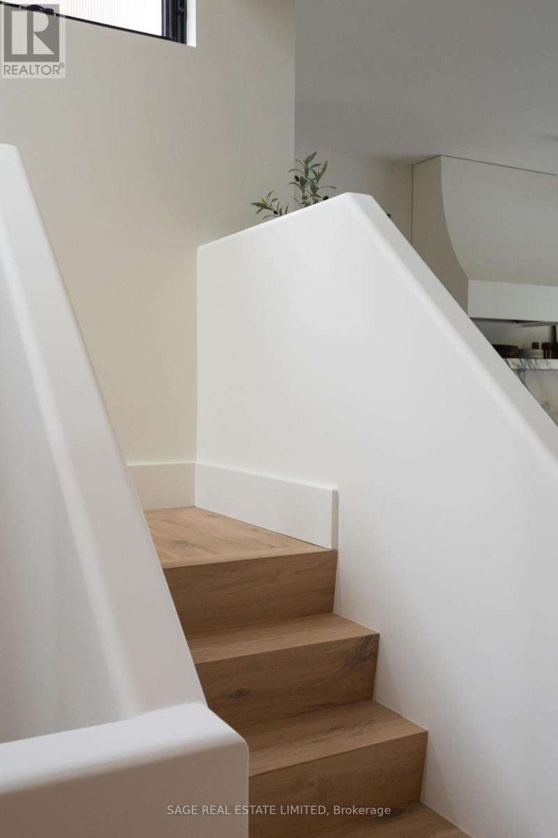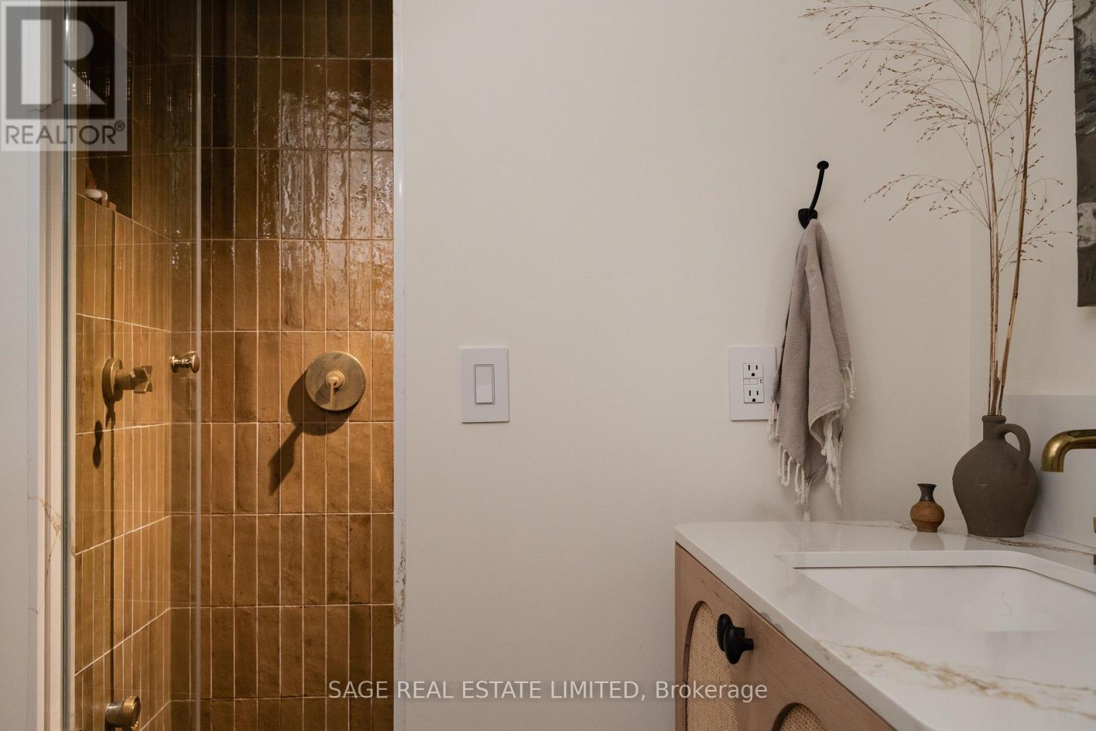 THE BOLD AND THE BORDEN. Absolute heart-stopper in the Annex with every single thing you thought of and things you hadn't even considered needing until this very second (keep reading). Designed by interior designer and homeowner, Lyndsay Jacobs Interior, this home is a gorgeous collision of design, function, soul and craftsmanship. Standout features include: meticulously restored 1878 stained glass windows, Canadian limestone fireplace mantle with gas insert, exposed brick, custom millwork throughout and soft curved walls that gently guide you through the space. Natural light pours in from 10-foot bi-fold kitchen windows/doors highlighting abundant custom cabinetry and a 17-foot floating Nero Borghini marble shelf. Built-in column fridge/freezer set up keeps things sleek, with under-counter refrigeration and prep sink offering daily luxury and professional level functionality. Skylights draw your eyes up through a four storey staircase by Ultrastairs, leading to serene, peaceful bedroom quarters where the outside world disappears and offers you a deep exhale from the chaotic energy of the day. Bathrooms feature unlacquered brass plumbing fixtures from Watermark, Waterworks and Kallista. And then there's the rooftop: a private, treetop-view sanctuary with a saltwater Arctic Spa hot tub, beverage station, natural gas fire pit hookup and pure Toronto magic in all four seasons.The lower level includes a custom media room designed by Bay Bloor Radio, with in-wall Bowers & Wilkins surround sound. Other lower level features include a 400-bottle, climate controlled wine cellar, a dog wash and a fully contained in-law suite. Perilously perfect location sandwiched between the fab restaurant scenes on Harbord and in Yorkville and a quick skip to Ossington. Boldly go to Borden. A winner in every single way. (id:51158)