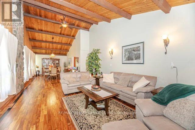 Welcome to your private retreat in one of the BEST areas of Caledon. Beautiful 2.98 acres located just off the scenic Forks of The Credit. Custom 3 bedroom raised bungalow with 3 car garage. Over 2100 sqr ft on the main floor and over 4000 sqr ft of finished living space!! Kitchen has granite counters, stainless steel appliances and walk-out to a multilevel deck. Amazing 14 ft vaulted ceilings, walnut hardwood floors and stone wall feature in the open concept living and dining rooms. Perfect for entertaining!! Primary Bedroom has a 5 pc ensuite, 2 walk-in closets and heated floors. It also has a private balcony overlooking the pond. 2 more spacious bedrooms and a 4 pc bath on the main floor. The lower level features High ceilings, 2nd kitchen, 3 pc bathroom, above grade windows and multiple entrances making it perfect for multi-generational living. 4th and 5th bedrooms both have fireplaces and sliding doors to the patio. This home also has a steel roof with heat trace overhang (transferrable warranty), a new septic (2025) $50,000 and generac system. Available Bell Fibe for home office. Gorgeous outside space to entertain or just take in the surroundings. Move in and enjoy the privacy, peace and tranquility of this amazing property! (id:51158)