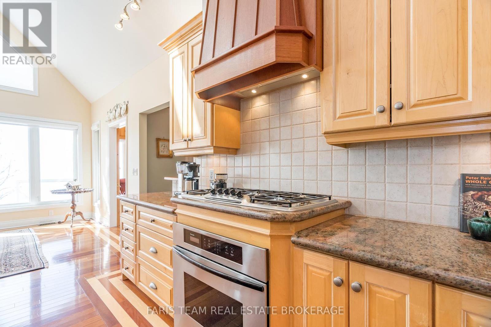 Top 5 Reasons You Will Love This Home: 1) Custom waterfront home featuring 4,066 square feet above ground and 5,899 total, while being nestled on a double lot of almost 1 acre and leading to 120 feet of sandy Georgian Bay beachfront 2) Pamper yourself with the many luxurious features of this home including a large main level primary bedroom, sunroom, theatre room, family room, office, exercise room, four gas fireplaces, huge deck, high-speed internet, generator, outdoor shower, a brand-new 90000 BTU furnace, and a 4 ton heat pump 3) Entertain family and guests with this exceptional gourmet kitchen, Brazilian cherry hardwood floors, granite counters, a five burner gas cooktop, two islands, and a large pantry 4) Enjoy the functionality of the featured one-bedroom apartment for in-laws, family or friends, with the added benefit of this home incorporating the original, historic log cabin built by the founder of the subdivision in 1922 5) Enjoy the convenience of Midland restaurants, coffee shops and shopping only 10 minutes away. Furniture available. 5,899 fin.sq.ft. (id:51158)