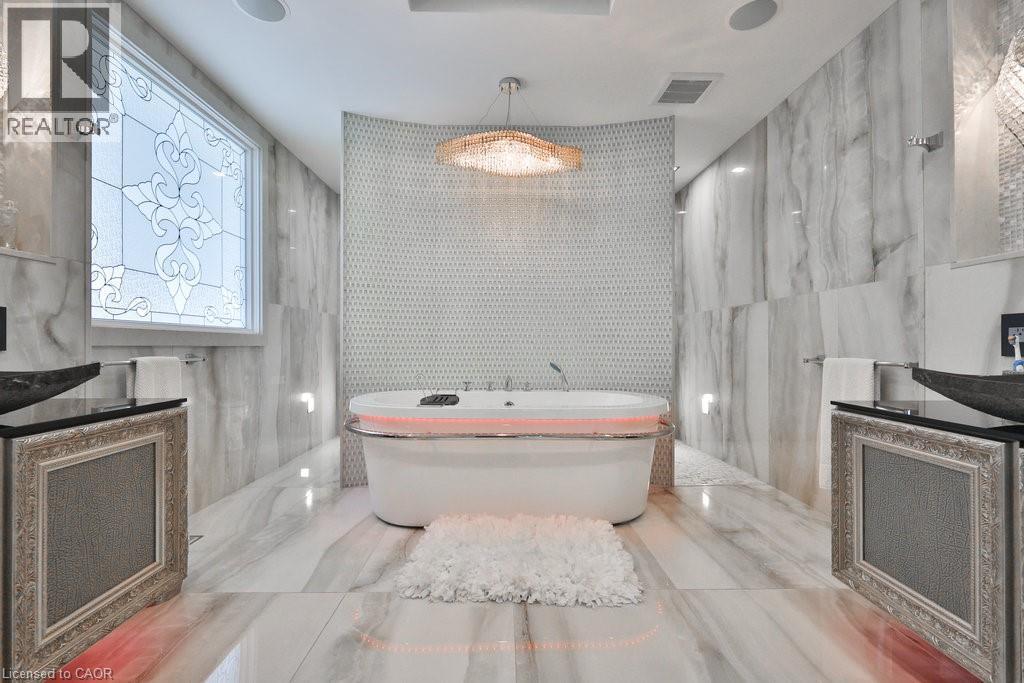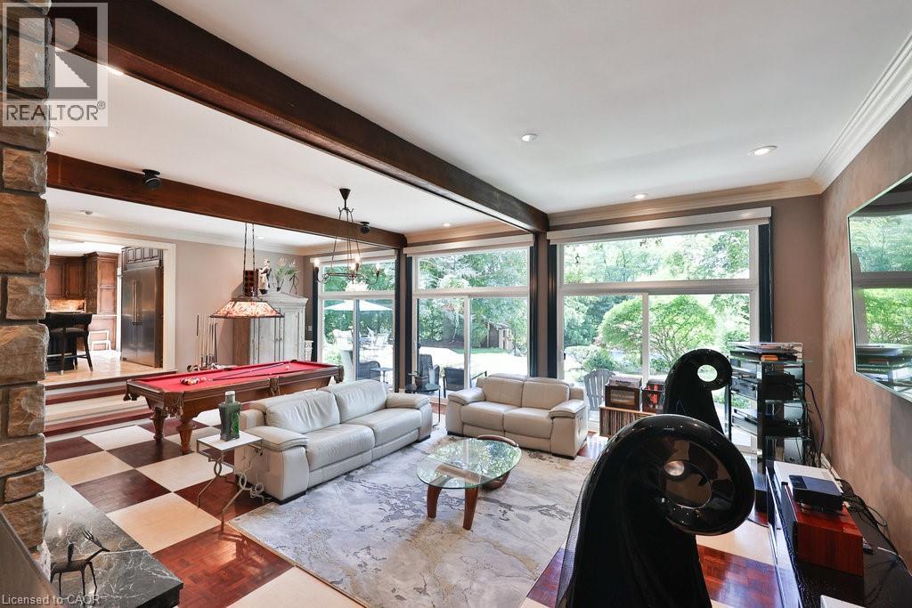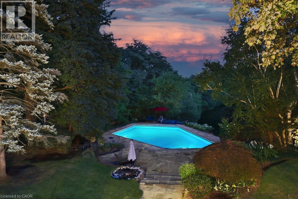 Welcome to Muskoka in the city! This extraordinary .96ac property, with its breathtaking views and total privacy, presents an extremely rare real estate opportunity. This gorgeous sprawling bungalow features 6,317SF of high-end finished space (3,417 AG) which over the last 15 years has had over 1 mil. in whole home renovations. Just to mention a few: Georgian Bay Ledge Rock exterior and massive rooftop terrace to enjoy the spectacular scenery. CHEF'S CUSTOM DREAM KITCHEN with solid wood cabinets, gas fireplace, Viking Pro Series 48 6-burner double oven gas range with commercial grade exhaust hood, 3 dishwashers, Bosch B/I microwave, Electrolux 66 fridge & freezer combo, Hisense beverage fridge, Reverse Osmosis drinking water system, Commercial draft beer taps with chilled lines and True Keg cooler, Barista bar with La Spaziale commercial espresso machine, Pioneer B/I 5.1 Dolby audio system with subwoofer, Sony 42 TV and heated floors. You may never want to leave your kitchen! Step into the Huge Great Room with 10' ceilings. LED pot lighting T/O. Hardwood flooring T/O. Custom library/office with 2-sided gas fireplace and lounge area. Bathrooms have high-end fixturing, heated floors and extensive use of marble, granite and porcelain. Electronic blinds in kitchen, great room and primary bedroom. B/I temperature controlled wine cabinet in dining room. Special fiberglass roof shingles with 50 year warranty. Eavestroughs have LeafFilter screens. All main windows and patio doors. Concrete pool has a special paint finish, new Hayward heater, pump and salt water filtration. Recently completed basement with industrial design inspiration and bedroom with Arizona vistas. 22,000 watt Generac back-up generator. The addition of a 3-car insulated garage, heated and air conditioned. Extensive landscaping. Please click on the link below for all inclusions and floorplans. Just minutes to shopping, restaurants, schools, playground, park, trails, golf, Aldershot GO, etc. 10+++ (id:51158)
