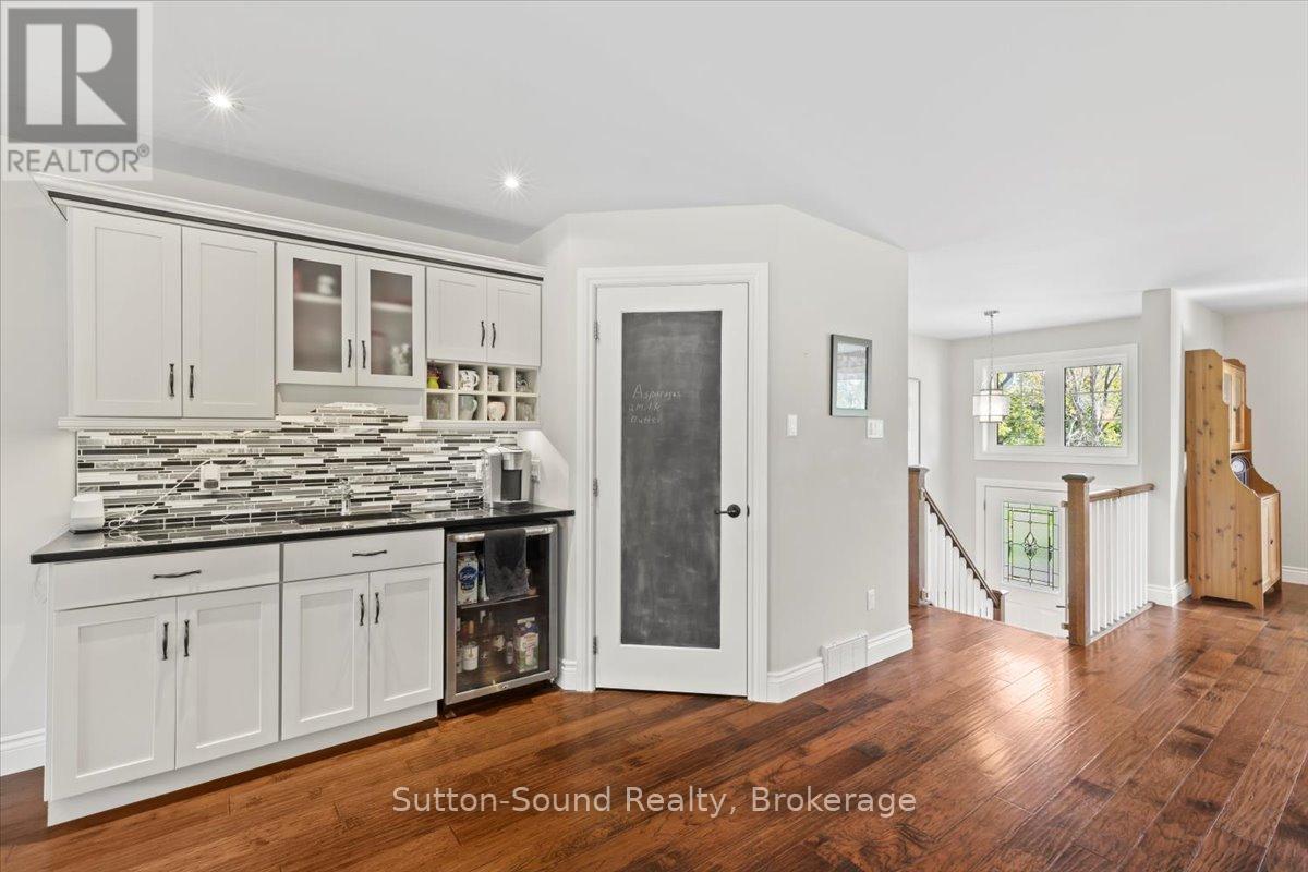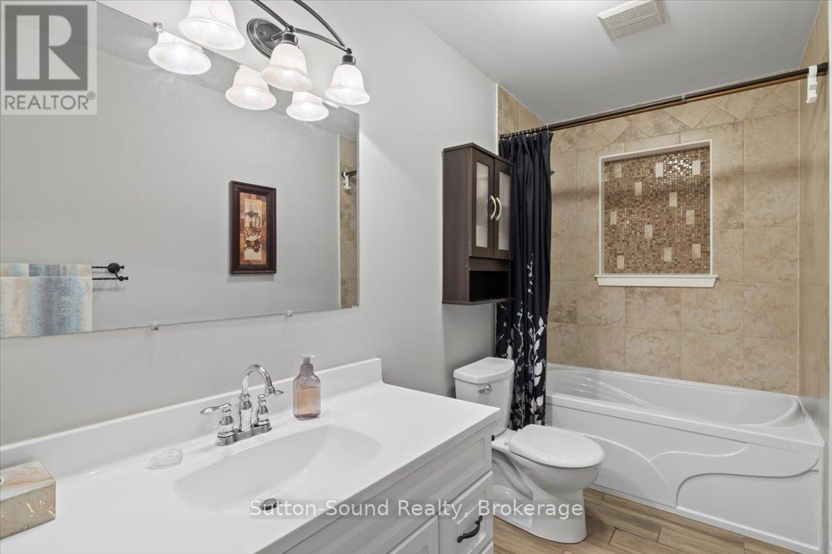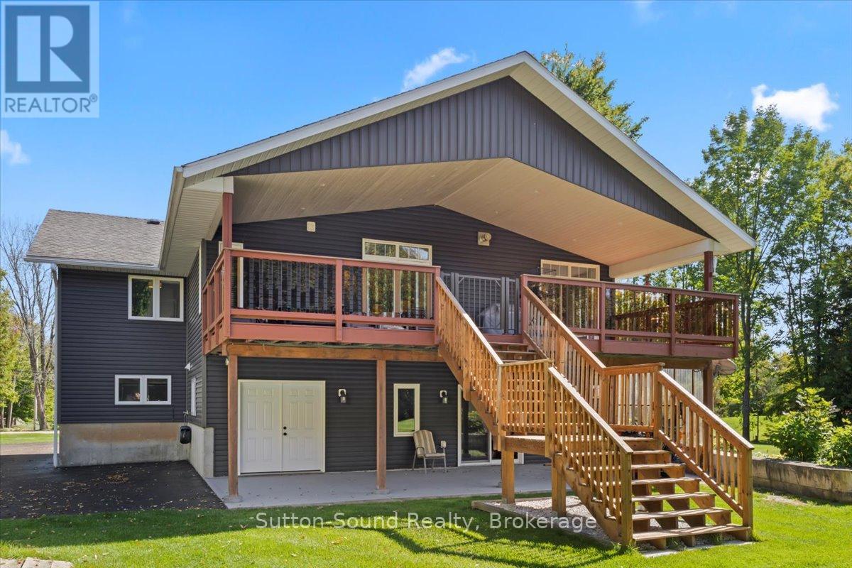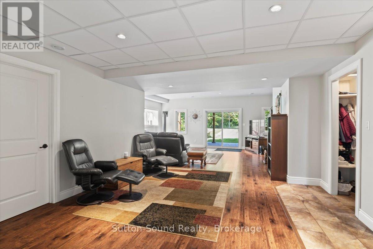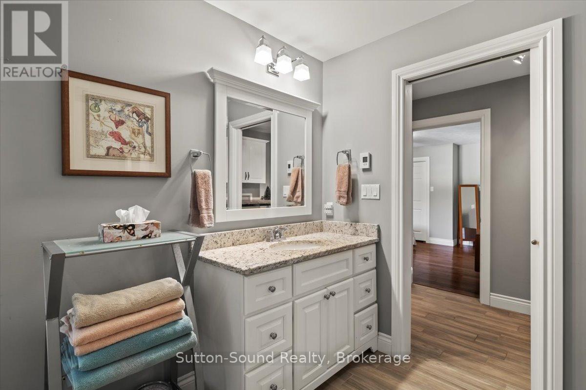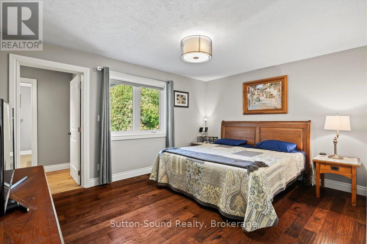 Welcome to this stunning family home siting on ONE acre, offering modern updates and thoughtful design in a desirable Georgian Bluffs location WITH natural gas. The open-concept family room features cathedral ceilings, engineered hardwood floors, an eye catching stone (gas) fireplace, and walkout to a covered deck. The showpiece gourmet kitchen boasts a 12' x 5' island with granite countertops, stainless steel appliances, coffee bar with wine fridge, and walk-in pantry. The spacious primary suite includes a step-in closet and ensuite with in-floor heating, while two additional bedrooms feature updated flooring and custom closet shelving. Main floor laundry adds convenience. The finished basement offers a sun-filled rec room, gas fireplace, large bedroom, mudroom, storage, 2-pc powder room, and walkout to a patio, with potential for an in-law suite. A heated/air-conditioned workshop and garage with bench and heater are ideal for hobbyists. Outside, enjoy the large mature yard with firepit and 12' x 20' Shelter Logic enclosure for extra storage and a Mennonite built 9' x 12' garden shed. Smart home lighting throughout and professionally maintained mechanicals complete this move-in ready property. Everything is ready for you - just move in and call it HOME! (id:51158)