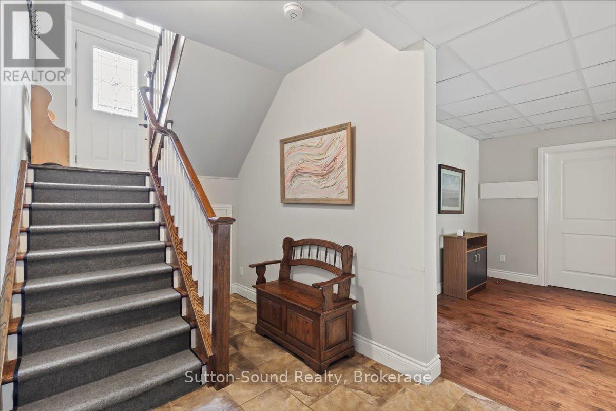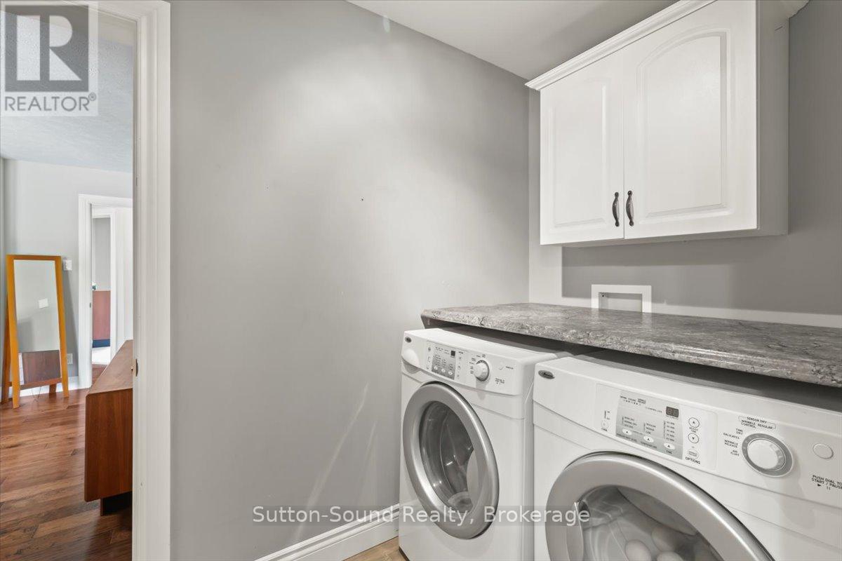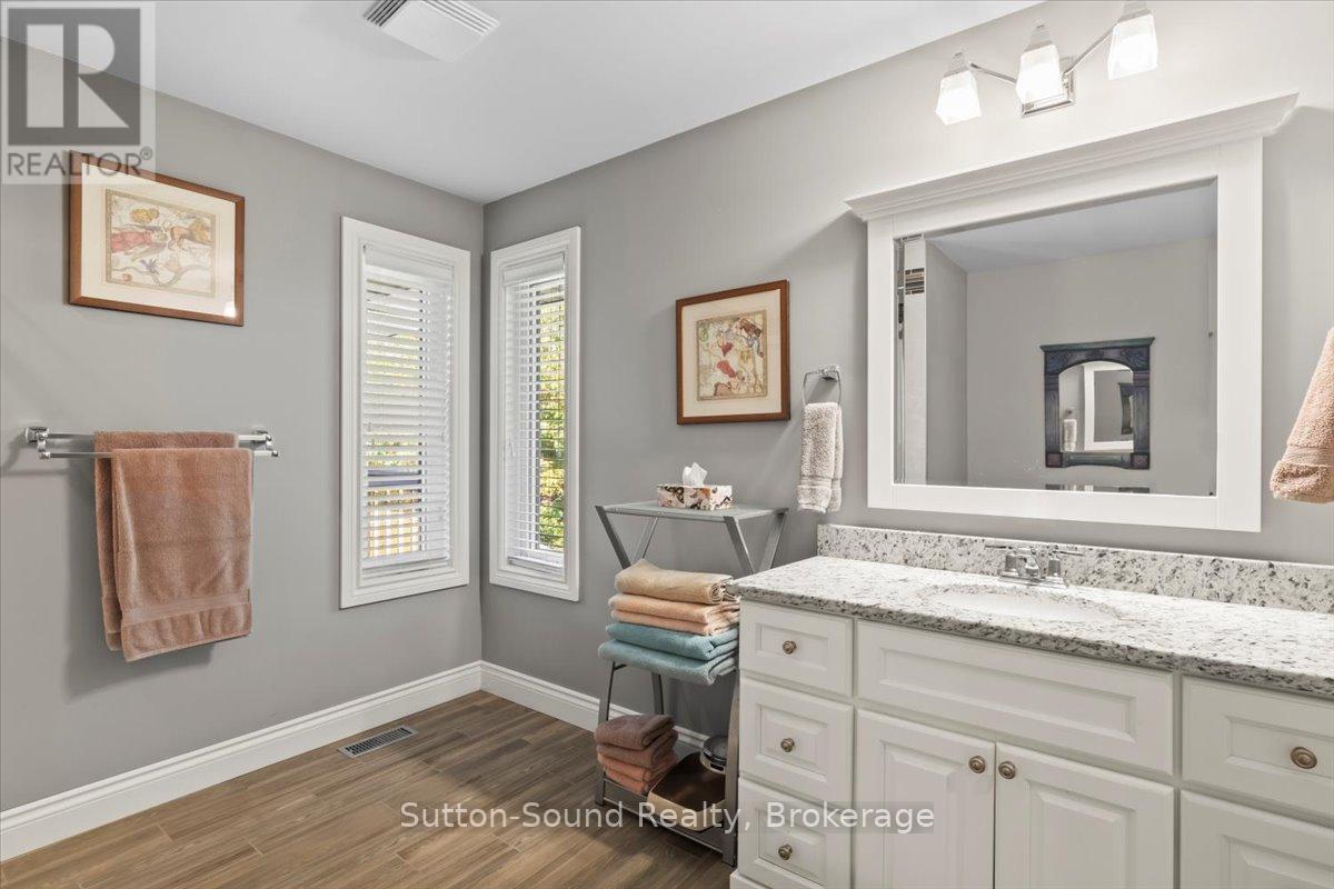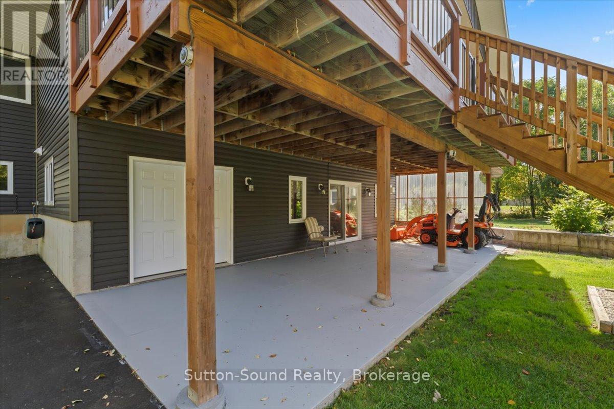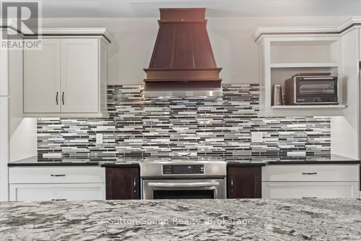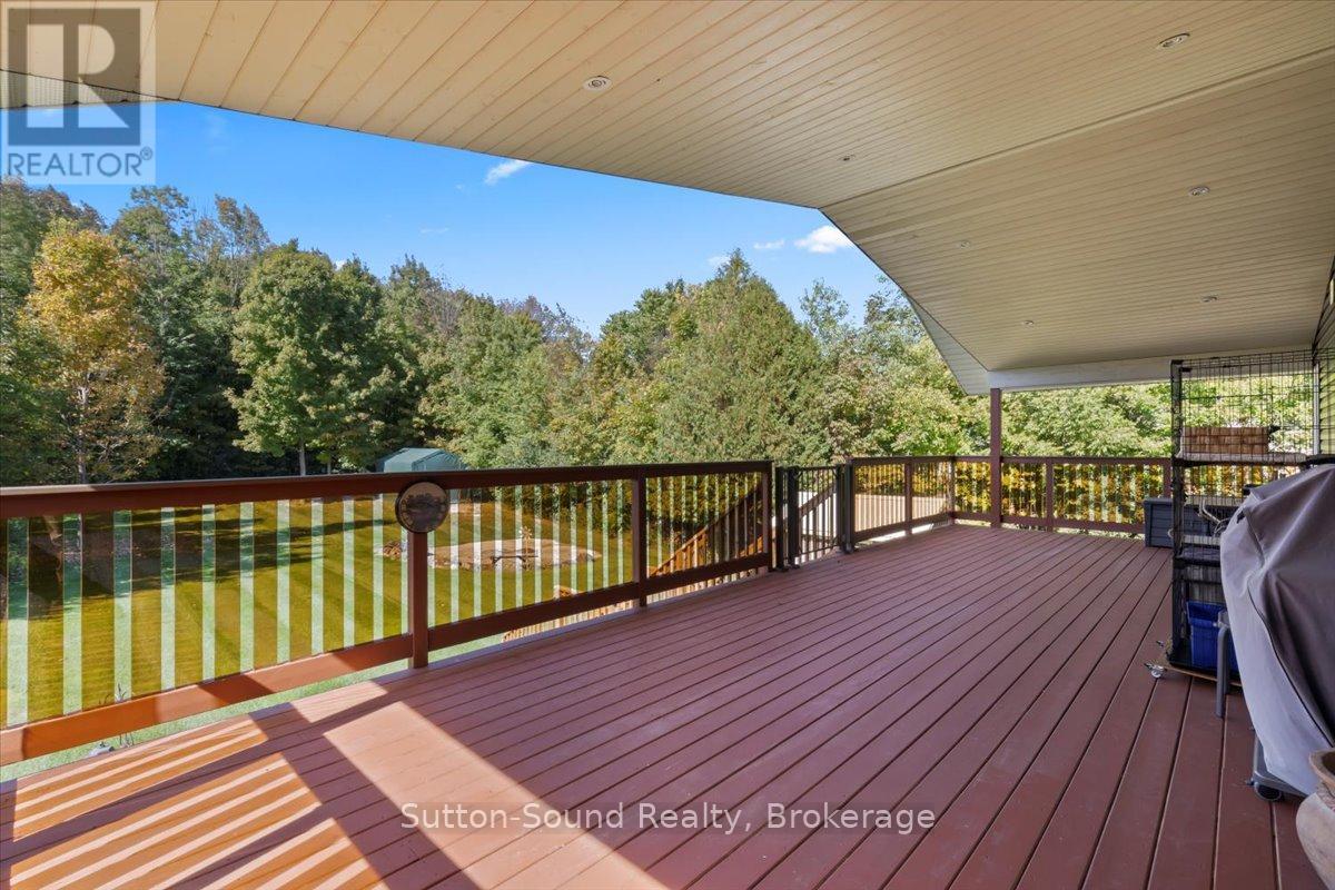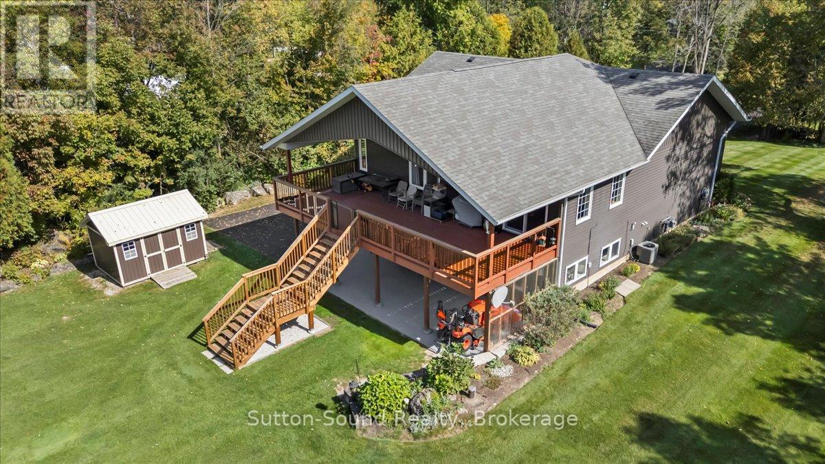 Welcome to this stunning family home siting on ONE acre, offering modern updates and thoughtful design in a desirable Georgian Bluffs location WITH natural gas. The open-concept family room features cathedral ceilings, engineered hardwood floors, an eye catching stone (gas) fireplace, and walkout to a covered deck. The showpiece gourmet kitchen boasts a 12' x 5' island with granite countertops, stainless steel appliances, coffee bar with wine fridge, and walk-in pantry. The spacious primary suite includes a step-in closet and ensuite with in-floor heating, while two additional bedrooms feature updated flooring and custom closet shelving. Main floor laundry adds convenience. The finished basement offers a sun-filled rec room, gas fireplace, large bedroom, mudroom, storage, 2-pc powder room, and walkout to a patio, with potential for an in-law suite. A heated/air-conditioned workshop and garage with bench and heater are ideal for hobbyists. Outside, enjoy the large mature yard with firepit and 12' x 20' Shelter Logic enclosure for extra storage and a Mennonite built 9' x 12' garden shed. Smart home lighting throughout and professionally maintained mechanicals complete this move-in ready property. Everything is ready for you - just move in and call it HOME! (id:51158)