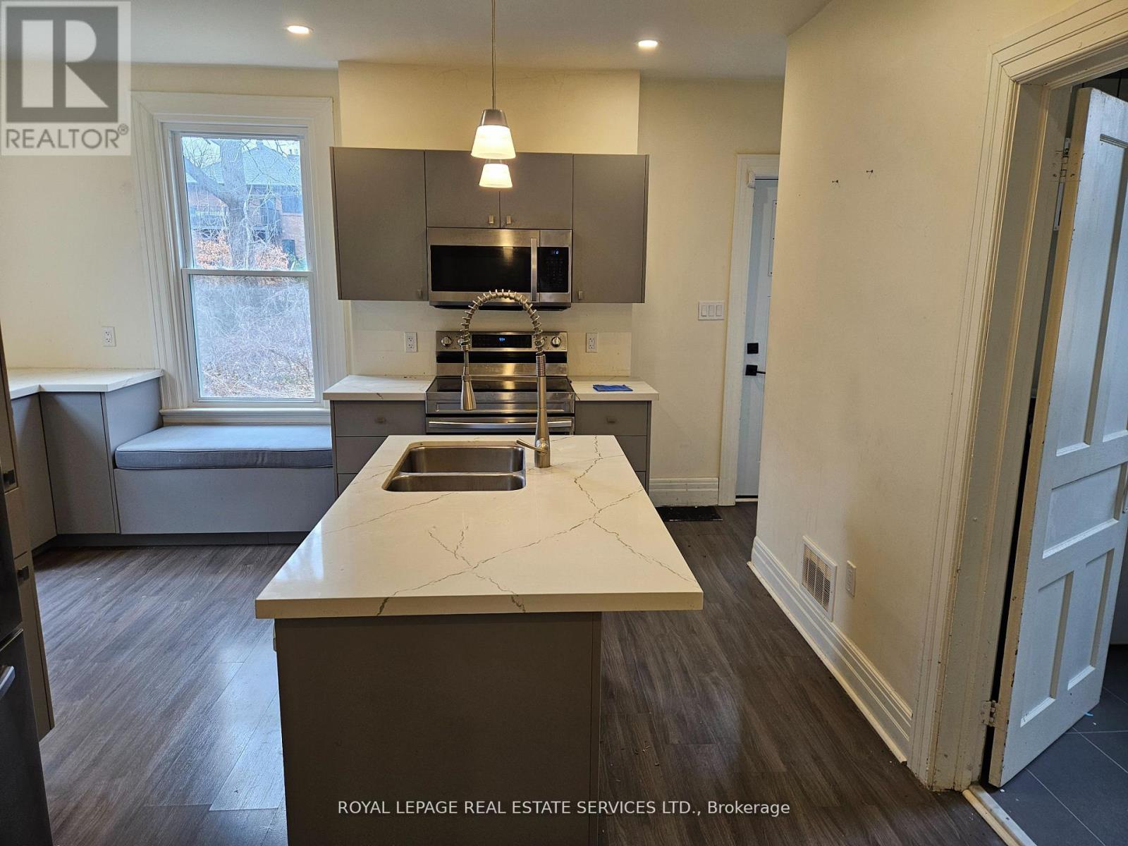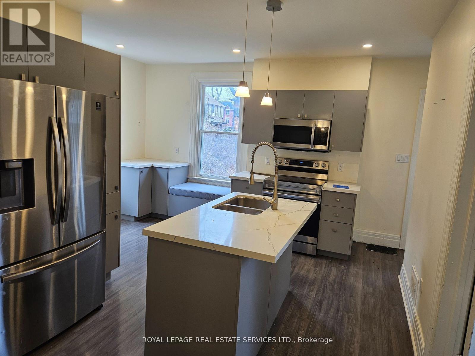 Charming Restored Heritage Home for Lease Located in the coveted Sherwood Park neighbourhood, this beautifully restored heritage home offers over 2,000 sq ft of elegant living space. Blending timeless character with modern upgrades, its the perfect place to call home. Step into a bright and airy main floor with soaring 10-foot ceilings and expansive principal rooms ideal for entertaining or relaxing. The spacious family room provides the perfect retreat, while the stylish kitchen boasts quartz countertops, a breakfast bar, a generous pantry, and a walk-out to a private deck and a massive backyard. Enjoy the convenience of a main floor powder room and laundry area, along with brand new stainless steel appliances throughout. Don't miss the opportunity to live in one of Toronto's most desirable neighbourhoods, just steps from parks, top-rated schools, and all urban amenities. Basement not included currently tenanted. Long term tenants preferred. Flat monthly rate of $300 covers all utilities. (id:51158)