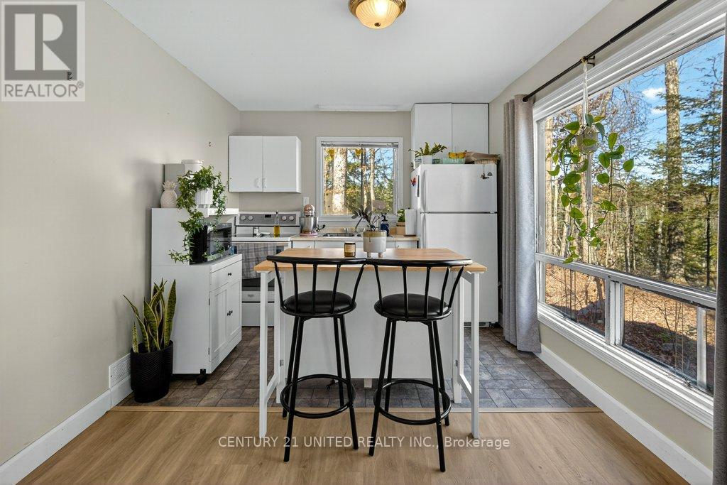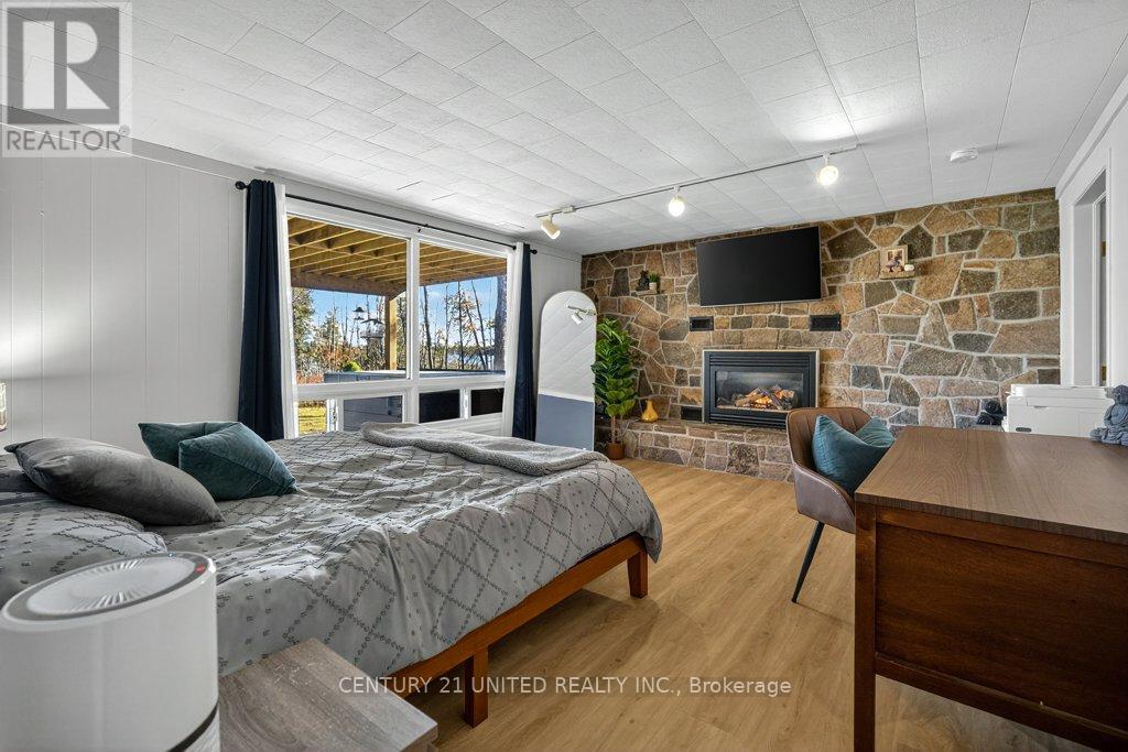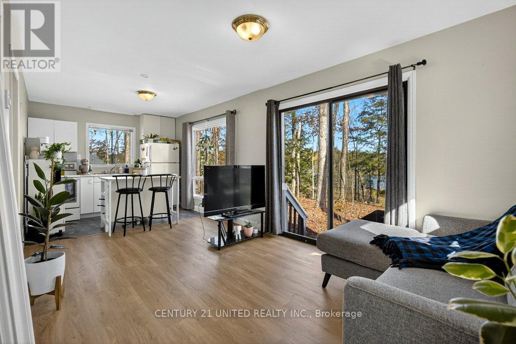 Stepping into resort-style living, this 2+2 bedroom, 2 bathroom brick bungalow sits on a sprawling 6+-acre property with 500ft of clean water frontage. Tucked away at the end of a quiet dead-end road, the home offers complete privacy while still being close to everyday conveniences. The property features everything you could imagine: an oversized heated shop, a secondary dwelling with 1 bedroom, separate kitchen and bathroom with rental or multigenerational living potential, a backup generator (2025), and an outdoor wood furnace that provides cozy heat all winter. Recent updates include a new dock (2023), a new oversized composite deck (2024), new vinyl plank flooring throughout (2024), stainless steel appliances, and numerous other upgrades. Perched on the stunning shores of Julian Lake, this home offers peace and seclusion while keeping you connected. Just a short 1 km walk away, you'll find the Woodview General Store, which also serves as the post office and LCBO. For added convenience, the fire station and pickleball court, park are just a 5 minute drive down the road. The property is only 15 minutes from Apsley, with its public school, grocery store, shops, restaurants, and community centre with a skating rink and gym. Lakefield is just 20 minutes away, and Peterborough, with its hospital and larger shopping options is only 40 minutes away. This home combines the best of both worlds: the feeling of a private resort retreat with the comfort of knowing amenities and community are never far. (id:51158)