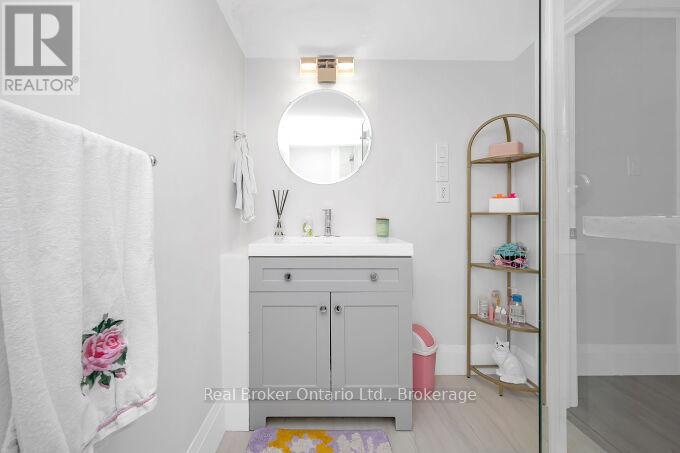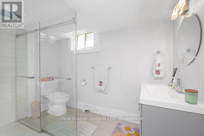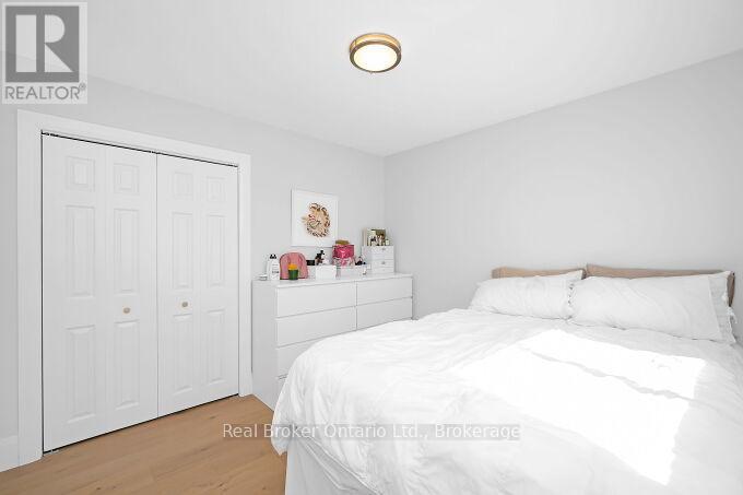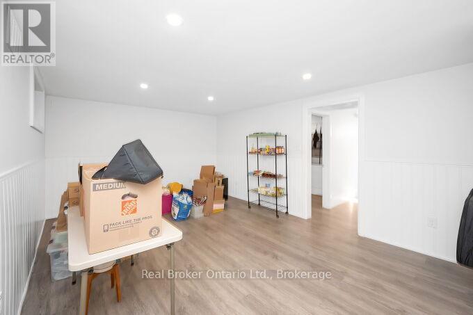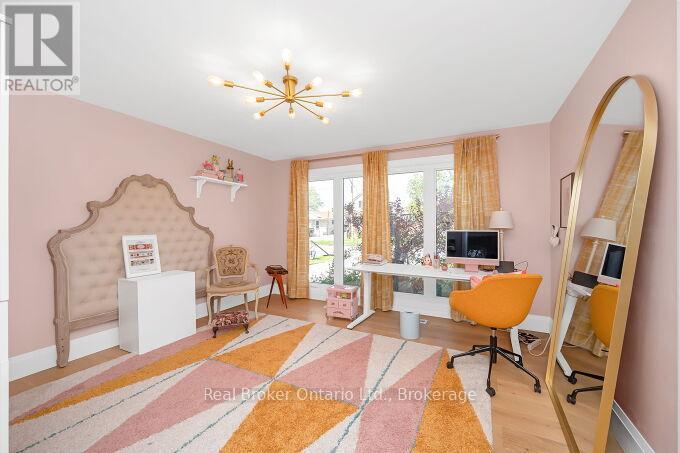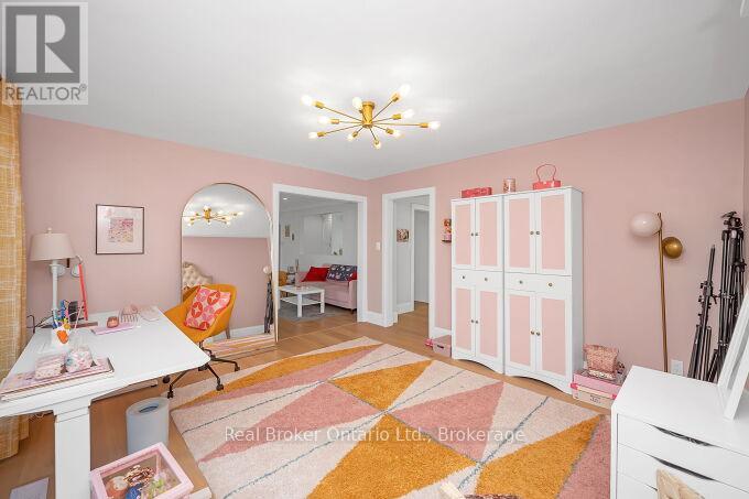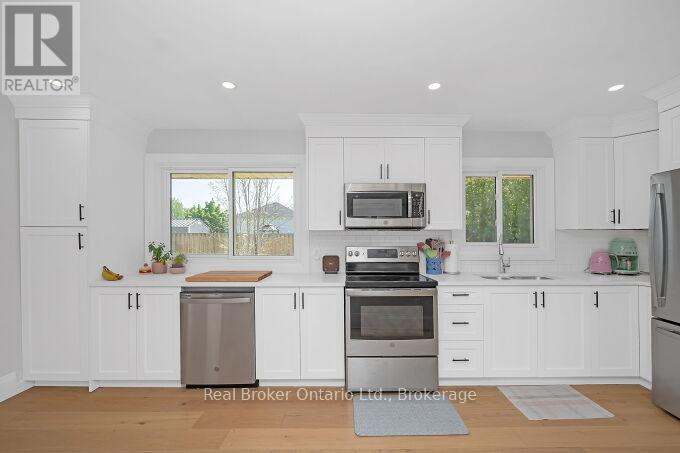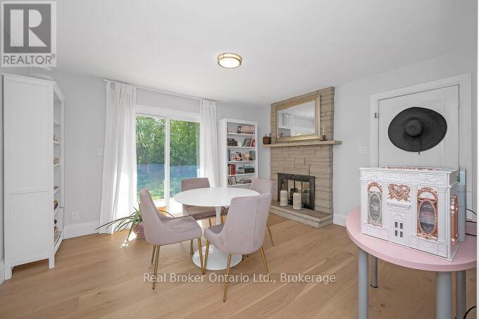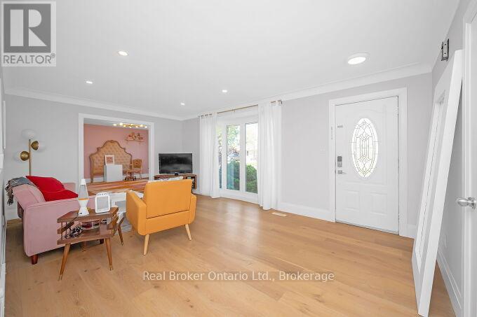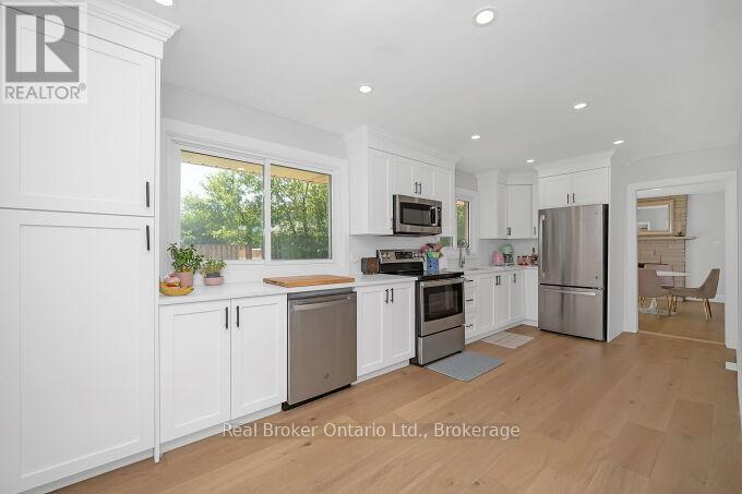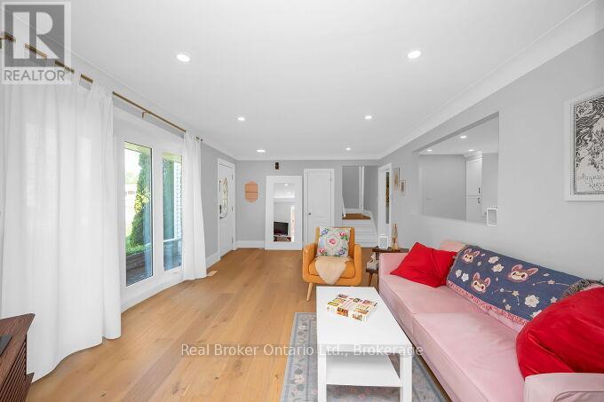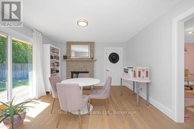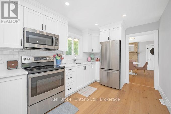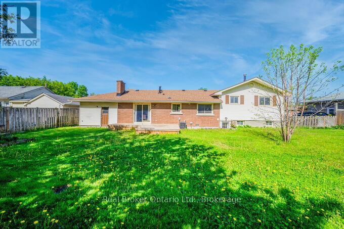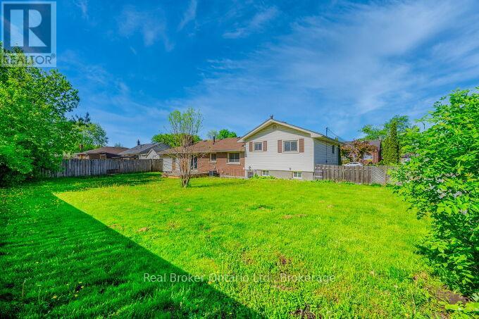 Nestled on a peaceful, family-friendly street, this beautifully renovated side split home offers modern living with all the updates you could wish for. Set on a sprawling double wide lot with 89 of frontage, this home was completely transformed in 2022, and boasts a new kitchen, bathrooms, hardwood flooring, pot lights, and more. The large family room is seamlessly connected to the updated kitchen, perfect for entertaining. A spacious living room leads into a formal dining room, complete with a cozy wood-burning fireplace and a walkout to the backyard. The kitchen shines with white cabinetry, sleek quartz countertops, a subway-tiled backsplash, and brand-new stainless steel appliances, including a refrigerator, stove, and dishwasher. Upstairs, the primary bedroom is generously sized, accompanied by two additional bedrooms and an updated 4-piece bath. The lower level features new laminate flooring throughout and offers a convenient walk-up to the backyard. Enjoy the expansive, fully fenced backyard with a new deck, ideal for creating your dream outdoor oasis. The pool-sized lot provides endless possibilities don't miss out on this incredible home! (id:51158)