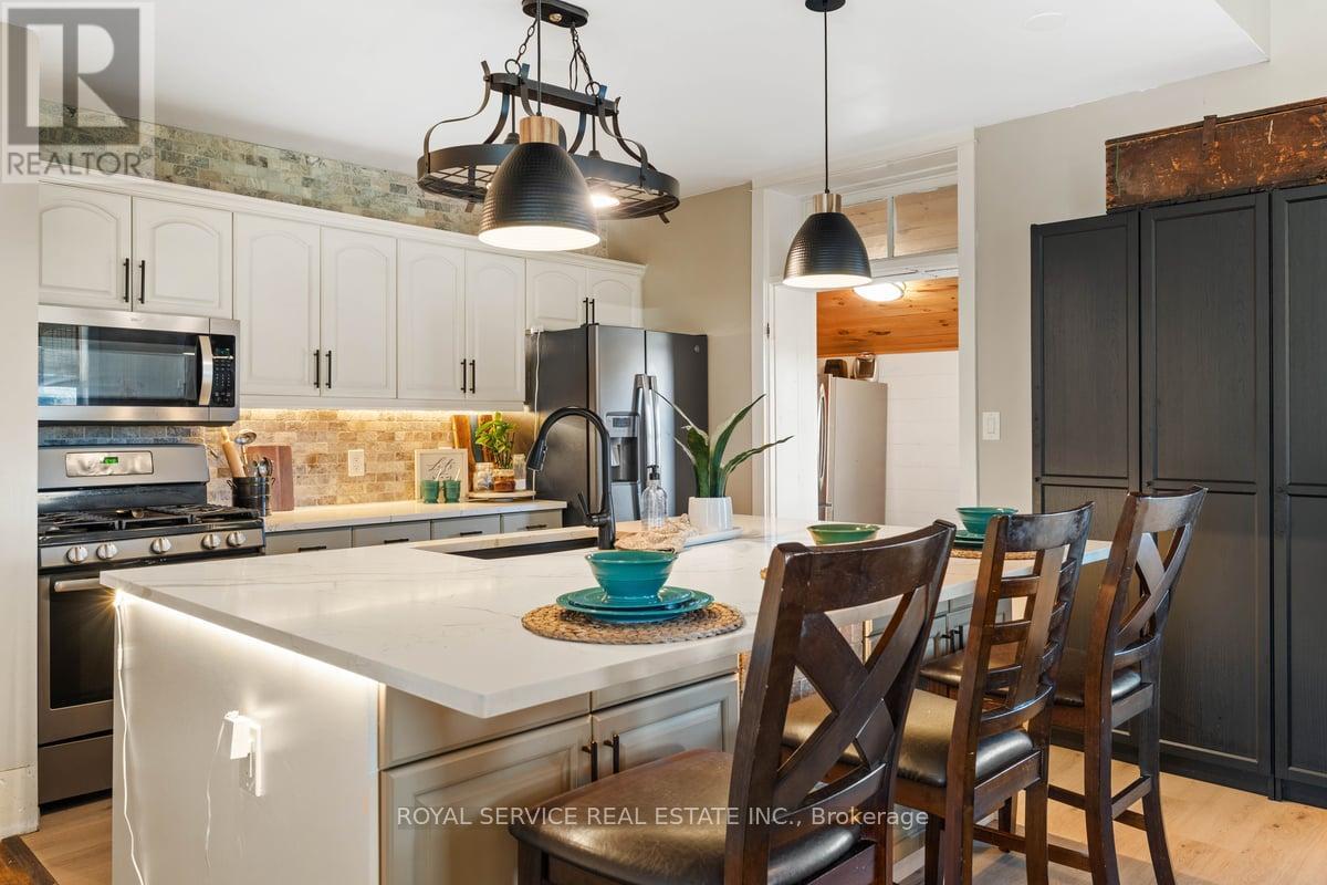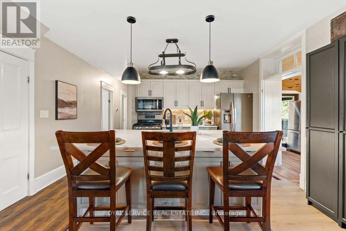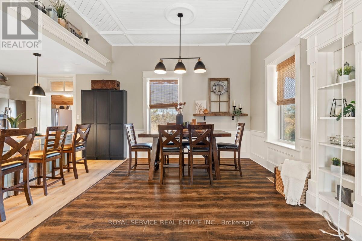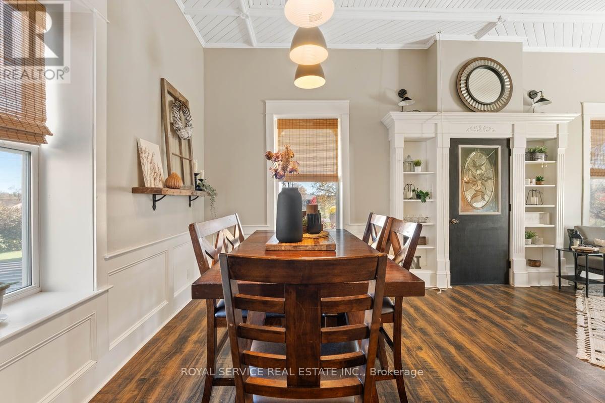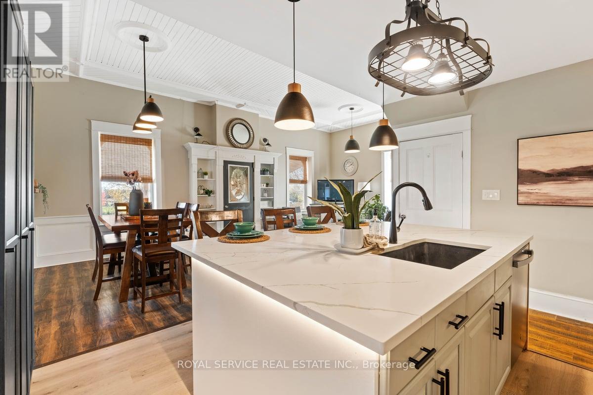 Historic Schoolhouse Turned Dream Home! Built in 1904, Harold School S.S. No. 14 has been beautifully transformed into a truly unique residence. From the original school bell still resting in the belfry to the character-filled hardwood floors, history is alive here - yet perfectly balanced with thoughtful modern updates. A recently built gorgeous covered front porch enhances the exterior and offers the ideal spot for morning coffee or evening drinks in a peaceful country setting where you can often watch the neighbours pass by in their horse-drawn buggies. Step inside to soaring 11' ceilings and oversized windows that flood the open living and dining areas with natural light. The updated kitchen boasts a massive quartz island designed for entertaining, leading seamlessly to a large bright pantry with a walkout to a 12' x 12' deck. The main floor also features a 4-piece bath with soaker tub, two spacious bedrooms, and convenient laundry. Upstairs, in the loft, a private suite awaits with skylights, stunning inlay hardwood floors, a 2-piece ensuite, and walk-in closet. The lower level expands your living space with a freshly painted rec room, office, and plenty of storage. Outside, a 24' x 30' insulated garage (built in 2020) with hydro, 10' ceilings, woodstove, and lean-to delivers incredible versatility for hobbies, storage, or workshop use. With modern upgrades, efficient utilities, and high-speed internet, this rare offering blends historic charm with everyday comfort in a welcoming country setting. (id:51158)