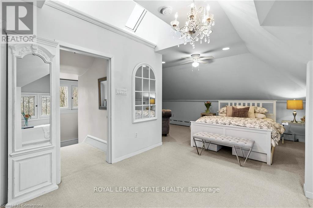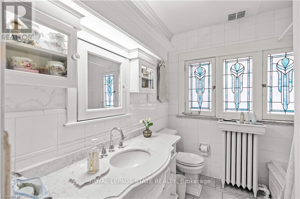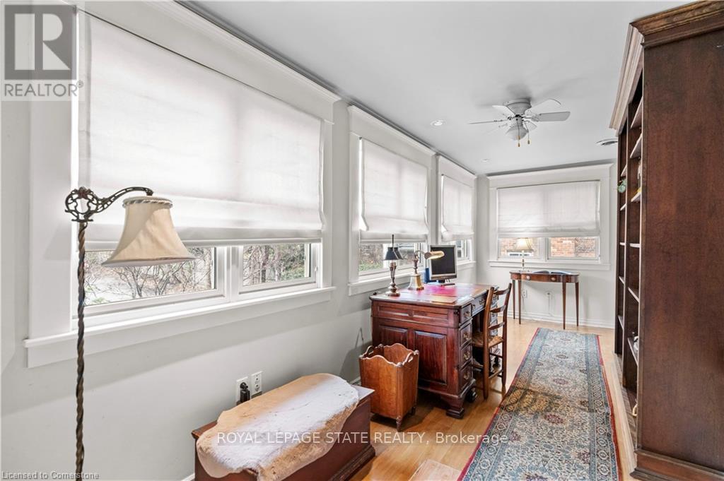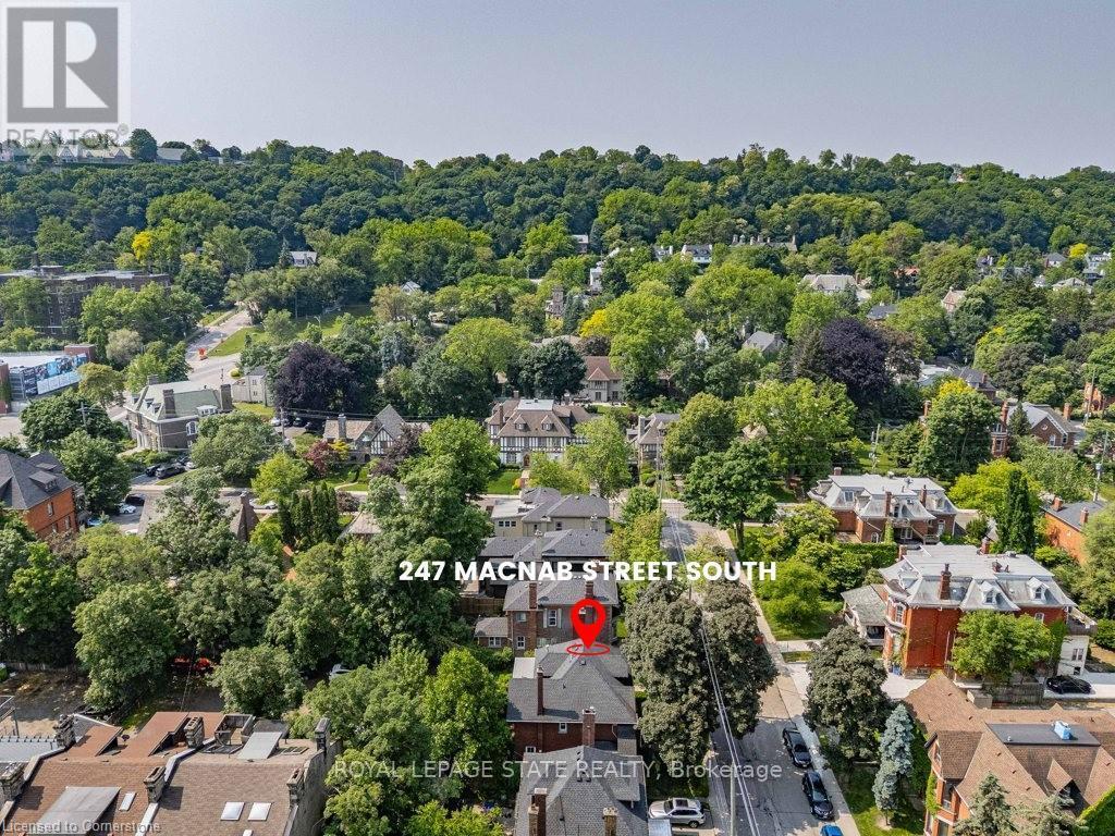 Circa 1922, this stately 2.5-storey is situated on a mature 46 x 85.33 property in the heart of the historic Durand neighbourhood, showcasing classic curb appeal with a front walkway leading to a covered porch framed by Doric columns. Gorg entry door adorned w/ original wrought-iron grillwork. Step inside to the elegant foyer w/ crown moulding & a sweeping staircase w/ ornate woodwork. French doors lead to the formal living room feat a gas FP, an intricate mantle, & windows overlooking the front/rear gardens. Formal din rm w/ built-in cab, leaded stained glass windows, & detailed millwork. The kitch feat limestone flrs, custom cabinetry w/ bevelled glass, pantry, marble counters, luxe S/S app incl a Miele dishwasher, Viking gas range & Sub-Zero fridge. Convenient mudroom w/ a dbl mirrored closet completes the main lvl. A landing of leaded stained glass windows leads to the 2nd lvl, feat a 25.9' x 13' primary w/ a sitting area, dual closets, & access to the den, 2 add bdrms, one w/ a bay window & ensuite, the other w/ garden views & den access, & a 4-pc bath w/ Jacuzzi tub, leaded stained glass windows, & hand-painted murals. The den is a serene retreat w/ custom shelving & garden views. 3rd lvl w/ 4th bdrm, 3-pc ensuite, skylights, gas FP, storage & 2 sitting nooks. The lower lvl feat laund facilities w/ custom cab, a 2-pc bath, ample storage, & workshop areas. Outside, enjoy the private, landscaped yard w/ an arched brick wall w/ iron gate, water fountain, covered composite porch, awning, gas BBQ, det 1-car grg w/ surf parking for 2 accessible via a laneway & more. This exceptional home feat hrdwd flrs, custom window coverings, c-air, alarm system, HEPA air purifier, rad heating w/ gas boiler, & stunning original features from trim to stained glass. Walkable access to Locke Streets mix of boutiques, cafes, & dining, art galleries, theatres, hospitals, & GO Transit. Minutes from MAC, parks, hiking trails, & several of the citys scenic escarpment accesses. (id:51158)