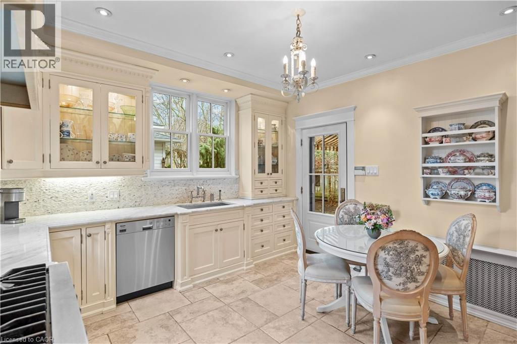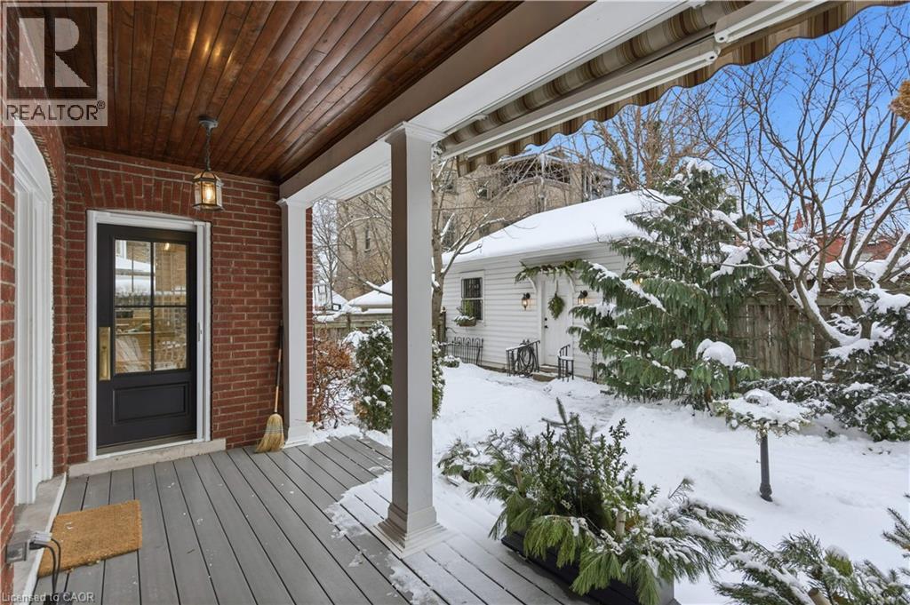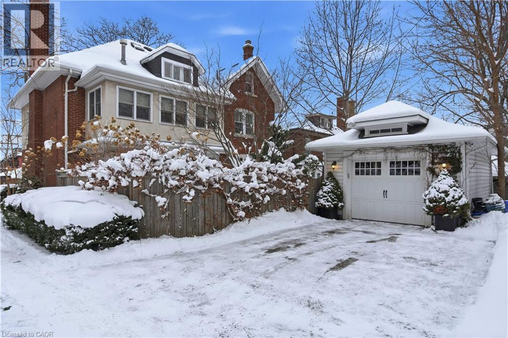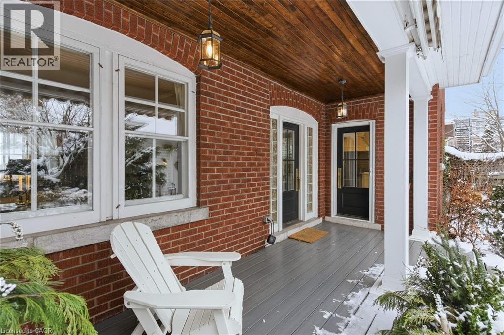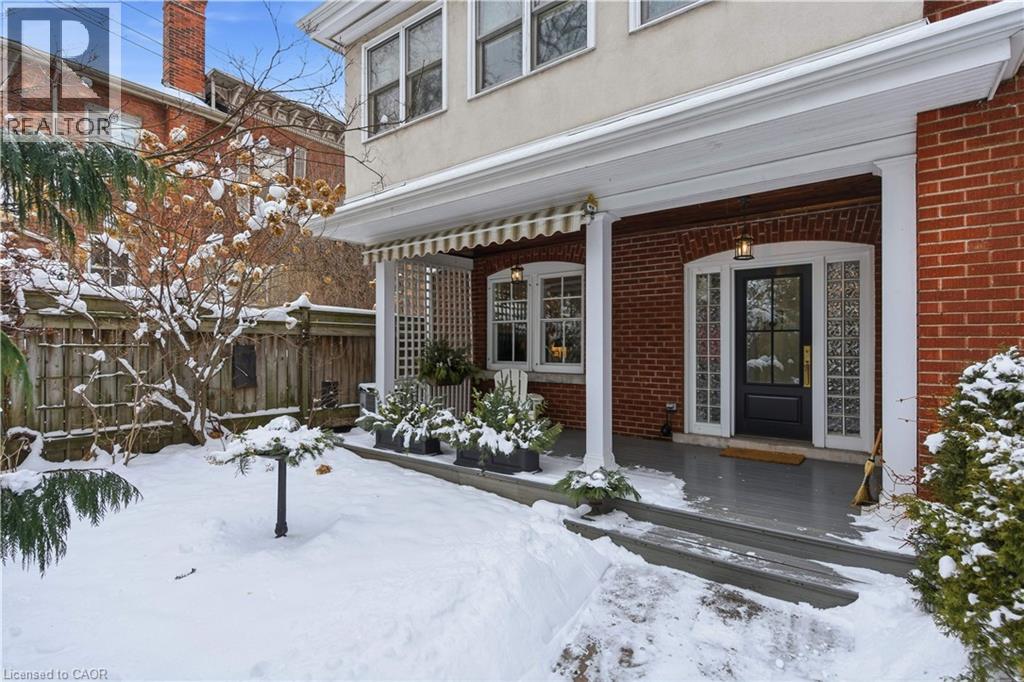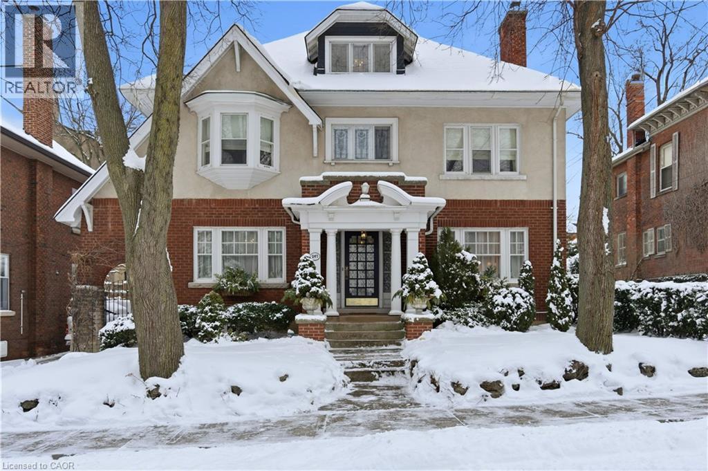 This stately 2.5-stry residence sits on a mature 46’ x 85.33’ lot in Hamilton’s prestigious Durand neighbourhood. Showcasing timeless curb appeal, the front walkway leads to a covered porch framed by Doric columns & an entry door w/ wrought-iron grillwork. Inside, a grand foyer w/ crown moulding, a sweeping staircase & French doors introduces elegant principal rms. The formal liv rm feat a gas FP, an intricate mantle w/ hidden side cabinet, & windows overlooking both gardens. The adjoining din rm impresses w/ built-in cabinetry, leaded stained glass, and rich millwork throughout. The kitchen is a showpiece, featuring heated limestone floors, custom cabinetry w/ beveled glass, marble counters, undercab lighting, pantry, & premium S/S appliances incl a Viking gas range, Sub-Zero fridge, & Miele d/w. Surrounded by windows, it opens to a covered porch w/ a Phantom screen, perfect for indoor-outdoor living. A handy mudroom w/ dbl mirrored closet completes the main lvl. Heading up the main staircase, a landing of stained glass welcomes you to the 2nd level, feat a 25.9’ x 13’ primary suite w/ sitting area, dual closets, & access to a bright den/sunroom (heated flrs). 2 add’l bdrms - one w/ a bay window & ensuite, the other with garden views - plus a 4-pc bath w/ a jetted tub, stained glass, & hand-painted murals complete this lvl. The 3rd lvl offers a private bdrm retreat w/ a 3-pc ensuite, skylights, gas FP, storage, & cozy sitting nooks. The lower lvl adds laundry w/ custom cabinetry, a 2-pc bath, storage & workshop space. Outside, enjoy a private yard w/ a fountain, covered composite porch, retractable awning, gas BBQ hookup, detached garage + surfaced parking for 2 & security lighting. Add feat incl: hardwood flrs, custom window coverings, c/air, HEPA air purifier, a security sys & more. Walkable to the Locke St cafés, boutiques, art galleries, hospitals, GO Transit, parks & trails - Durand offers historic character & an unmatched lifestyle of quiet sophistication. (id:51158)