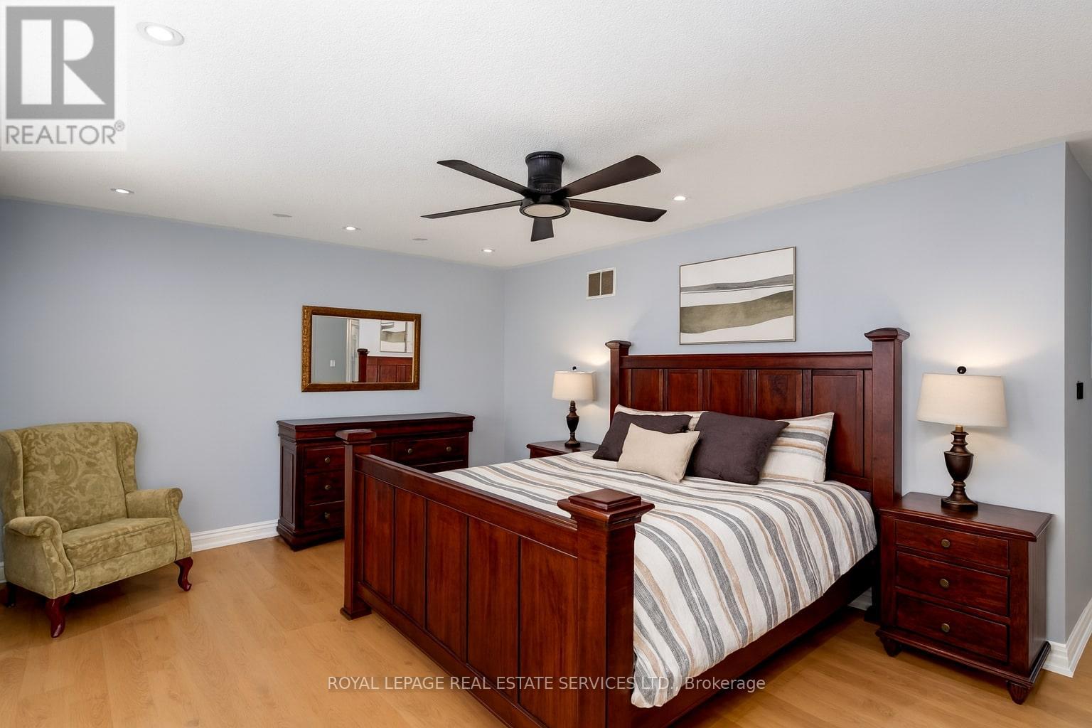 Welcome to Oakville's prestigious Joshua Creek community-where convenience, luxury, & top-rated schools meet. This custom Dawn Victoria built home meticulously maintained & tastefully updated 4-bedroom, 3.5-bathroom family home is located within the Iroquois Ridge High School catchment & just a short walk to the Iroquois Ridge Community Centre. Everyday essentials, shopping, & dining are minutes away at the Uptown Core, while commuters will love easy highway access. The home's elegant stone & stucco façade is complemented by manicured gardens, soffit lighting, & a patterned concrete walkway leading to the covered front entrance. Inside, discover a customized layout with 9-foot main-floor & basement ceilings, a refinished staircase, refinished hardwood & engineered hardwood flooring (2025), pot lights, & California shutters. The spacious dining room is perfect for hosting, while the inviting family room features wall-to-wall custom cabinetry surrounding a cozy gas fireplace. The renovated kitchen (2021) is a chef's dream, with quartz countertops, white cabinetry with crown mouldings, an island with a breakfast bar, a walk-in pantry, & stainless steel appliances. The breakfast area opens to a large deck with a full-width electric awning, an expansive patio ideal for entertaining, & a gas hookup for barbecuing. Upstairs, you'll find 4 generous bedrooms, a convenient laundry room, & 2 full baths, including a luxurious 5-piece primary ensuite with a corner soaker tub & separate shower. Professionally finished basement offers exceptional recreation room, custom bar with granite counters, gym, office/bedroom & a 3-piece bathroom. Additional highlights include a re-shingled roof (2025), a double garage with epoxy flooring & inside entry, & an irrigation system. This stunning property blends timeless craftsmanship, modern upgrades, & an unbeatable Oakville location-perfect for families seeking comfort, sophistication, & convenience in Joshua Creek real estate. (id:51158)