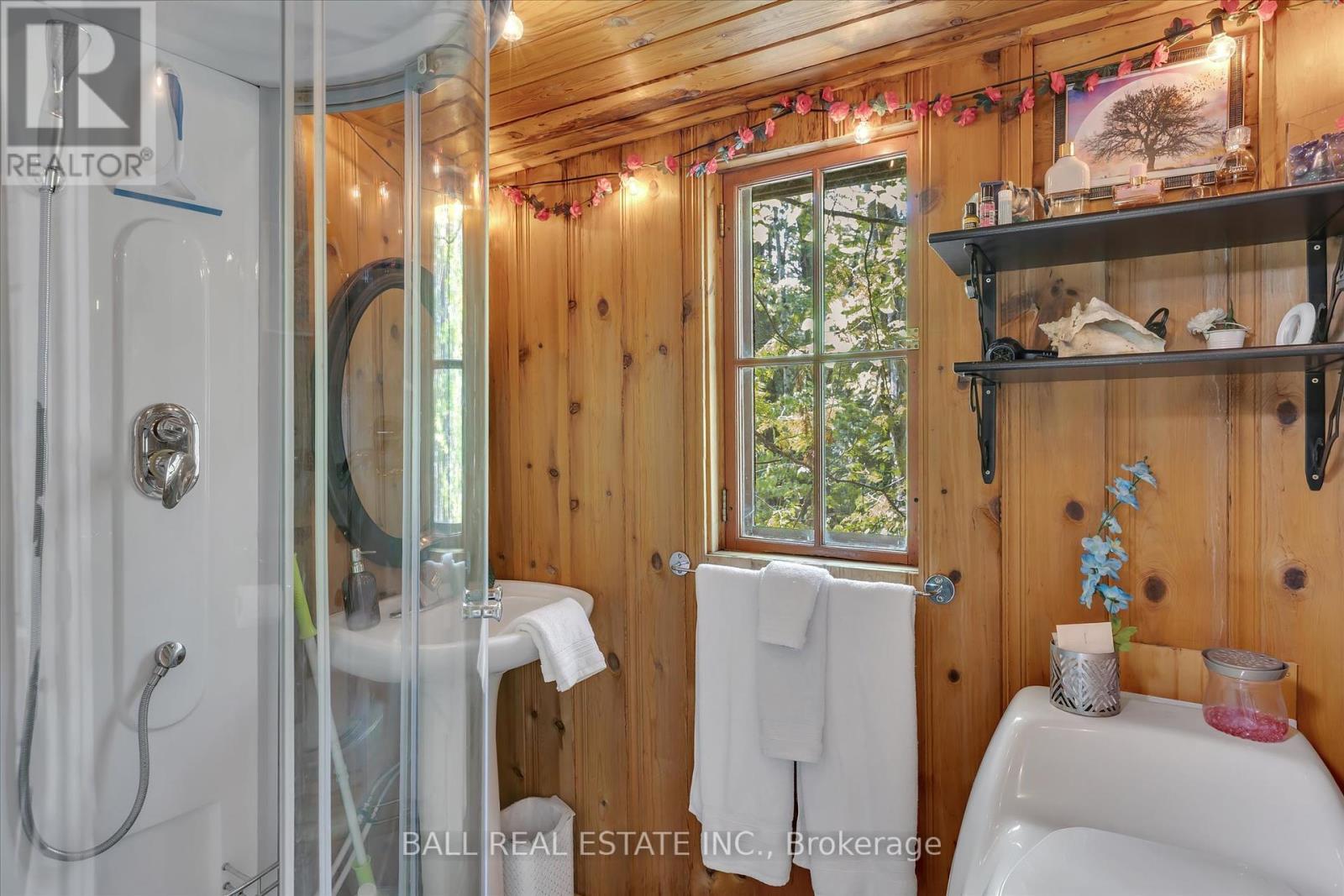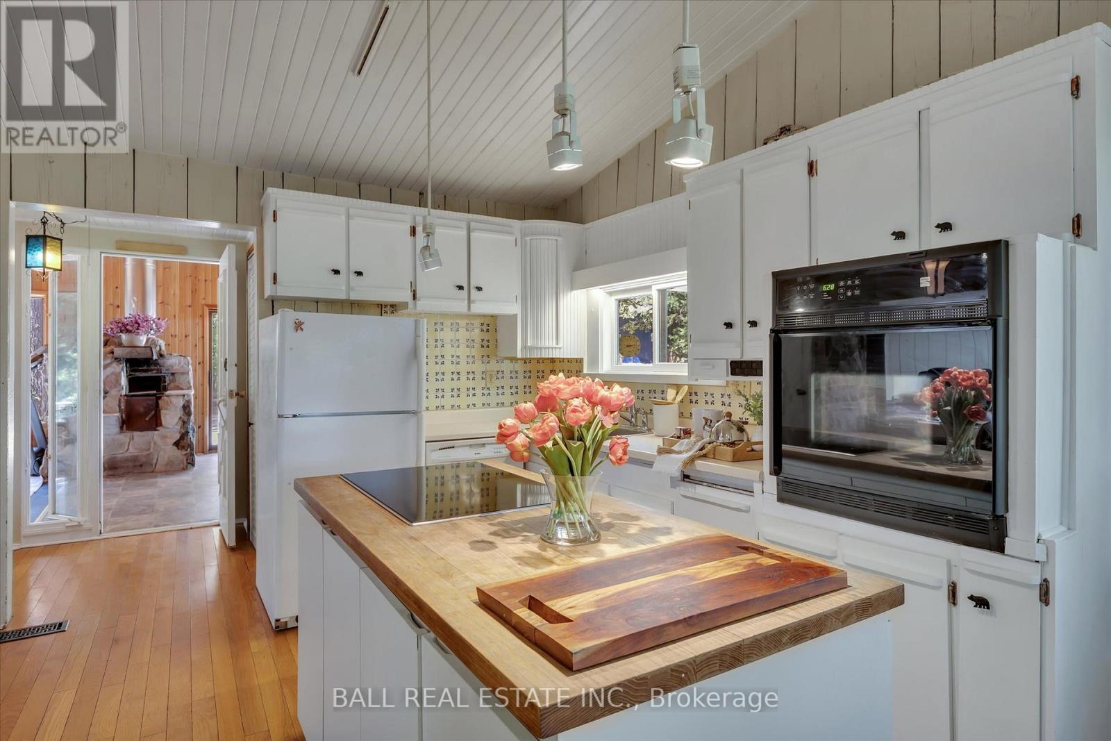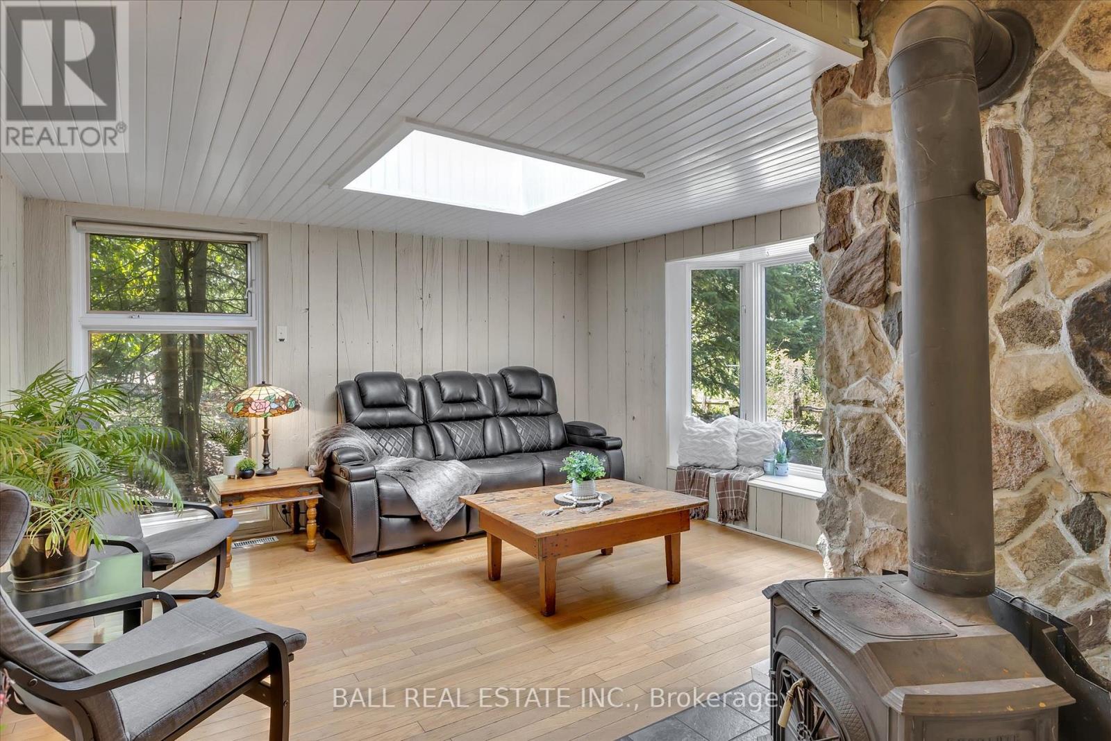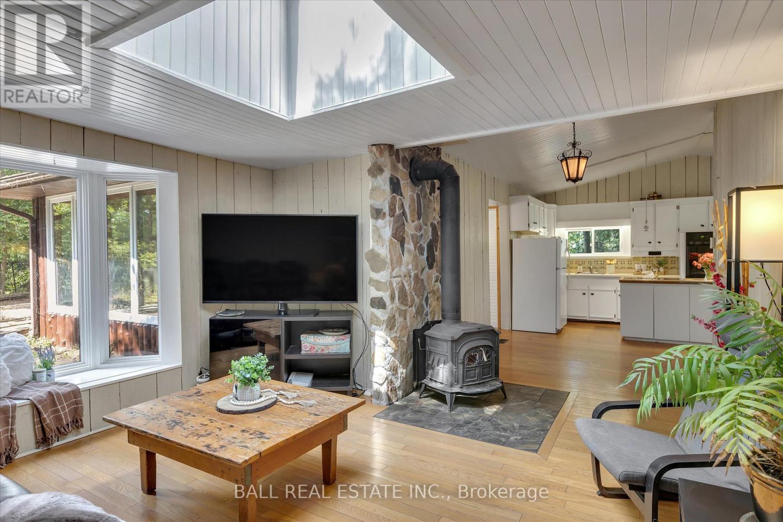 North River Waterfront Retreat. Escape to your own private paradise with 211 ft of pristine North River frontage! Just minutes from Round Lake by canoe, kayak, or boat, this 6.7-acre wooded property offers peace, privacy, and year-round enjoyment. This cedar-sided home features a bright sunroom with wall-to-wall windows perfect spot to relax while soaking in the natural surroundings. The well-equipped kitchen boasts an island cooktop with butcher block countertops, built-in oven, and generous counter space, flowing into a dining area with room for friends and family. Sky lights are found in both the living room and 4-piece bathroom, filling these rooms with natural lighting. Everything you need is on one level, including two spacious bedrooms with ample windows overlooking the forest. This home has been meticulously maintained and many improvements have been done throughout.Visitors will love the charming 18 x 16 self-contained guest cottage with a screened-in porch. This private cottage has its own 3-piece bathroom complete with shower and composting toilet, kitchenette and loft bedroom. There is a separate parking pad and pathway leading to the cottage. Use for visiting family & friends or for potential rental income $$$. The wooded tree area has many trails throughout for hiking enthusiasts. Bonus garage/workshop with attached woodshed for storage, and for animal lovers enjoy the fully gated yard for pets and closed-in chicken run/coop. Located only 10 minutes from Havelock, 30 minutes to Campbellford, 40 minutes to Peterborough, and 90 minutes to the GTA - this is cottage country convenience at its best. (id:51158)