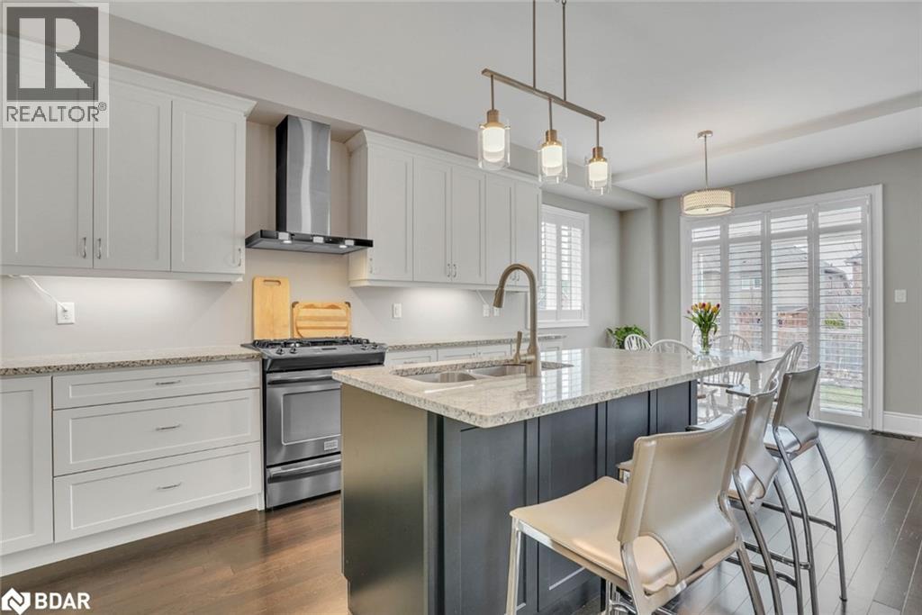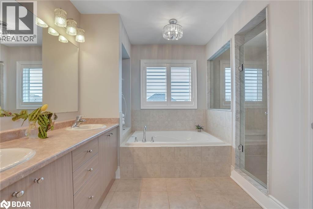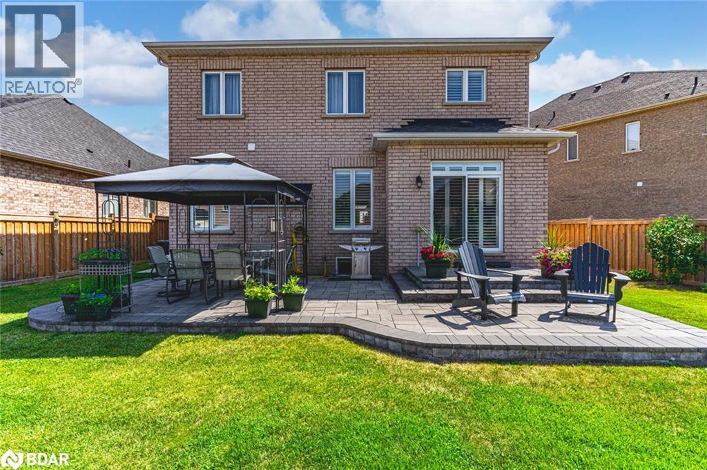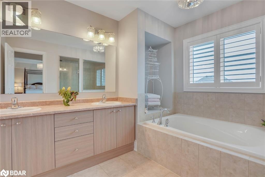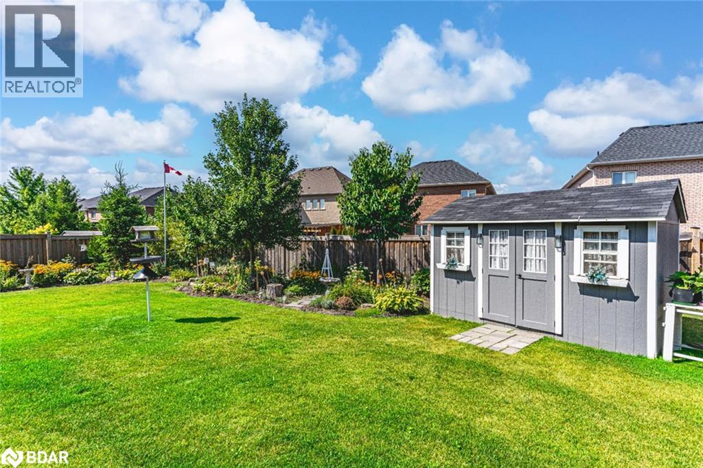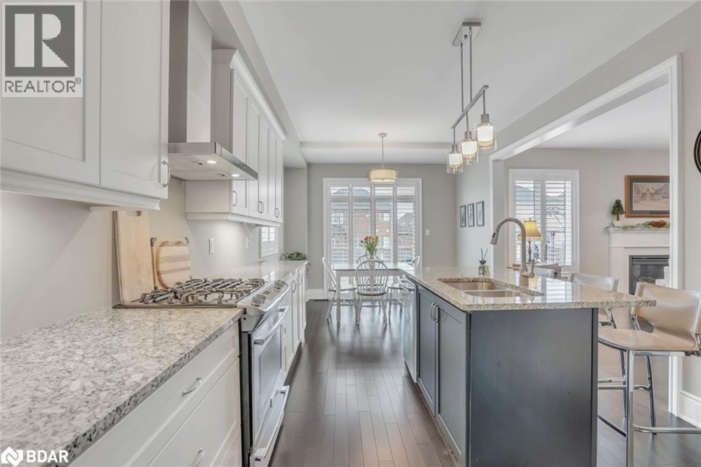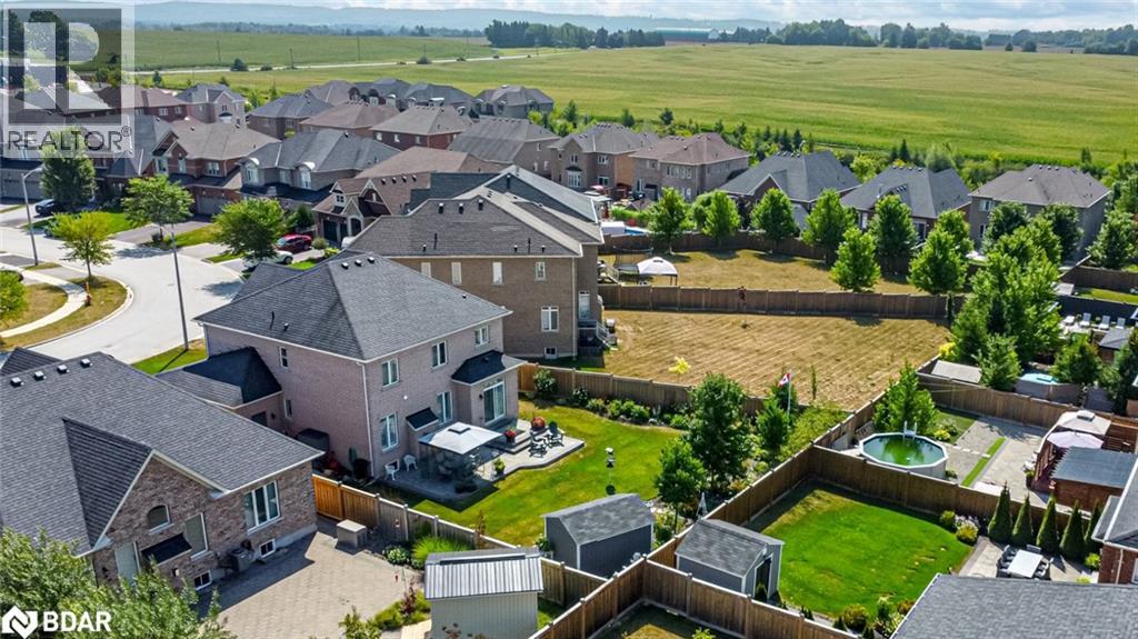 IMMACULATE HOME WITH OVER 3,500 SQ FT OF EXCEPTIONAL LIVING SPACE ON A PREMIUM PIE-SHAPED LOT IN A QUIET NEIGHBOURHOOD! Discover this gorgeous, beautifully maintained 2-storey home in a quiet, family-friendly neighbourhood just minutes from parks, golf, the library, and a recreation centre, with quick access to Hwy 27 and 89, making it an excellent choice for commuters. Set on a premium pie-shaped lot with a 136 ft depth on one side, the property offers outstanding outdoor space and eye-catching curb appeal thanks to its timeless brick and stone exterior, landscaping, covered front entry, and stone patio walkway. Step through the elegant double doors into a grand two-storey foyer and over 3,500 sq ft of finished living space filled with tasteful finishes and natural light. The expansive, open-concept layout boasts 9 ft ceilings, hardwood floors, California shutters, and spacious principal rooms perfect for everyday living and entertaining. The stylish kitchen features white cabinetry, a dark contrasting island, granite counters, stainless steel appliances including a gas stove, a newer fridge, and a sliding door walkout to the large fenced backyard with a patio and storage shed. The inviting main living area centres around a cozy gas fireplace, while the main floor laundry room adds functionality with a laundry sink and direct garage access. Upstairs, the generous primary suite impresses with a double door entry, a walk-in closet, and a luxurious 5-piece ensuite with a water closet, dual vanity, and soaker tub. Each of the two additional bedrooms enjoys its own private ensuite, providing added comfort for family or guests. A fully finished basement expands the living space, and with a double car built-in garage plus driveway parking for six more, this #HomeToStay offers everything your family needs, both inside and out! (id:51158)