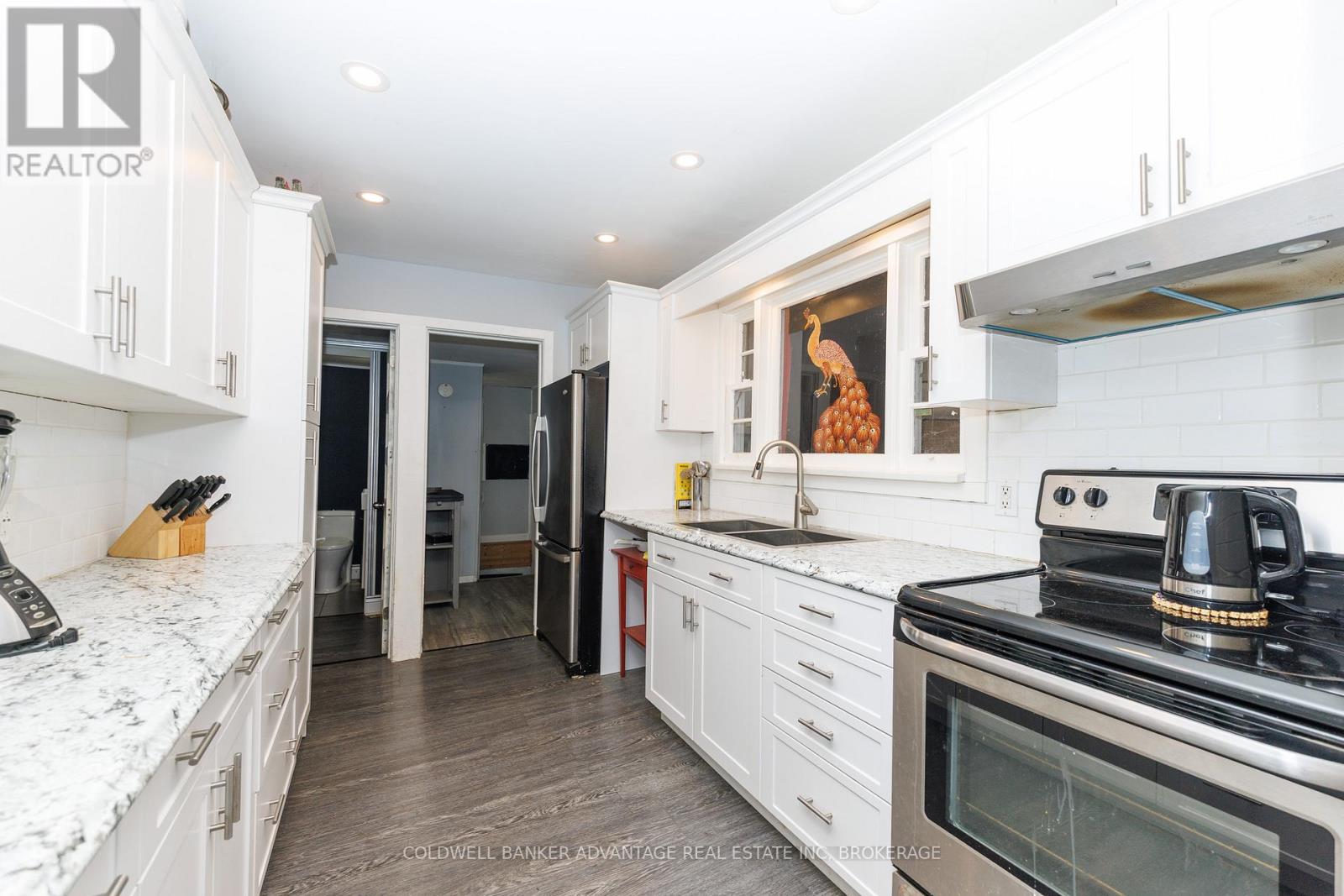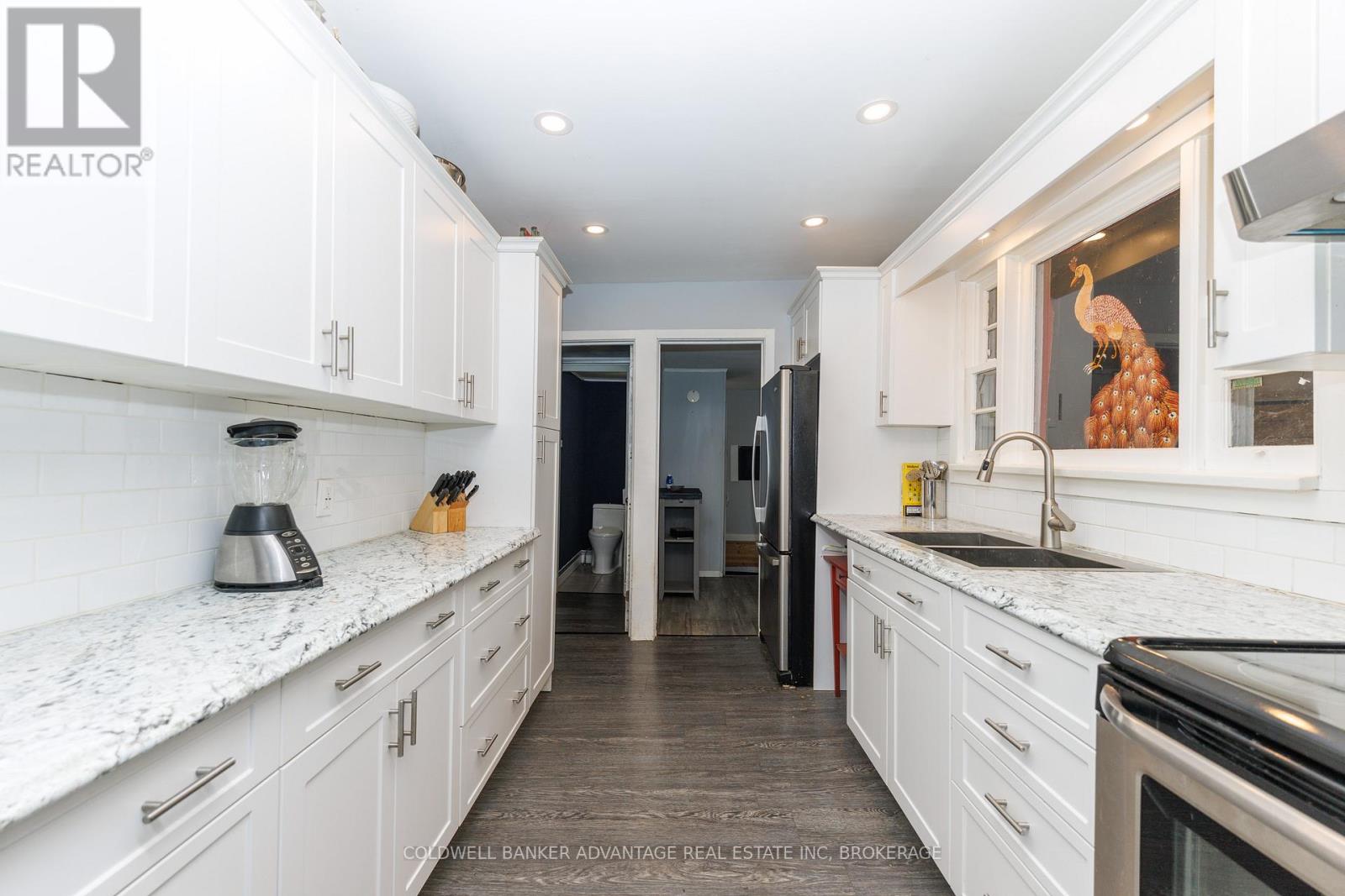Welcome to this charming 2-bedroom bungalow situated on a large corner lot, offering great space and potential. The home features a bright and spacious living room with plenty of natural light throughout, along with an updated kitchen with ample cupboard space. The main bathroom is a 4-piece and approximately 80% complete, along with a convenient 2-piece ensuite. A breezeway connects the home to the attached garage, adding both character and functionality, and the asphalt driveway provides plenty of parking. The property also includes a partial unfinished basement offering additional storage or future finishing potential. With its deep lot, great location, and solid layout, this home presents an excellent opportunity for first-time buyers, downsizers, or anyone looking for a well-priced home they can finish and make their own. Some photos virtually tidied. (id:51158)