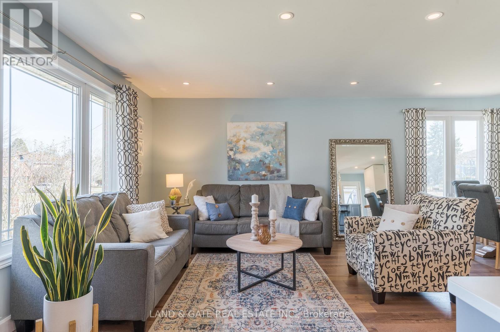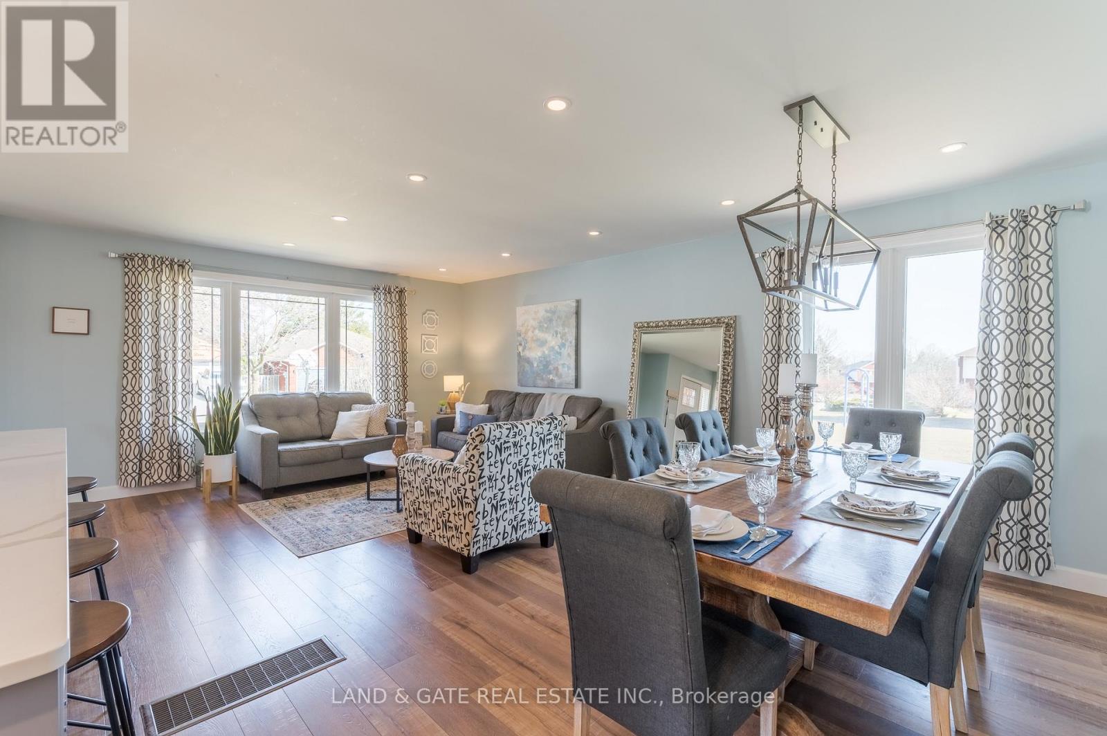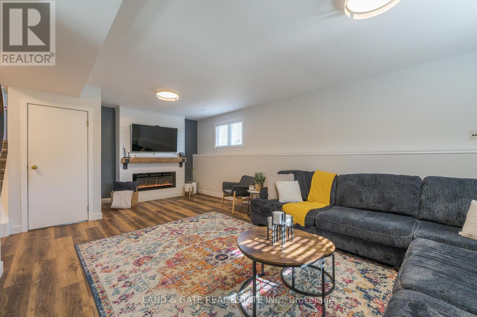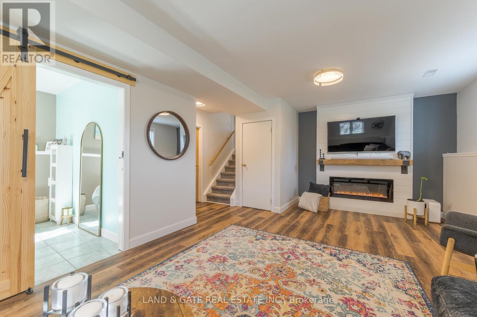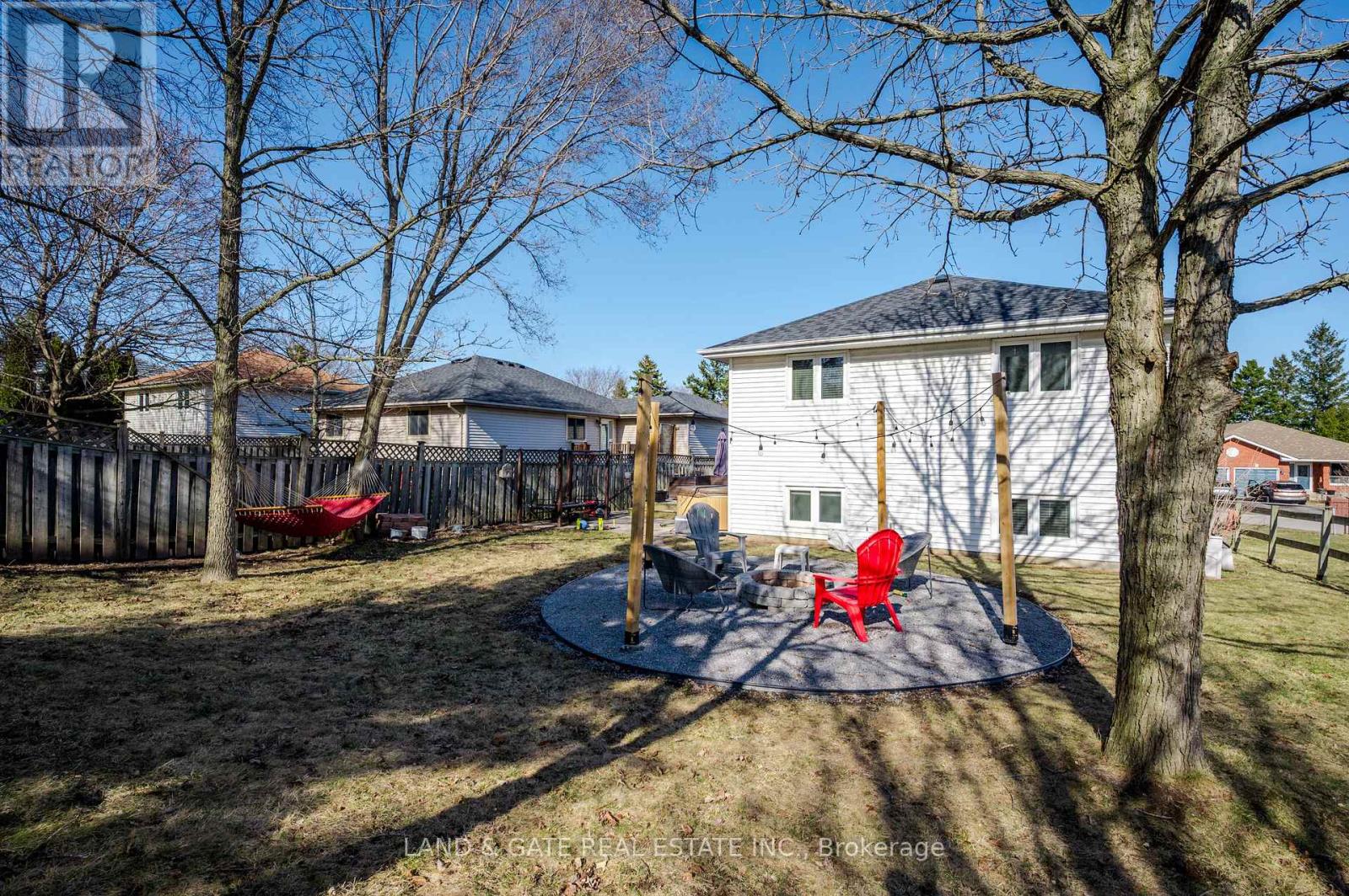 Welcome to 25 Hewson Drive in the beautiful town of Port Hope. This extensively renovated 4-level backsplit is located in a desirable, family-friendly neighbourhood and is directly beside a park, offering privacy and green space right outside your door. Inside, the open-concept main floor is filled with natural light and highlighted by a stunning nine-foot quartz island, the centerpiece of a timelessly designed kitchen. The spacious living and dining areas are surrounded by windows with serene park views, creating the perfect gathering space. Upstairs features three bright bedrooms and a four-piece bath. Fresh broadloom carpet in the hallway and bedrooms adds warmth and comfort. The lower level offers a welcoming family room with stylish, low-maintenance vinyl plank flooring and a striking shiplap fireplace, accented by a reclaimed barn beam mantle and handcrafted steel brackets. This level also includes a versatile fourth bedroom/office with barn door, a modern three-piece bath, and a convenient laundry room. The finished basement extends your living space with a large recreation room and plenty of storage. Outdoors, the backyard is designed for both relaxation and entertaining. Off the kitchen, a spacious deck leads to a patio and hot tub, while further back, you'll find a cozy fire pit area - perfect for evenings with family and friends. Move-in ready, just minutes to downtown Port Hope, schools, and Hwy 401 - this home truly has it all. (id:51158)