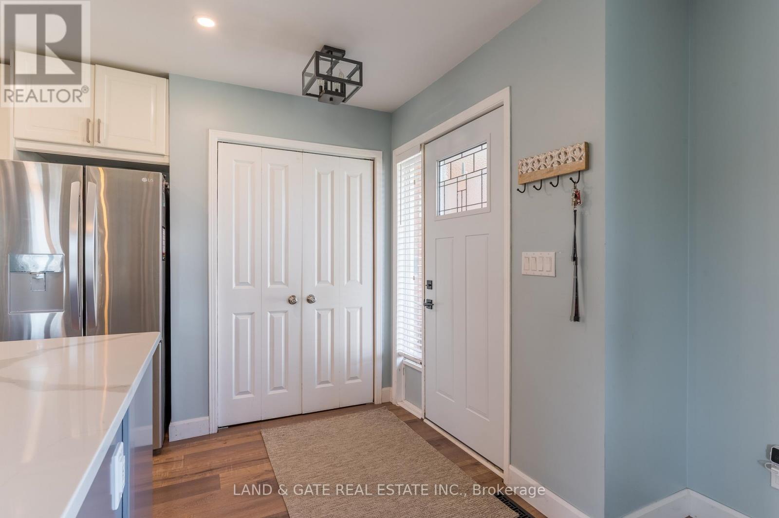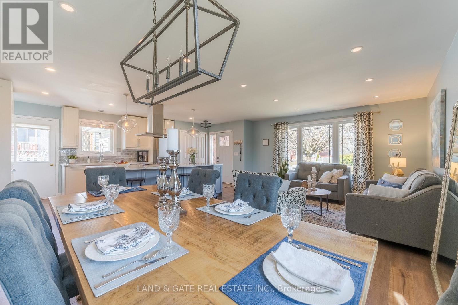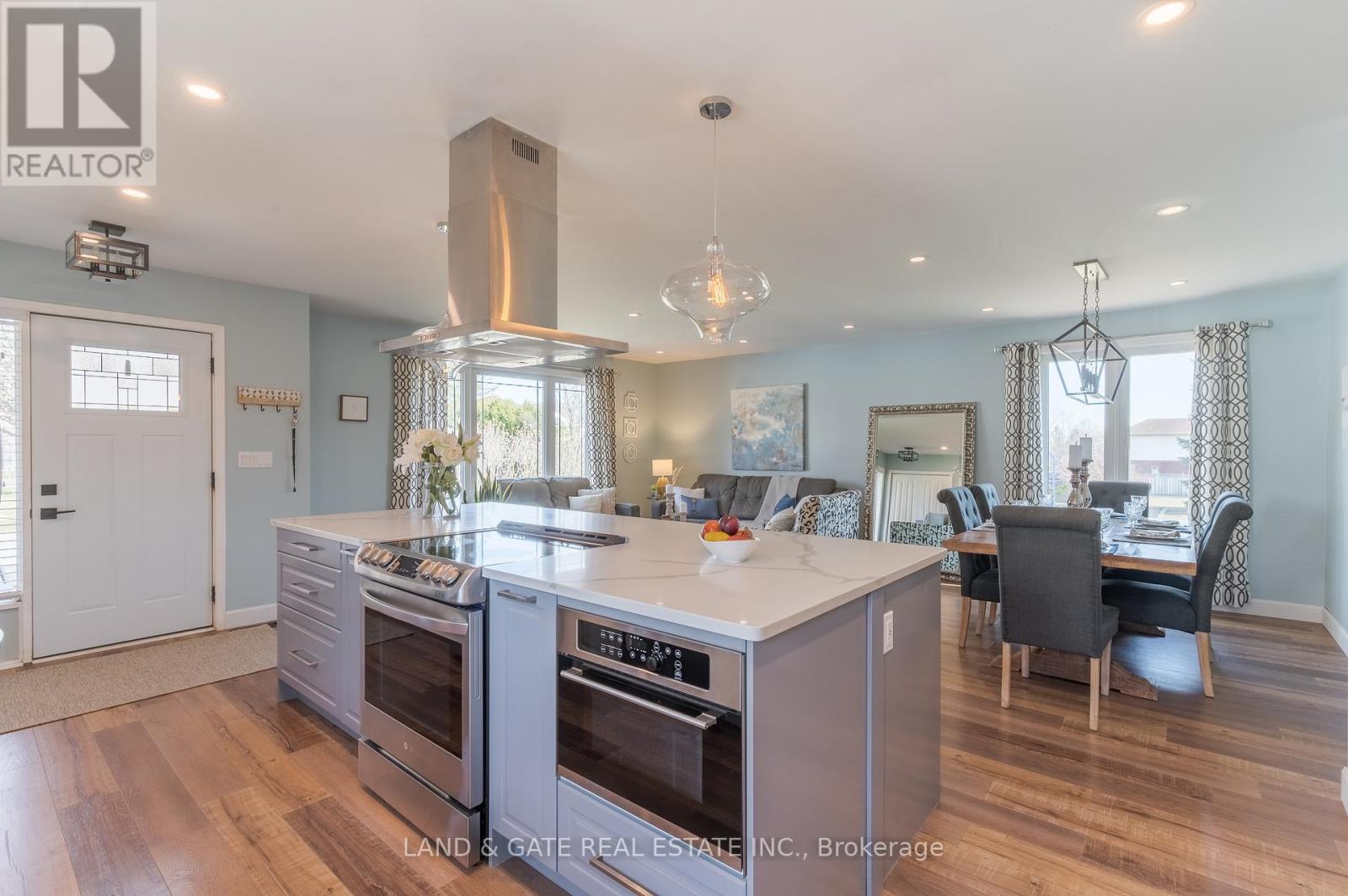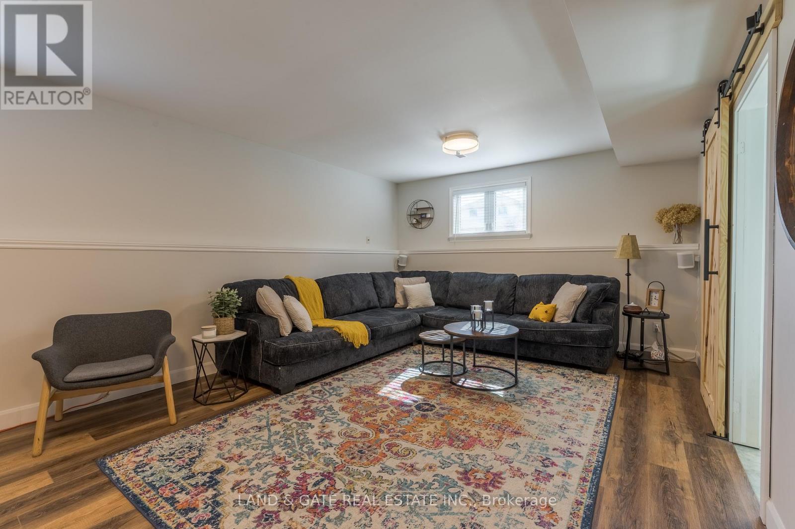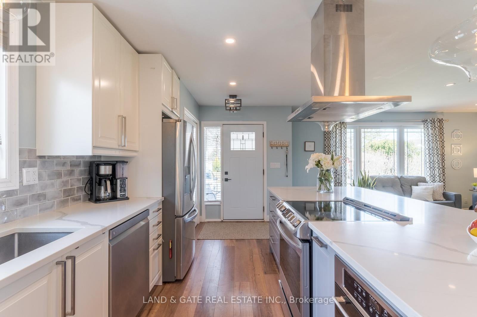 Welcome to 25 Hewson Drive in the beautiful town of Port Hope. This extensively renovated 4-level backsplit is located in a desirable, family-friendly neighbourhood and is directly beside a park, offering privacy and green space right outside your door. Inside, the open-concept main floor is filled with natural light and highlighted by a stunning nine-foot quartz island, the centerpiece of a timelessly designed kitchen. The spacious living and dining areas are surrounded by windows with serene park views, creating the perfect gathering space. Upstairs features three bright bedrooms and a four-piece bath. Fresh broadloom carpet in the hallway and bedrooms adds warmth and comfort. The lower level offers a welcoming family room with stylish, low-maintenance vinyl plank flooring and a striking shiplap fireplace, accented by a reclaimed barn beam mantle and handcrafted steel brackets. This level also includes a versatile fourth bedroom/office with barn door, a modern three-piece bath, and a convenient laundry room. The finished basement extends your living space with a large recreation room and plenty of storage. Outdoors, the backyard is designed for both relaxation and entertaining. Off the kitchen, a spacious deck leads to a patio and hot tub, while further back, you'll find a cozy fire pit area - perfect for evenings with family and friends. Move-in ready, just minutes to downtown Port Hope, schools, and Hwy 401 - this home truly has it all. (id:51158)