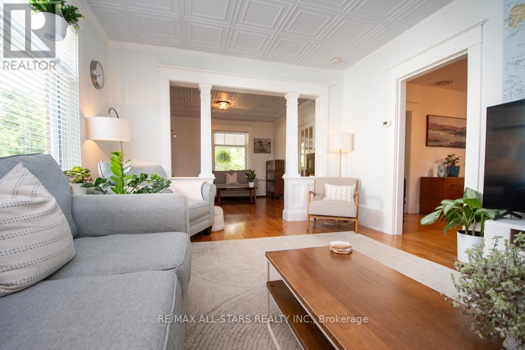 Charming century home with timeless character and modern updates! This beautifully maintained, 2.5-storey, all-brick home offers over 2,100 sq ft of living space and is filled with original character, while all the important updates have been completed for you. Featuring a welcoming covered wraparound front porch, wide baseboards, crown moulding, french doors, two staircases, and gleaming hardwood floors throughout, this home blends historic charm with modern convenience.The main floor boasts a spacious living room, cozy family room, and a large formal dining room. The bright kitchen offers direct access to a generous-sized deck and a private backyard, perfect for entertaining or family fun. Upstairs, you'll find three bedrooms, plus an office, as well as an enclosed three-season sun porch. The beautifully finished walk-up attic loft provides excellent additional living space. Meticulously cared for, this home includes numerous important updates including a high-efficiency Viessmann boiler with a new heat exchanger (2025), nearly all windows replaced with high-efficiency Nortech windows (2012-2018), updated wiring & plumbing, a durable steel roof (2012), and freshly painted interior. The basement has been professionally waterproofed and the exterior brick repointed, ensuring long-lasting durability. Ideally located on a quiet residential street close to shops, schools, and beautiful Garnet Graham Beachfront Park, this home offers the perfect combination of historic craftsmanship, modern efficiency, and prime location. (id:51158)