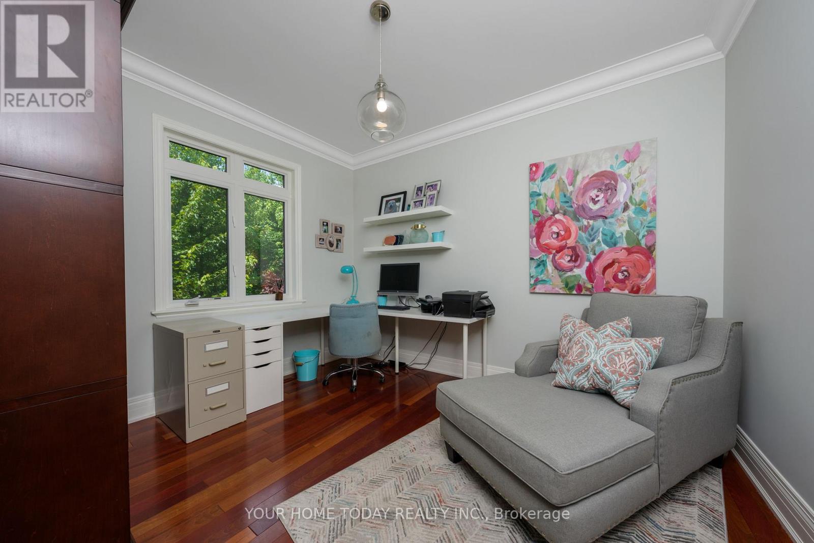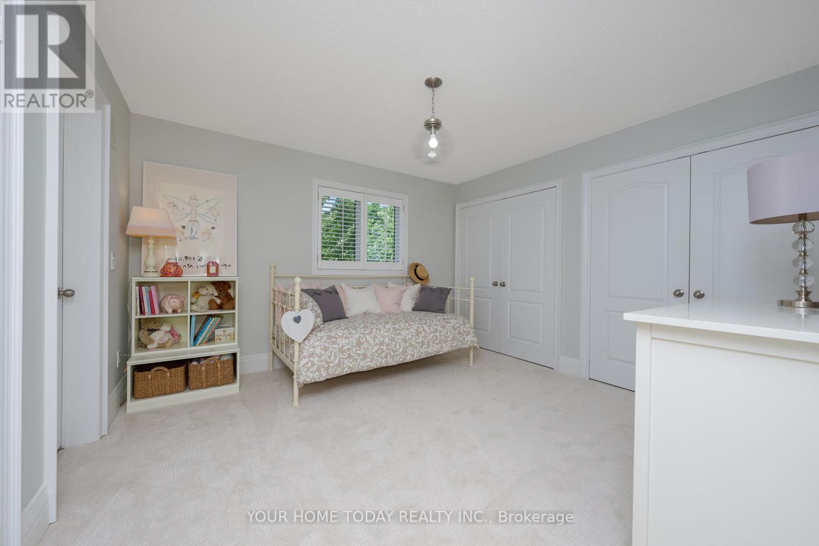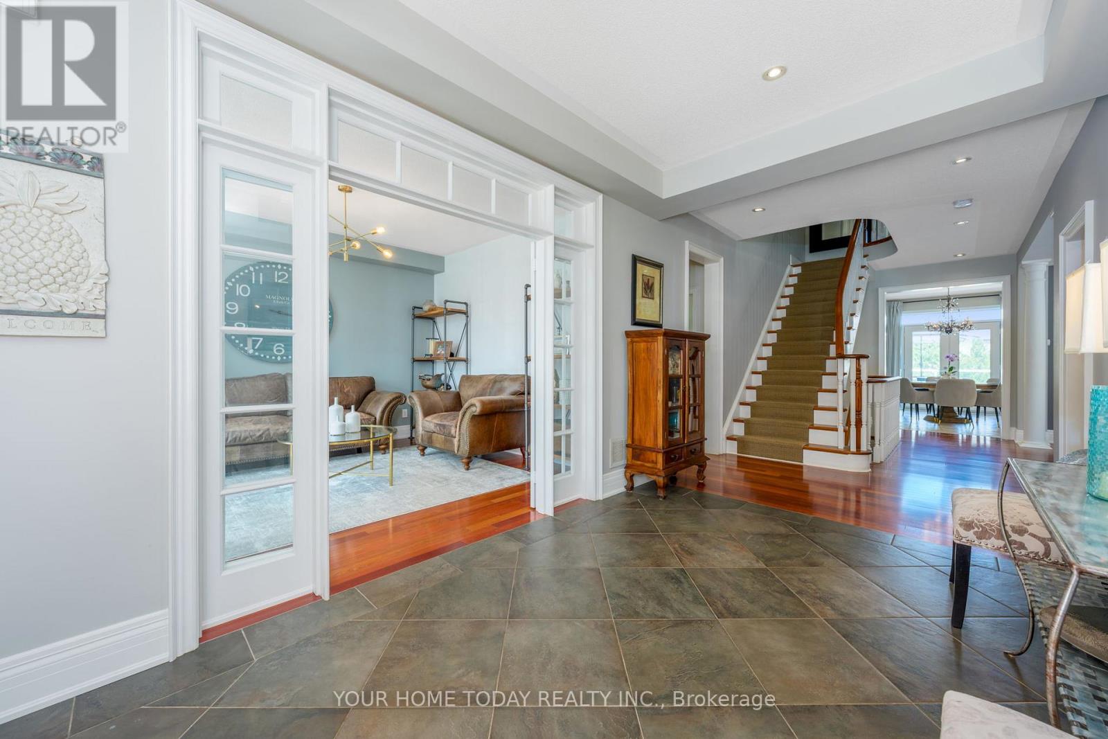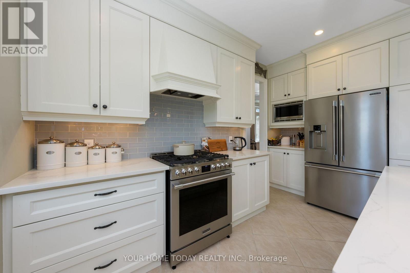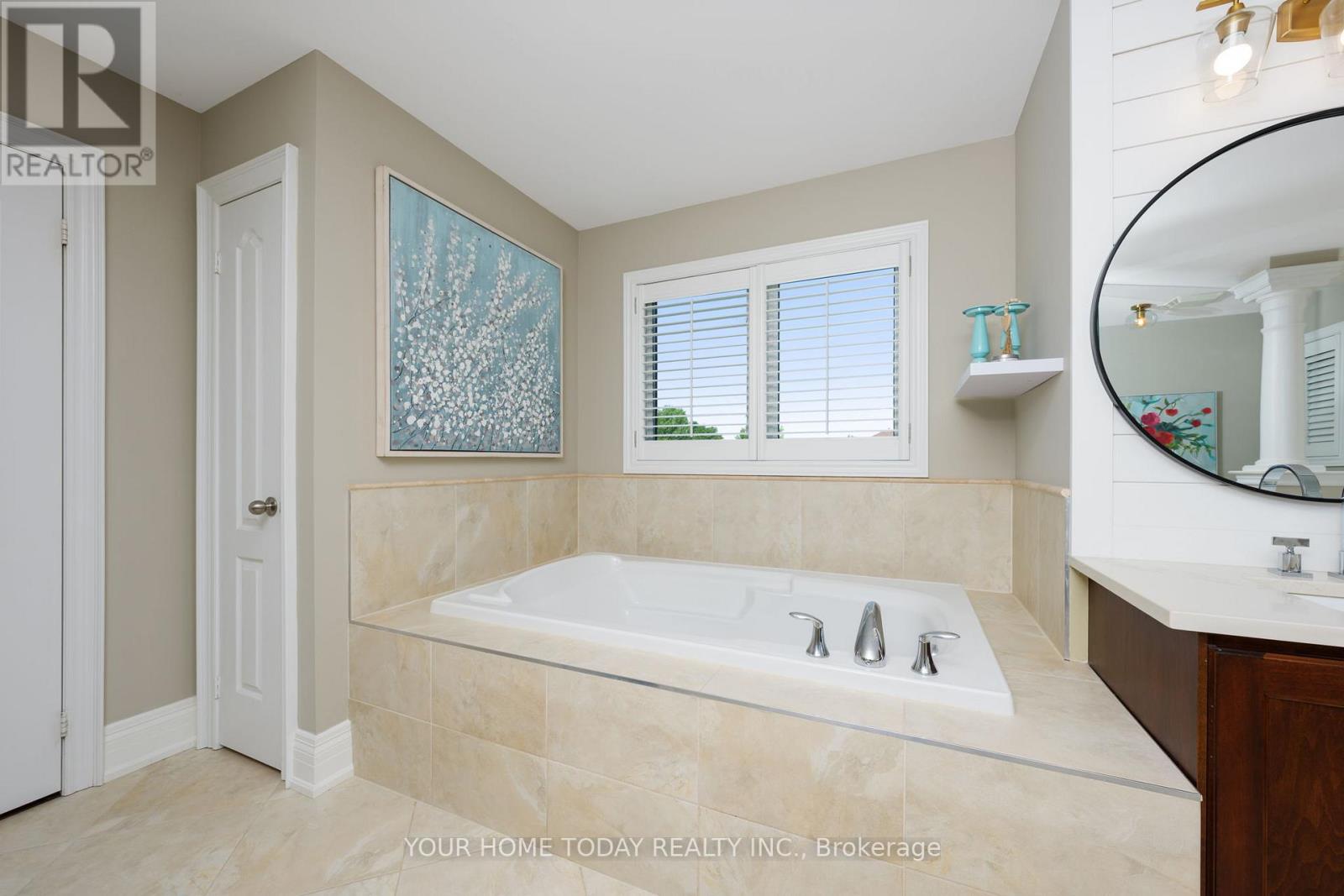 Double Oak excellence teamed with impeccable taste plus a gorgeous ravine lot with heated saltwater pool a win, win, win!! Nestled on one of the nicest & rarely available cul-de-sacs in town, this impressive 5-bdrm, 3.5-bthrm home offers over 5,000 sq. ft. of beautifully finished living space with attention to detail & superior quality throughout. A stylish stone portico, lovely landscaping & striking entry system set the stage for this exceptional home & property. The main level features a spacious layout with 9 ft. ceilings, tasteful flooring, crown, pot lights, U/G trim/window frames & more. Formal dining & living rooms are perfect for entertaining guests or sneaking off for some quiet time, while the kitchen & family room, the heart of the home, are nestled at the back O/L a magical setting! The kitchen & servery feature extended height shaker style cabinetry with crown detail, quartz counter & glass subway tile bcksplsh. An island with seating, SS appliances, breakfast area & W/O to the large glass paneled deck O/L a backyard oasis are sure to delight the chef in the house. The adjoining family room enjoys a toasty gas F/P & large view over the breathtaking yard. An office, powder room, laundry room & mud room complete the level. The upper level offers 5 spacious bdrms, one with W/O to balcony & all with ensuite access. The primary suite features an eye-catching feature wall, W/I closet & decadent 5-pc. An O/C basement adds to the enjoyment with a party-sized rec room, exercise area, office area & large workshop/utility room. A toasty gas f/p set on a shiplap feature wall, large A/G windows & W/O to the covered patio, pool & cabana add to the enjoyment. Wrapping up this extraordinary offering is the breathtaking ravine lot with stunning tiered gardens, pool, extensive patio area, huge deck & cedar-lined cabana. Great location for commuters. Steps to the amazing Hungry Hollow trail & close to rec centre, schools, parks, shops & more. (id:51158)