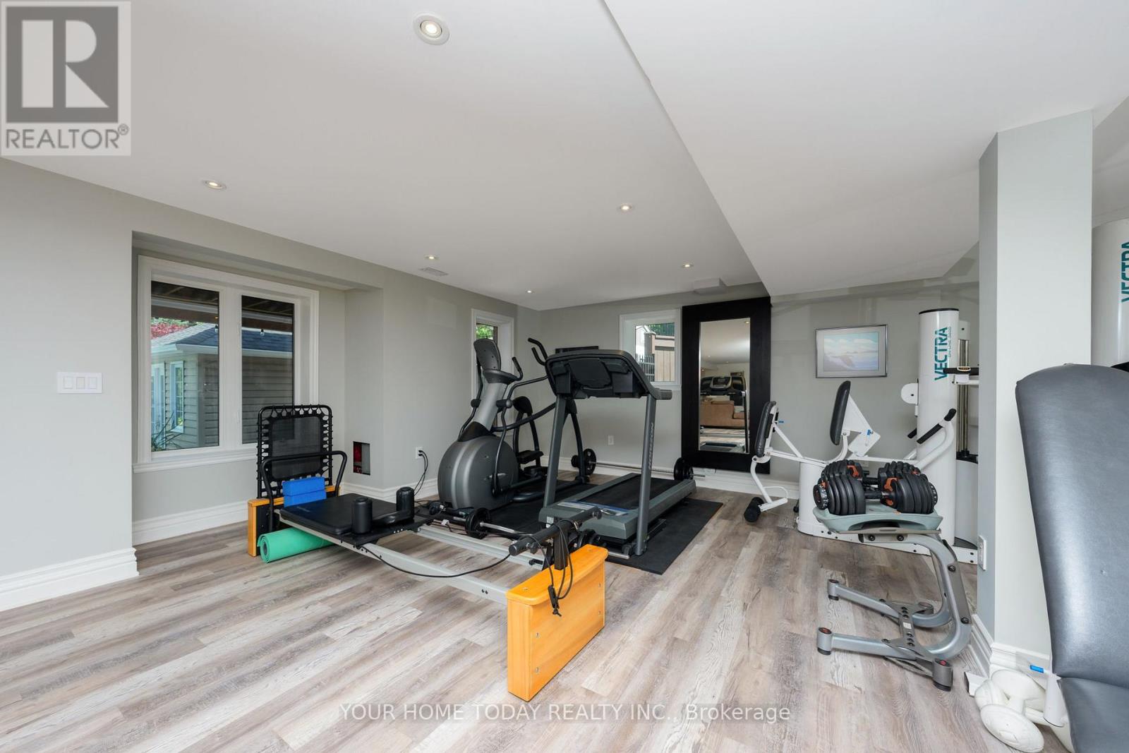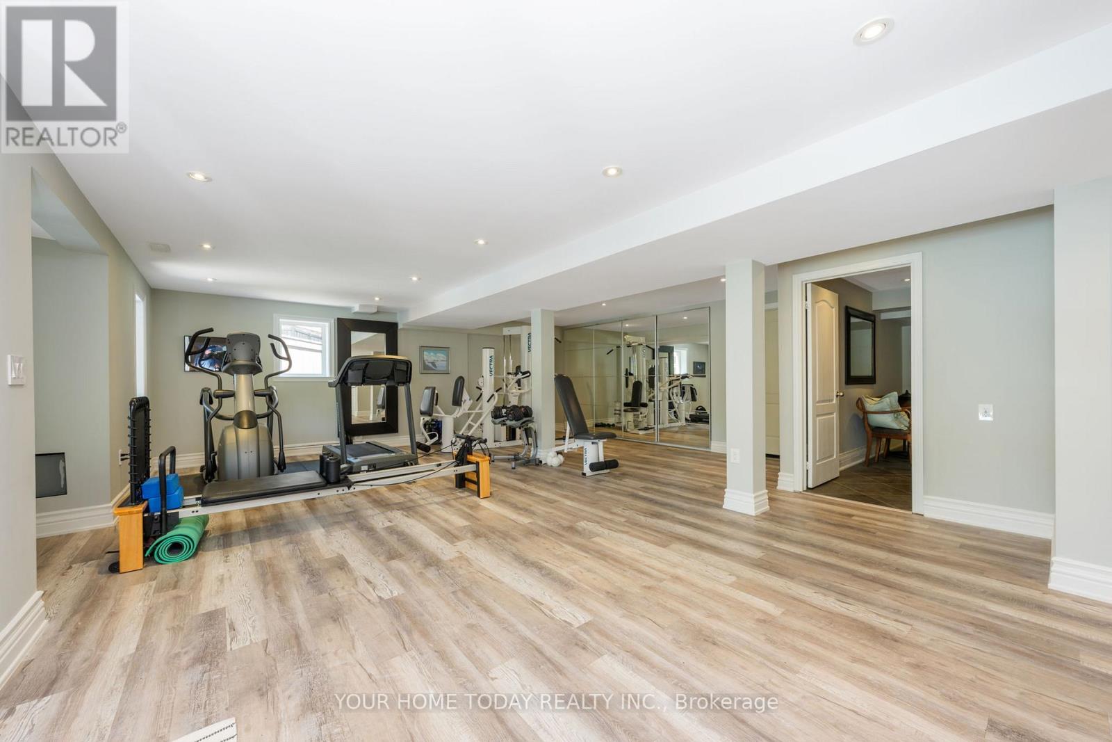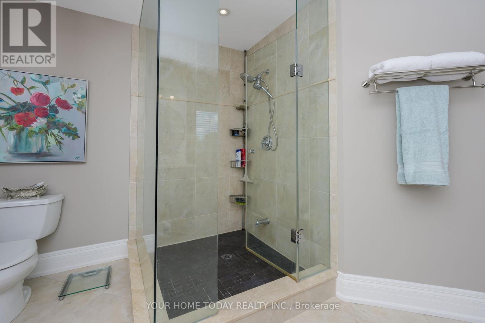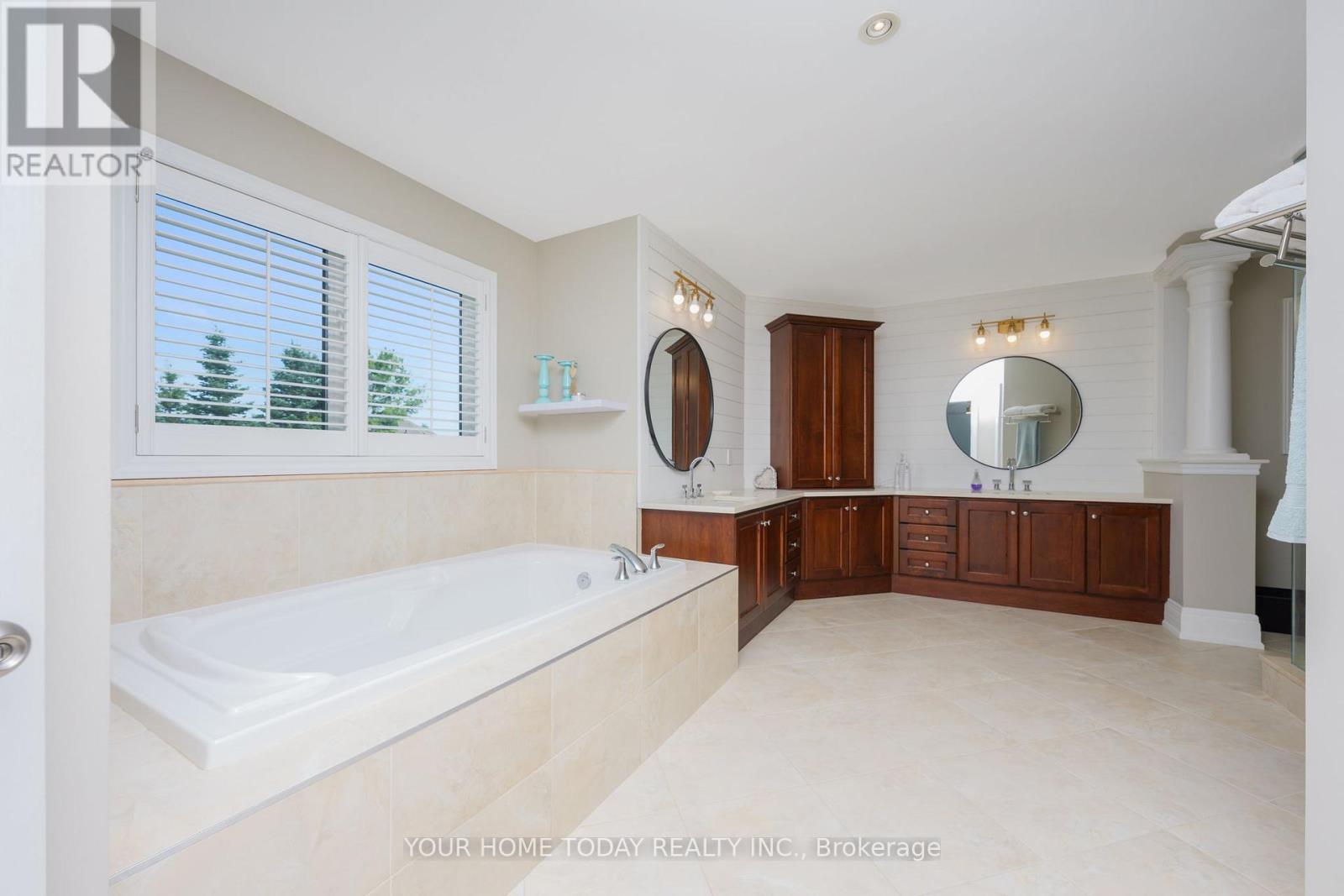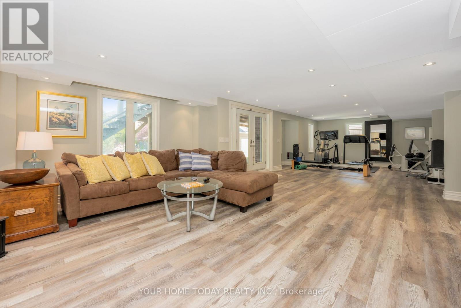 Double Oak excellence teamed with impeccable taste plus a gorgeous ravine lot with heated saltwater pool a win, win, win!! Nestled on one of the nicest & rarely available cul-de-sacs in town, this impressive 5-bdrm, 3.5-bthrm home offers over 5,000 sq. ft. of beautifully finished living space with attention to detail & superior quality throughout. A stylish stone portico, lovely landscaping & striking entry system set the stage for this exceptional home & property. The main level features a spacious layout with 9 ft. ceilings, tasteful flooring, crown, pot lights, U/G trim/window frames & more. Formal dining & living rooms are perfect for entertaining guests or sneaking off for some quiet time, while the kitchen & family room, the heart of the home, are nestled at the back O/L a magical setting! The kitchen & servery feature extended height shaker style cabinetry with crown detail, quartz counter & glass subway tile bcksplsh. An island with seating, SS appliances, breakfast area & W/O to the large glass paneled deck O/L a backyard oasis are sure to delight the chef in the house. The adjoining family room enjoys a toasty gas F/P & large view over the breathtaking yard. An office, powder room, laundry room & mud room complete the level. The upper level offers 5 spacious bdrms, one with W/O to balcony & all with ensuite access. The primary suite features an eye-catching feature wall, W/I closet & decadent 5-pc. An O/C basement adds to the enjoyment with a party-sized rec room, exercise area, office area & large workshop/utility room. A toasty gas f/p set on a shiplap feature wall, large A/G windows & W/O to the covered patio, pool & cabana add to the enjoyment. Wrapping up this extraordinary offering is the breathtaking ravine lot with stunning tiered gardens, pool, extensive patio area, huge deck & cedar-lined cabana. Great location for commuters. Steps to the amazing Hungry Hollow trail & close to rec centre, schools, parks, shops & more. (id:51158)