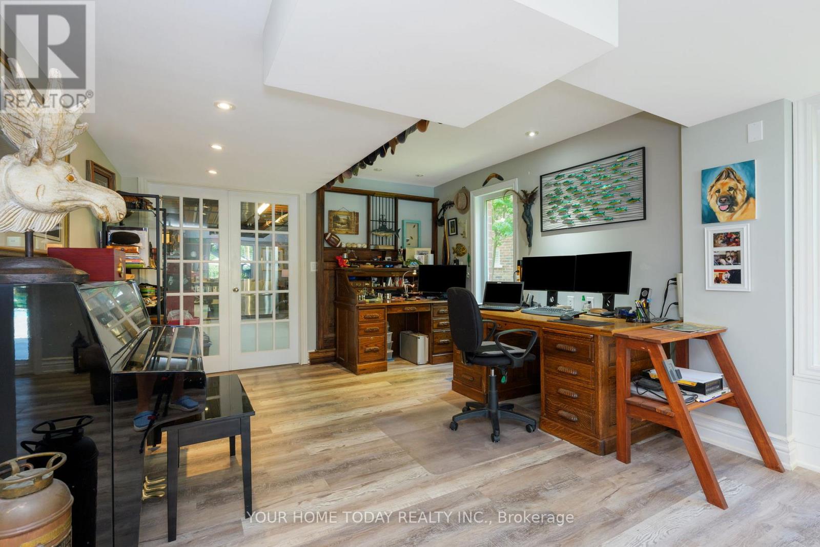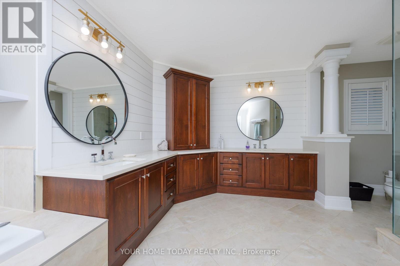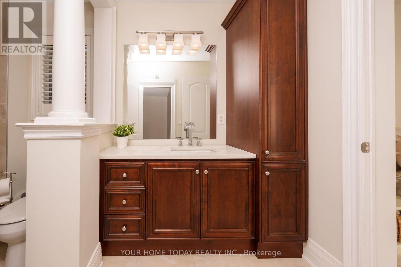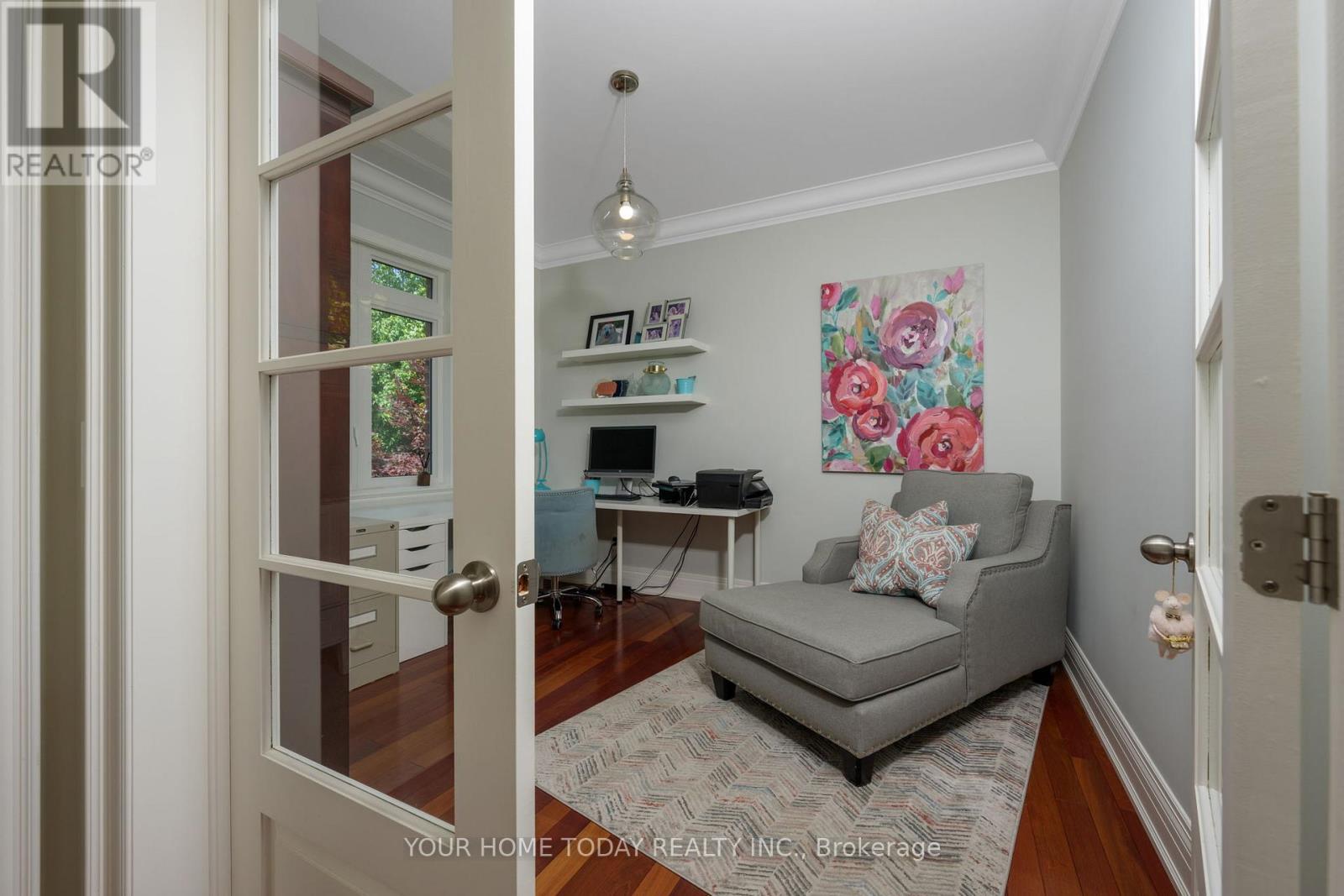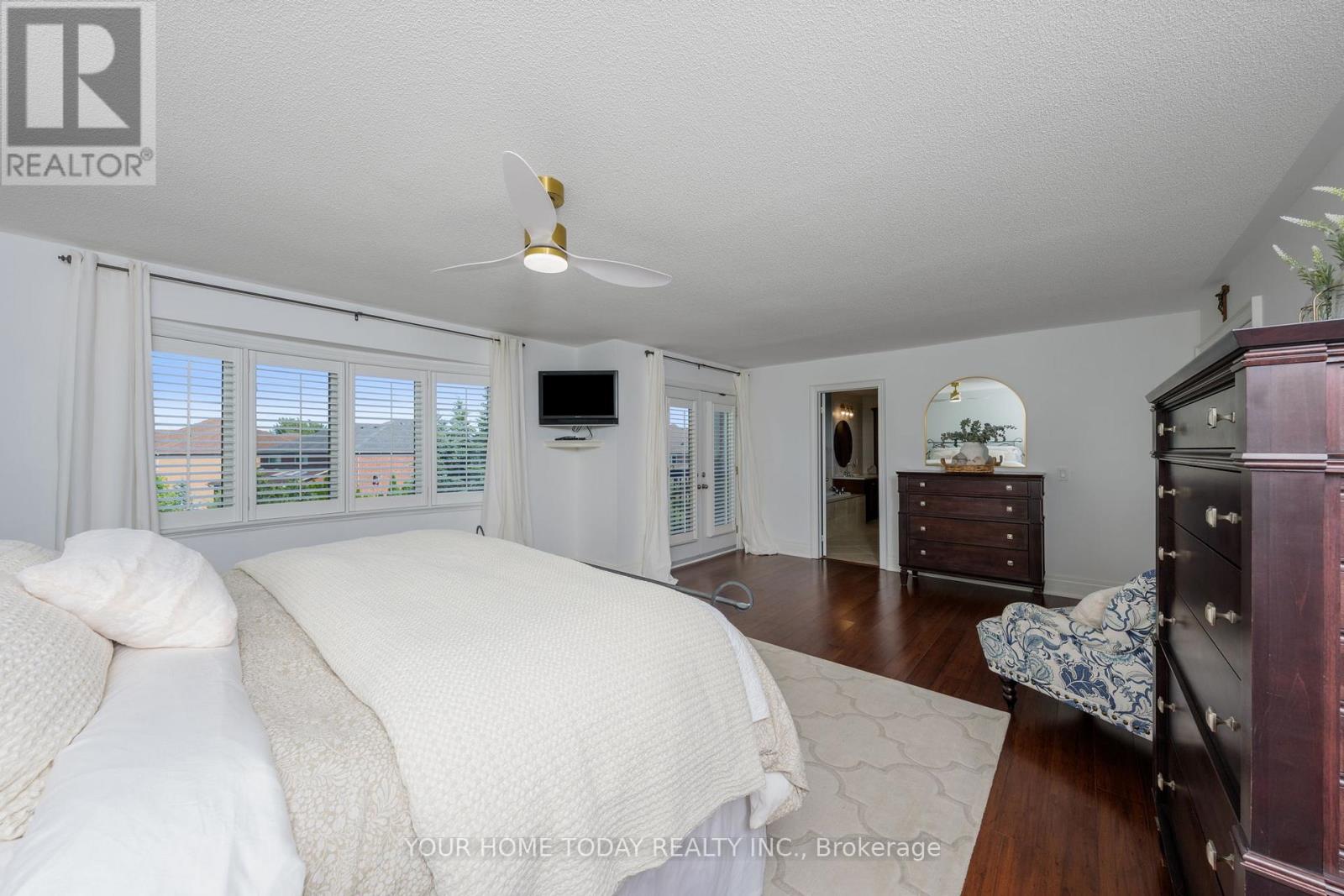 Double Oak excellence teamed with impeccable taste plus a gorgeous ravine lot with heated saltwater pool a win, win, win!! Nestled on one of the nicest & rarely available cul-de-sacs in town, this impressive 5-bdrm, 3.5-bthrm home offers over 5,000 sq. ft. of beautifully finished living space with attention to detail & superior quality throughout. A stylish stone portico, lovely landscaping & striking entry system set the stage for this exceptional home & property. The main level features a spacious layout with 9 ft. ceilings, tasteful flooring, crown, pot lights, U/G trim/window frames & more. Formal dining & living rooms are perfect for entertaining guests or sneaking off for some quiet time, while the kitchen & family room, the heart of the home, are nestled at the back O/L a magical setting! The kitchen & servery feature extended height shaker style cabinetry with crown detail, quartz counter & glass subway tile bcksplsh. An island with seating, SS appliances, breakfast area & W/O to the large glass paneled deck O/L a backyard oasis are sure to delight the chef in the house. The adjoining family room enjoys a toasty gas F/P & large view over the breathtaking yard. An office, powder room, laundry room & mud room complete the level. The upper level offers 5 spacious bdrms, one with W/O to balcony & all with ensuite access. The primary suite features an eye-catching feature wall, W/I closet & decadent 5-pc. An O/C basement adds to the enjoyment with a party-sized rec room, exercise area, office area & large workshop/utility room. A toasty gas f/p set on a shiplap feature wall, large A/G windows & W/O to the covered patio, pool & cabana add to the enjoyment. Wrapping up this extraordinary offering is the breathtaking ravine lot with stunning tiered gardens, pool, extensive patio area, huge deck & cedar-lined cabana. Great location for commuters. Steps to the amazing Hungry Hollow trail & close to rec centre, schools, parks, shops & more. (id:51158)