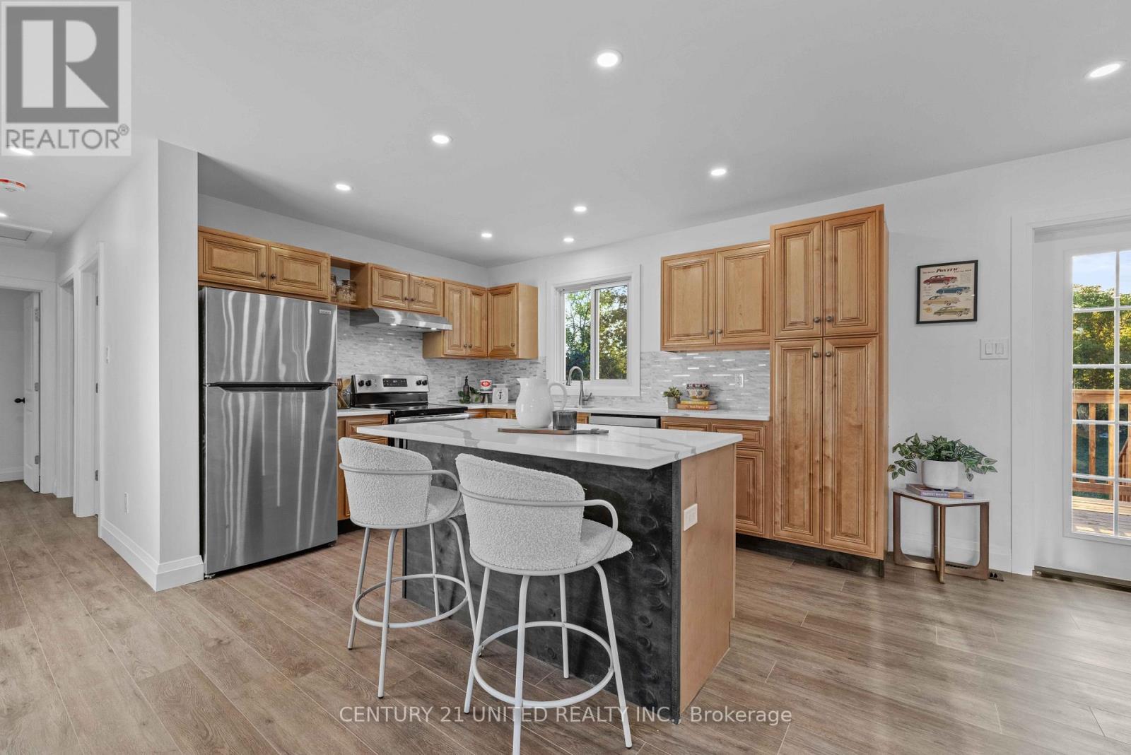 Welcome to Havelock, this beautifully renovated 3+1 bedroom, 2-bathroom raised bungalow nestled in a peaceful and fast-growing rural neighbourhood. An ideal setting for families, professional, or investors looking for long-term value. This turn-key home combines modern upgrades with small-town charm, offering a perfect balance of comfort, style, and functionality. No detail has been overlooked in this extensively updated home. Enjoy peace of mind with a brand-new metal roof, all-new plumbing, HVAC system (heating and cooling), updated insulation, new siding, landscaping, and completely redone interior finished. From the moment you step inside, you'll appreciate the open-concept living space flooded with natural light, modern flooring, custom kitchen cabinetry, quartz countertops, and stainless steel appliances. The lower level features a spacious additional bedroom or home office, a full bathroom, and a large family room. Perfect for multi-generational living or income potential. The private backyard offer ample space for entertaining, gardening, or simply enjoying the tranquility of rural life. Walking distance to schools, parks, and recreational areas, this property is just minutes from all the essentials such as grocery stores, healthcare services, and more. With growing employment opportunities in the medical field, this area is ideal for healthcare professionals or young families looking to settle down in a vibrant, evolving community. (id:51158)