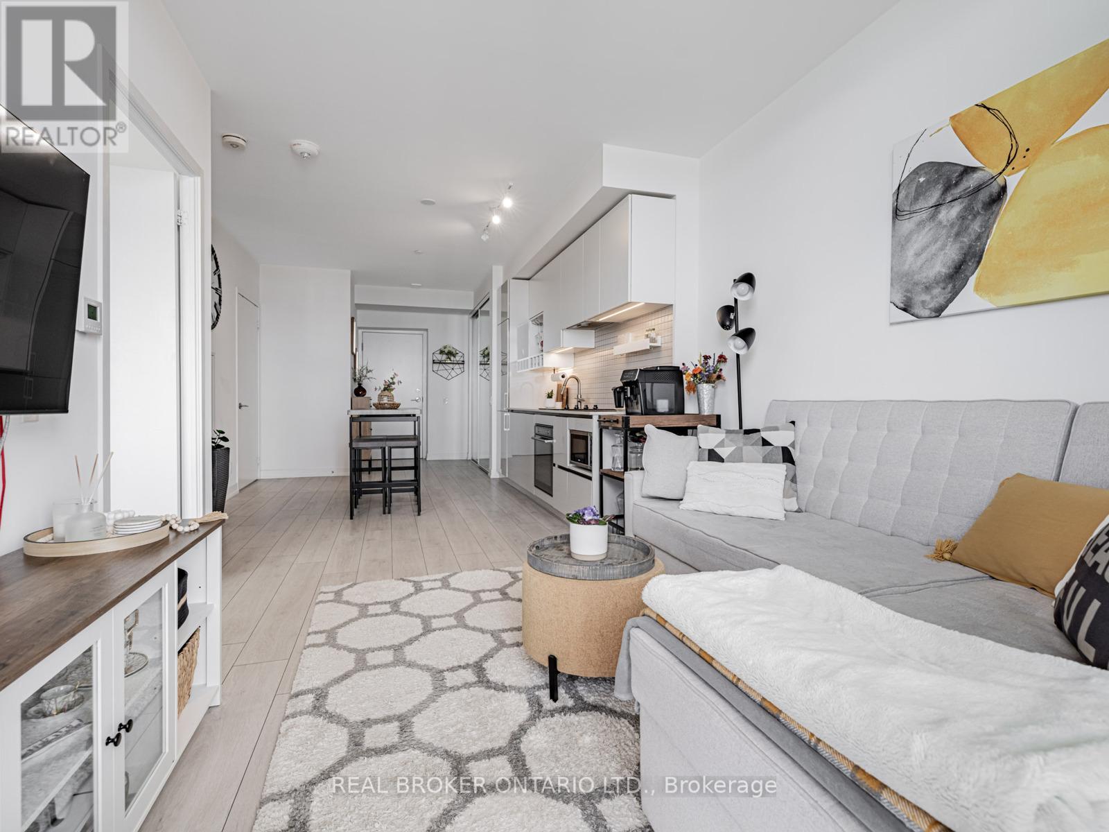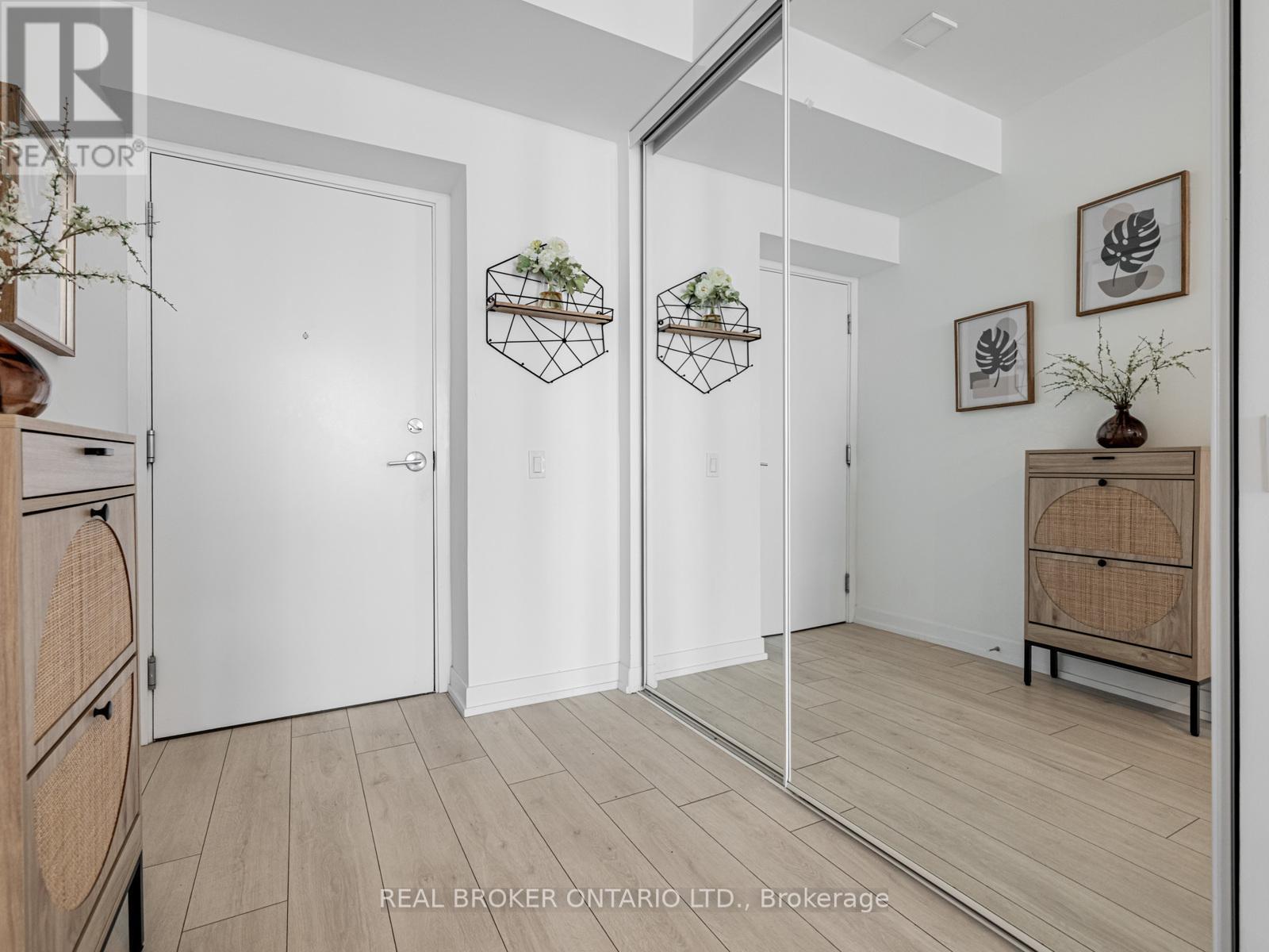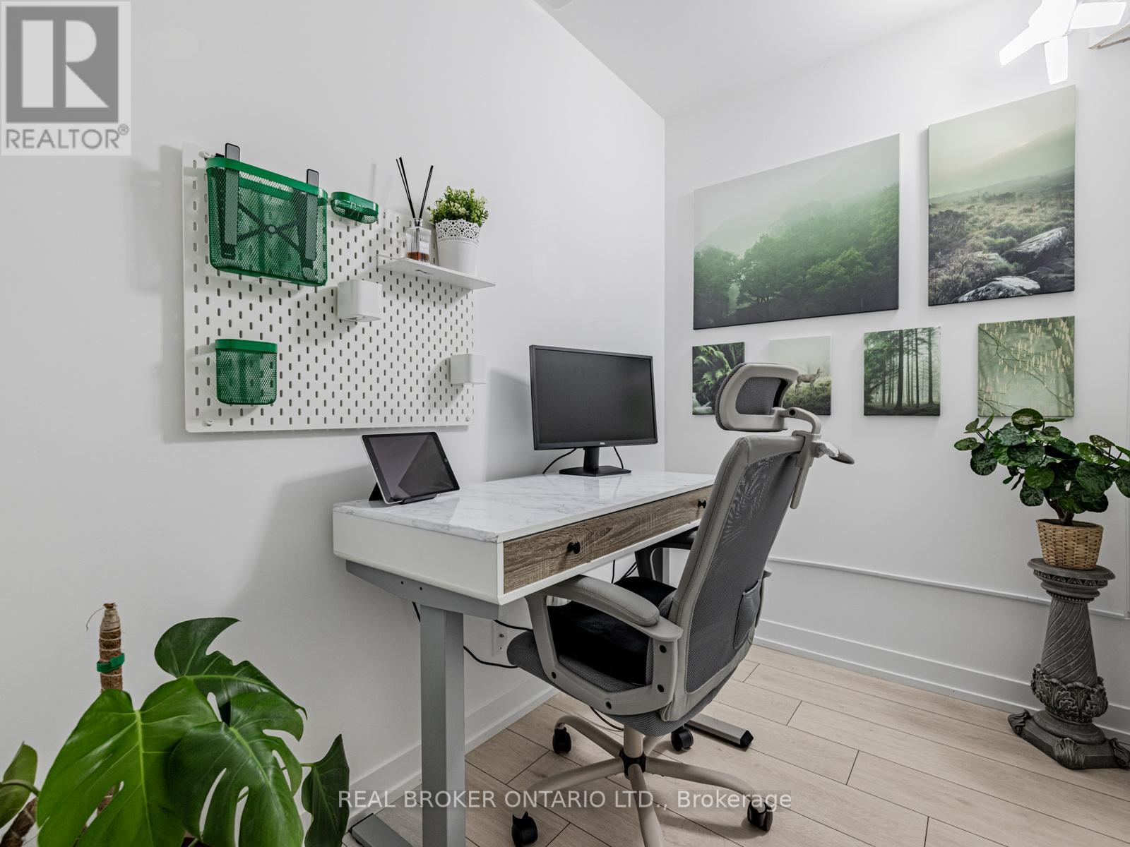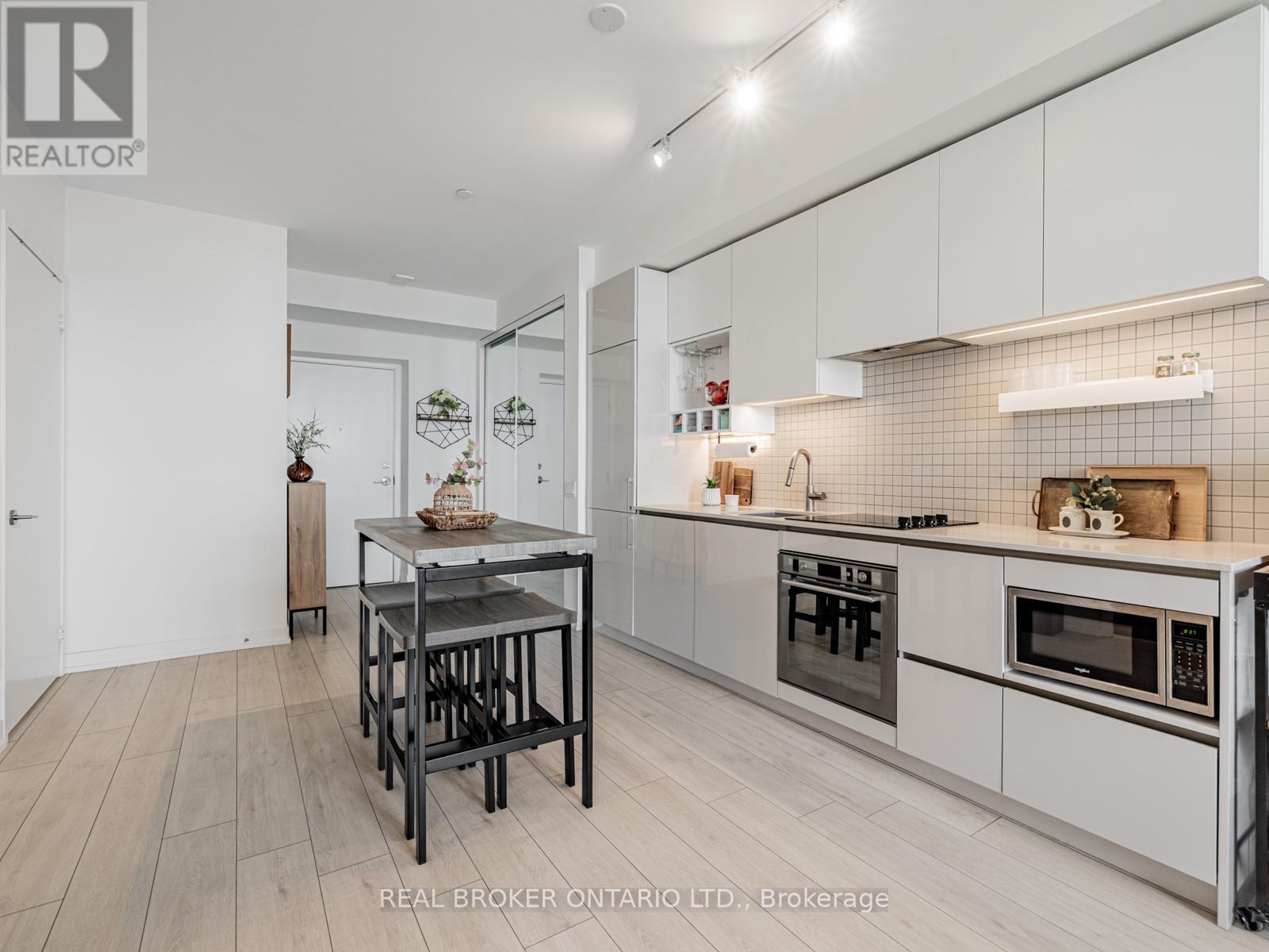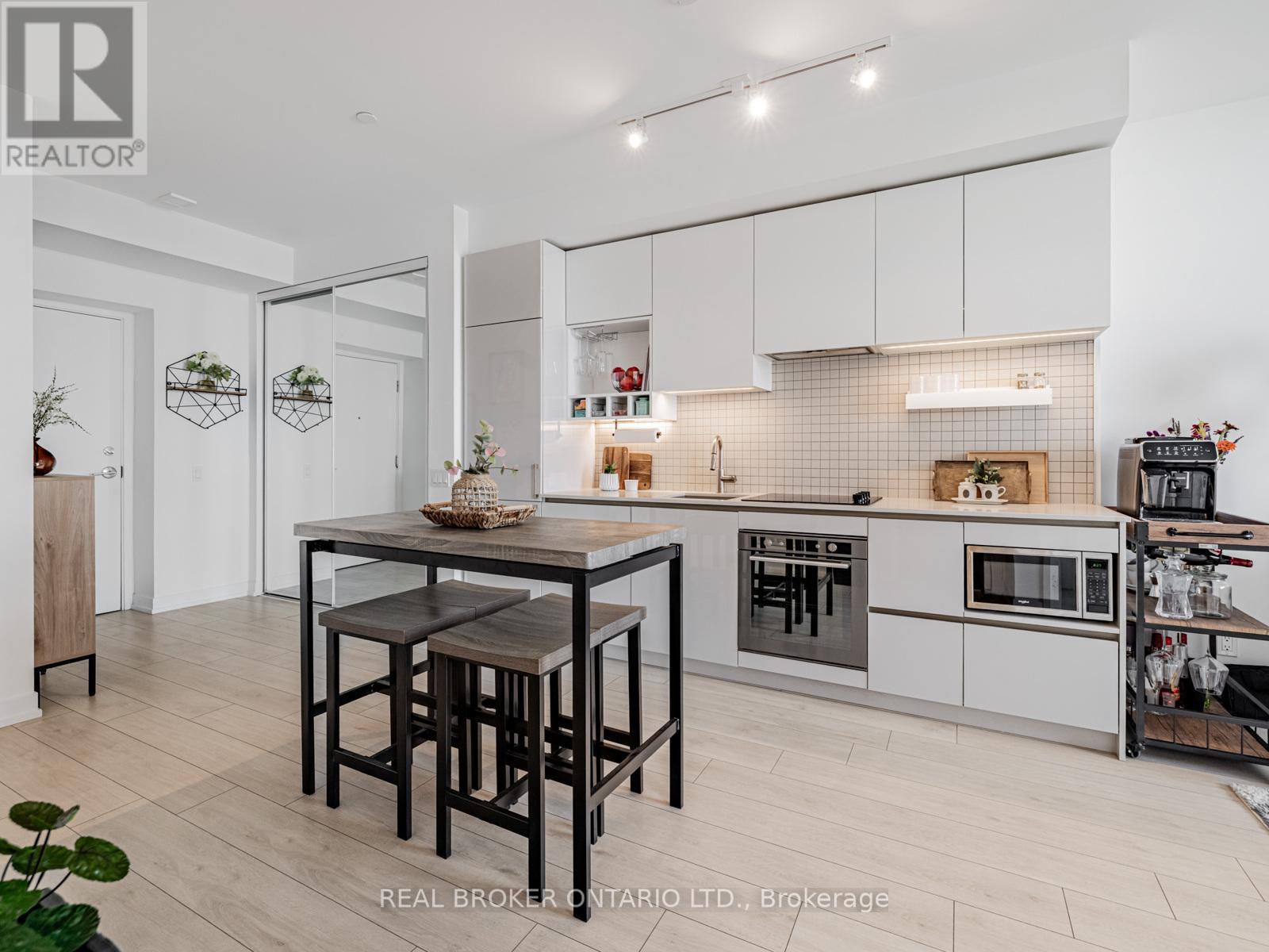 Bright Modern Condo with Unobstructed Views in Vaughan Metropolitan Centre. Experience urban living at its best in this stunning, sun-filled condo featuring 9-foot ceilings, floor-to-ceiling windows, and an expansive 112 sq. ft. terrace with wood deck tiles - perfect for relaxing or entertaining while enjoying unobstructed views. The sleek, modern kitchen includes integrated panel-ready fridge and dishwasher, offering both elegance and functionality. Beautifully maintained by the original owner and never rented, this home is in excellent condition and features numerous thoughtful upgrades: custom-designed California Closets and shelving in the entrance and bedroom, TV wall frame with built-in plug, motorized full-window blind in the bedroom, and a designer light fixture in the den. The den provides flexible use as a home office, guest bedroom, or nursery, adding versatility to this well-designed space. On the 8th floor, residents enjoy access to exceptional amenities, including a recreation room for families and kids, a party room, patio, and BBQ area - perfect for gatherings and relaxation. Located in the heart of the Vaughan Metropolitan Centre, steps from the subway, YMCA, grocery stores, and the upcoming 9-acre park, and just a short walk to Canada's Wonderland, with Vaughan Mills Mall, York University, and Highways 400 & 407 only minutes away. This bright, upgraded, and meticulously cared-for condo combines modern comfort, lifestyle, and location - truly an exceptional place to call home. (id:51158)