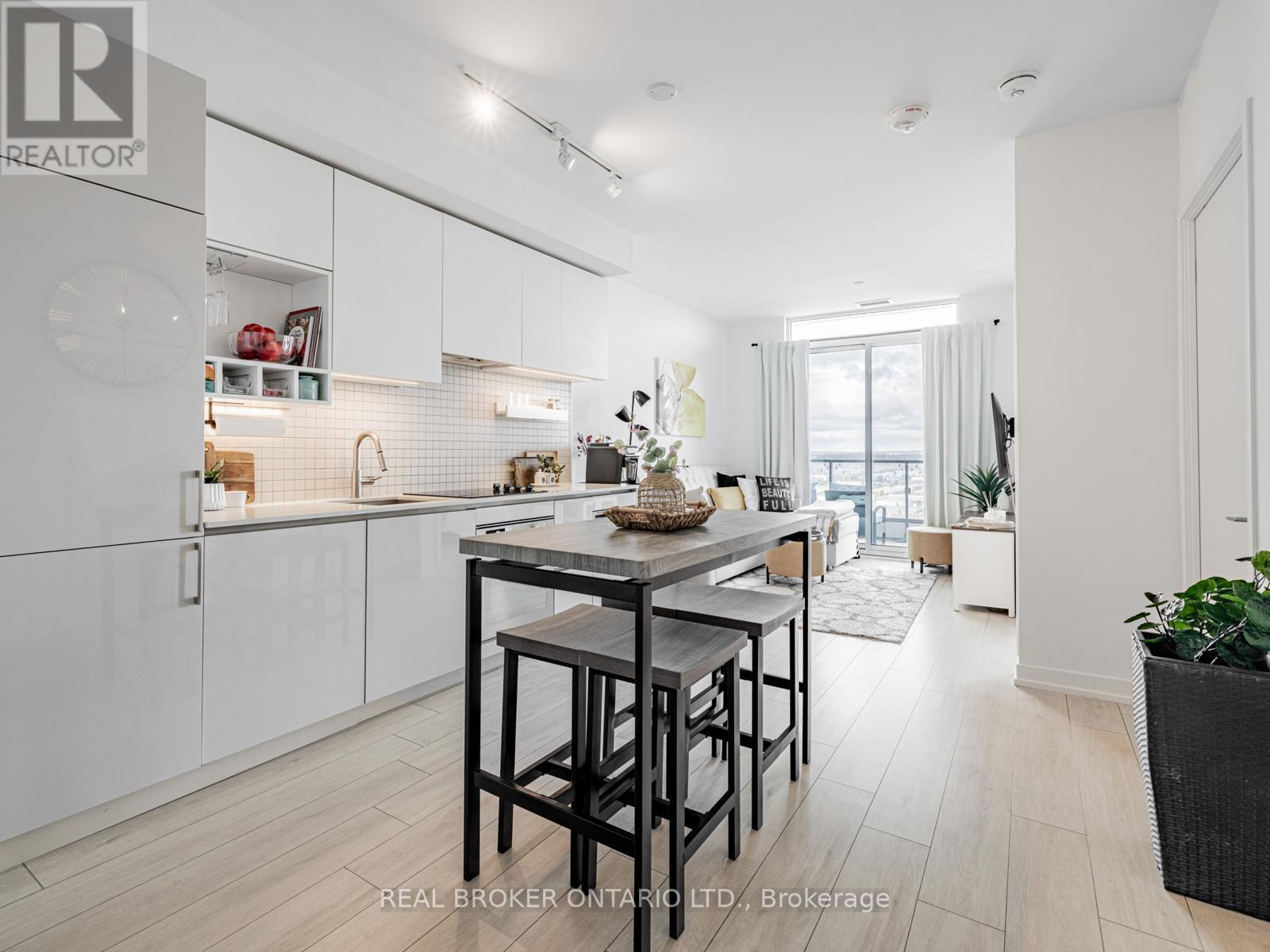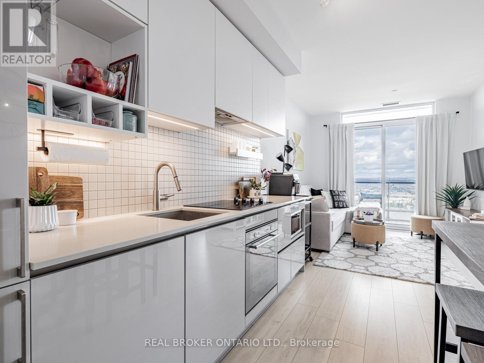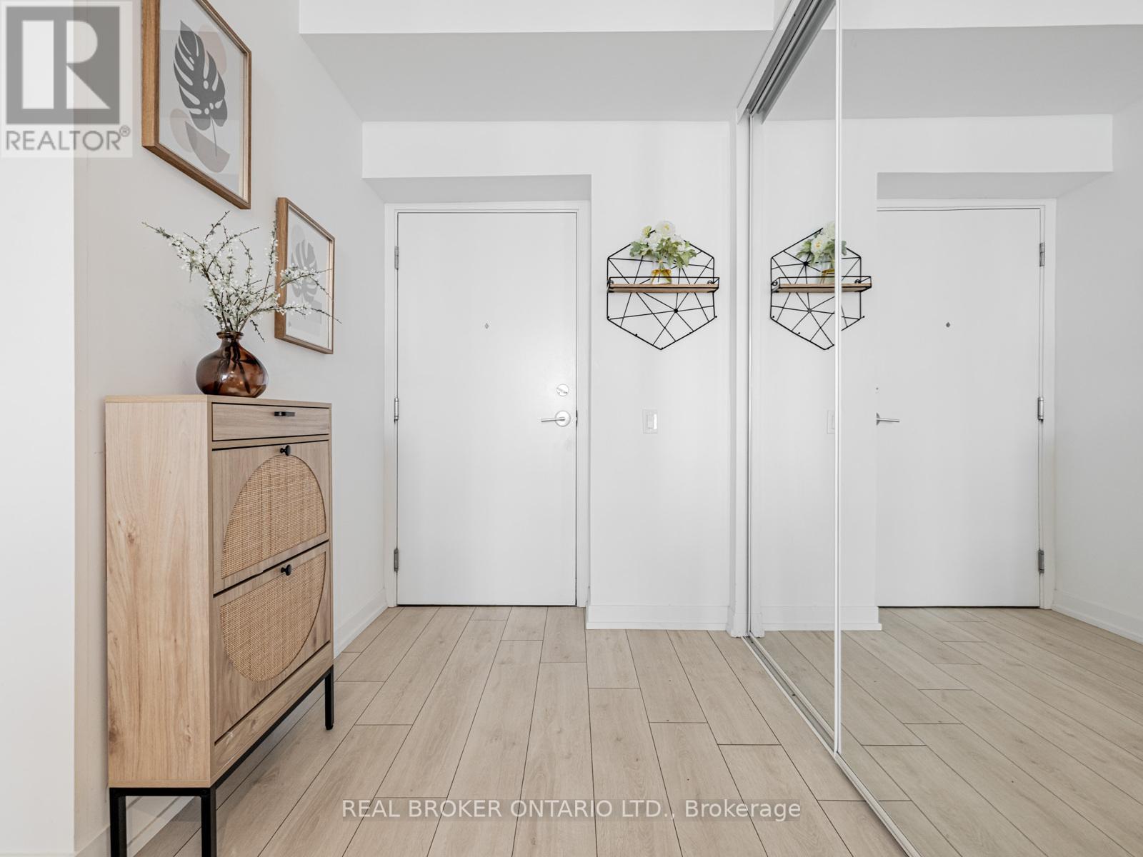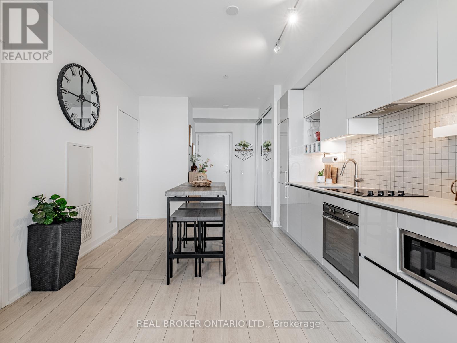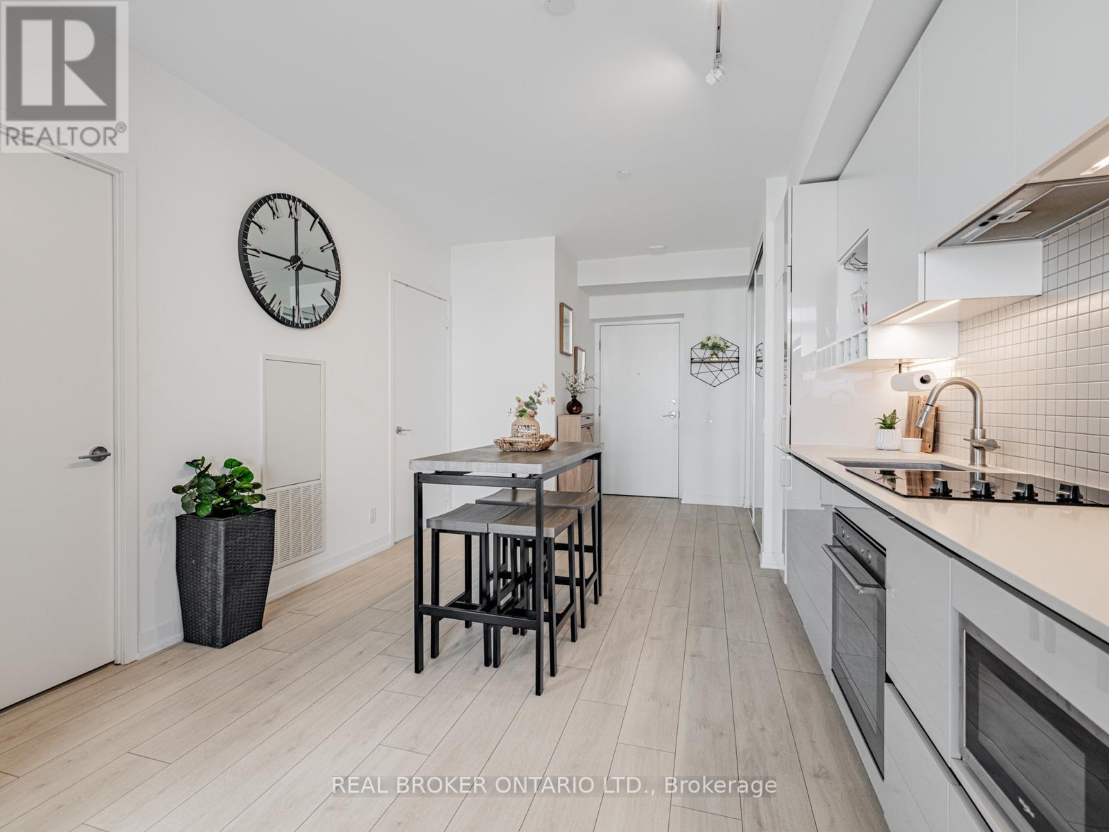 Bright Modern Condo with Unobstructed Views in Vaughan Metropolitan Centre. Experience urban living at its best in this stunning, sun-filled condo featuring 9-foot ceilings, floor-to-ceiling windows, and an expansive 112 sq. ft. terrace with wood deck tiles - perfect for relaxing or entertaining while enjoying unobstructed views. The sleek, modern kitchen includes integrated panel-ready fridge and dishwasher, offering both elegance and functionality. Beautifully maintained by the original owner and never rented, this home is in excellent condition and features numerous thoughtful upgrades: custom-designed California Closets and shelving in the entrance and bedroom, TV wall frame with built-in plug, motorized full-window blind in the bedroom, and a designer light fixture in the den. The den provides flexible use as a home office, guest bedroom, or nursery, adding versatility to this well-designed space. On the 8th floor, residents enjoy access to exceptional amenities, including a recreation room for families and kids, a party room, patio, and BBQ area - perfect for gatherings and relaxation. Located in the heart of the Vaughan Metropolitan Centre, steps from the subway, YMCA, grocery stores, and the upcoming 9-acre park, and just a short walk to Canada's Wonderland, with Vaughan Mills Mall, York University, and Highways 400 & 407 only minutes away. This bright, upgraded, and meticulously cared-for condo combines modern comfort, lifestyle, and location - truly an exceptional place to call home. (id:51158)