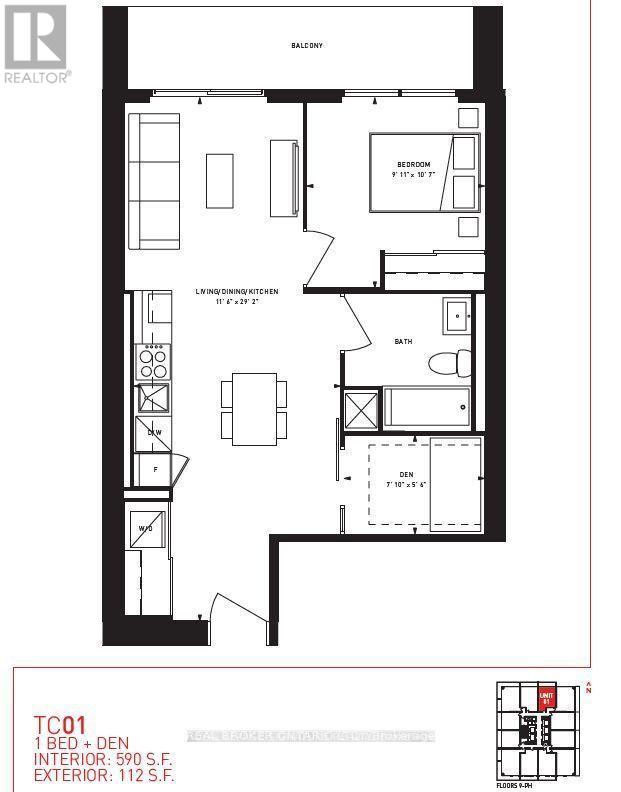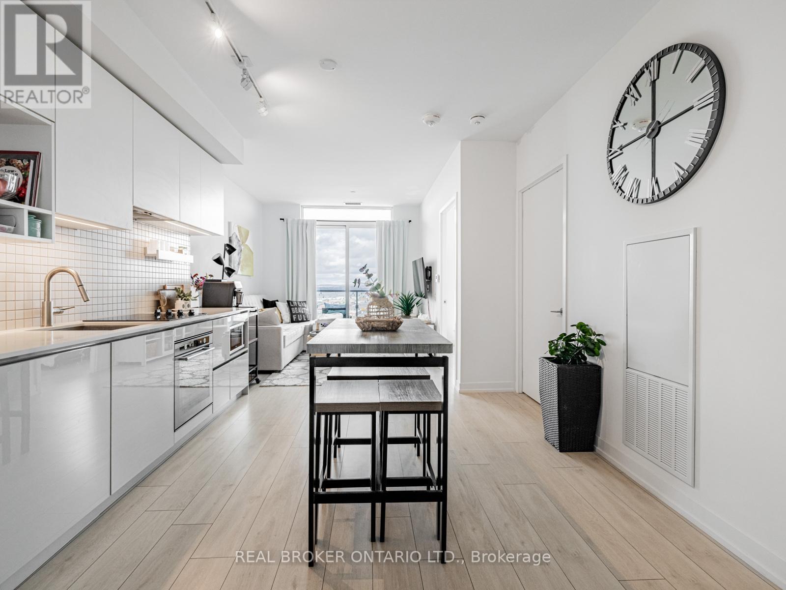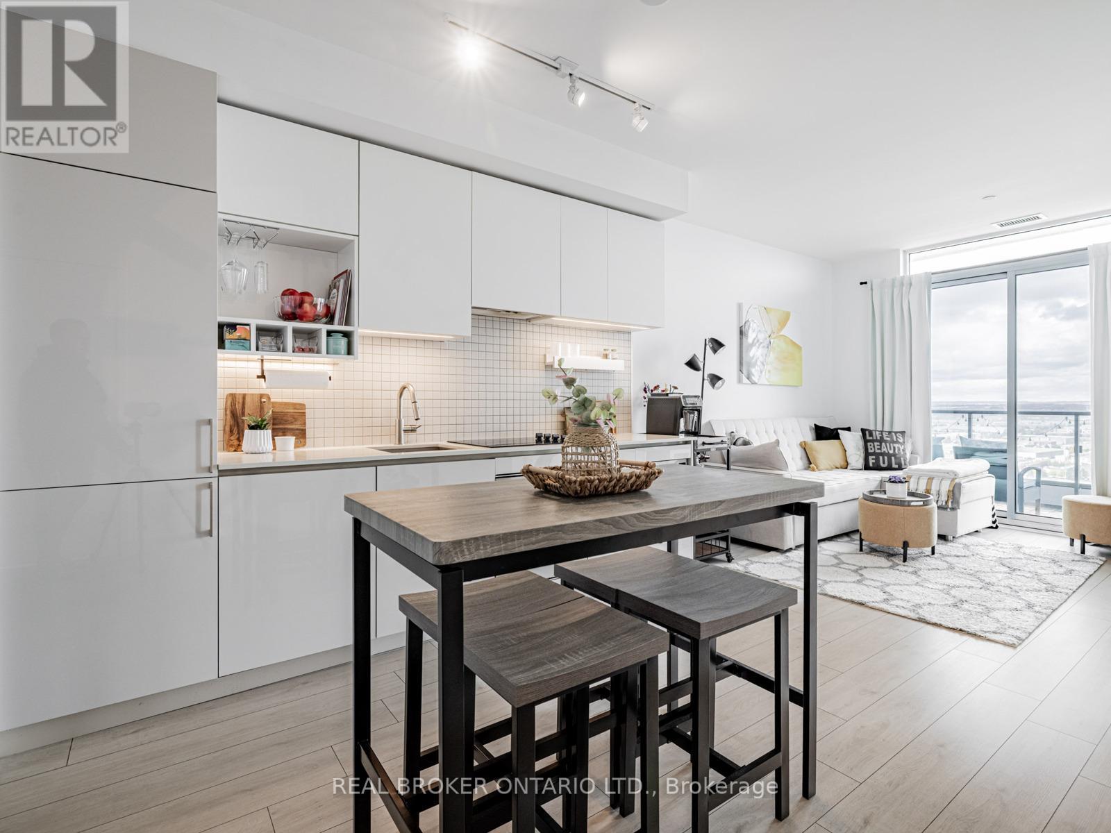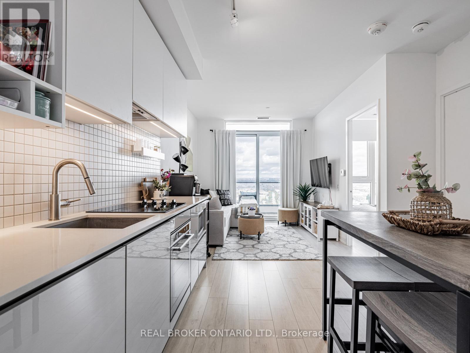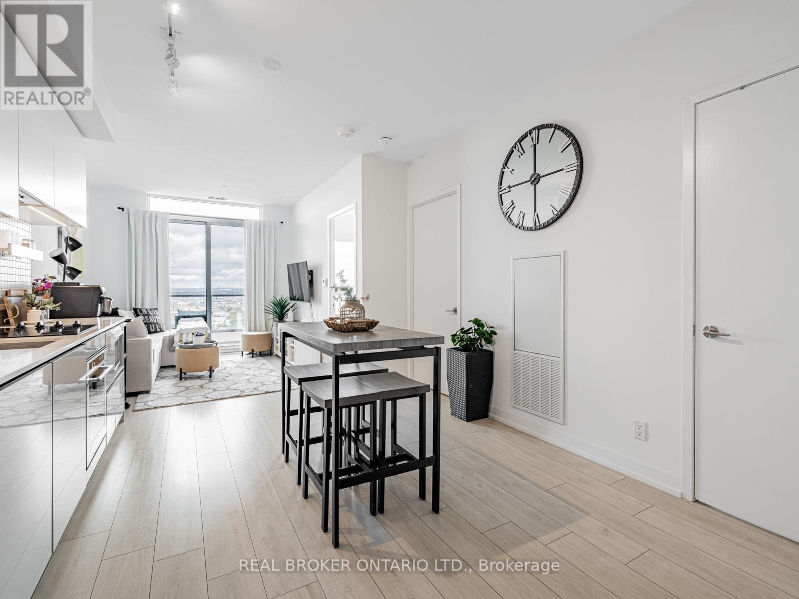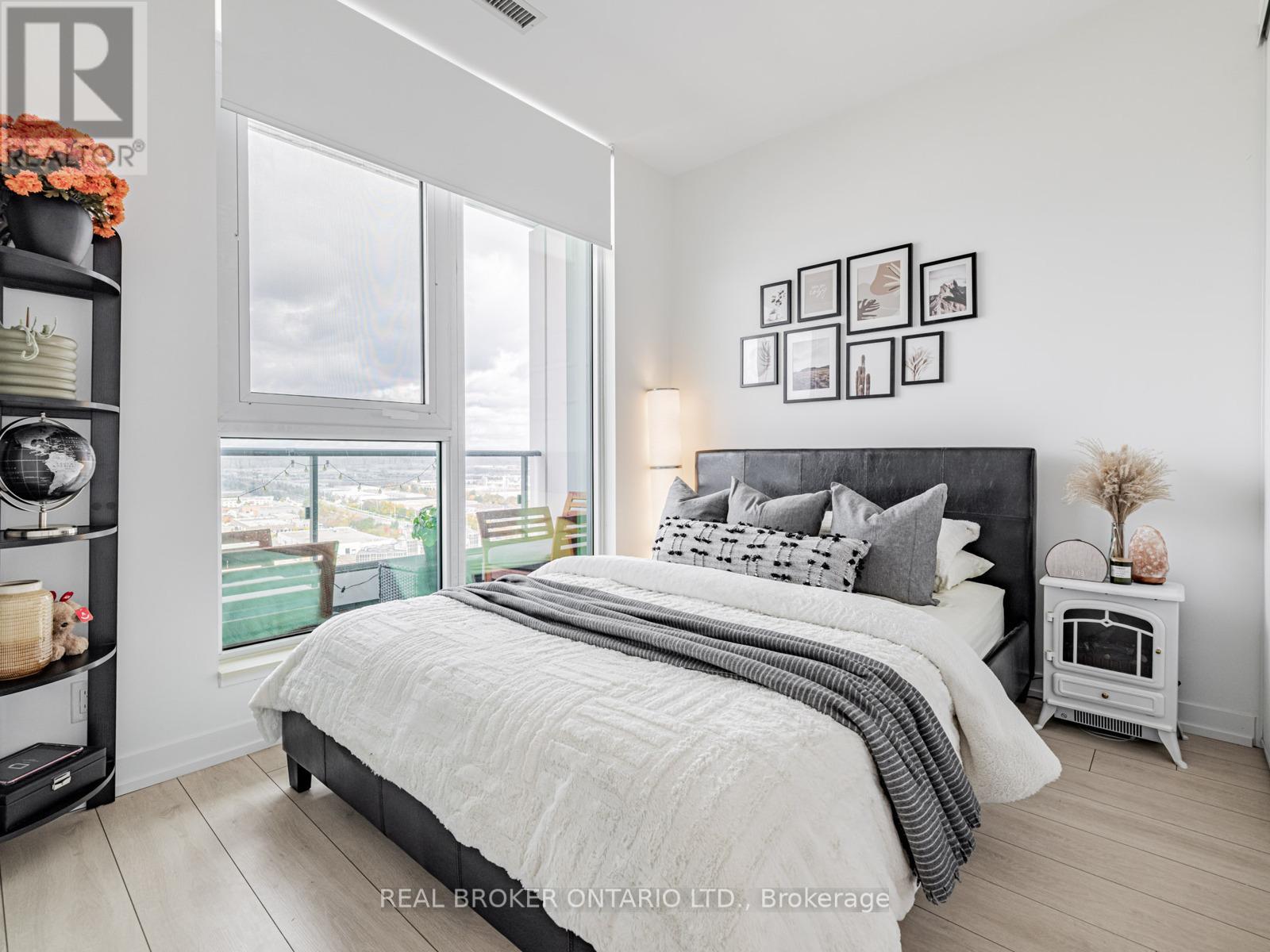Bright Modern Condo with Unobstructed Views in Vaughan Metropolitan Centre. Experience urban living at its best in this stunning, sun-filled condo featuring 9-foot ceilings, floor-to-ceiling windows, and an expansive 112 sq. ft. terrace with wood deck tiles - perfect for relaxing or entertaining while enjoying unobstructed views. The sleek, modern kitchen includes integrated panel-ready fridge and dishwasher, offering both elegance and functionality. Beautifully maintained by the original owner and never rented, this home is in excellent condition and features numerous thoughtful upgrades: custom-designed California Closets and shelving in the entrance and bedroom, TV wall frame with built-in plug, motorized full-window blind in the bedroom, and a designer light fixture in the den. The den provides flexible use as a home office, guest bedroom, or nursery, adding versatility to this well-designed space. On the 8th floor, residents enjoy access to exceptional amenities, including a recreation room for families and kids, a party room, patio, and BBQ area - perfect for gatherings and relaxation. Located in the heart of the Vaughan Metropolitan Centre, steps from the subway, YMCA, grocery stores, and the upcoming 9-acre park, and just a short walk to Canada's Wonderland, with Vaughan Mills Mall, York University, and Highways 400 & 407 only minutes away. This bright, upgraded, and meticulously cared-for condo combines modern comfort, lifestyle, and location - truly an exceptional place to call home. (id:51158)