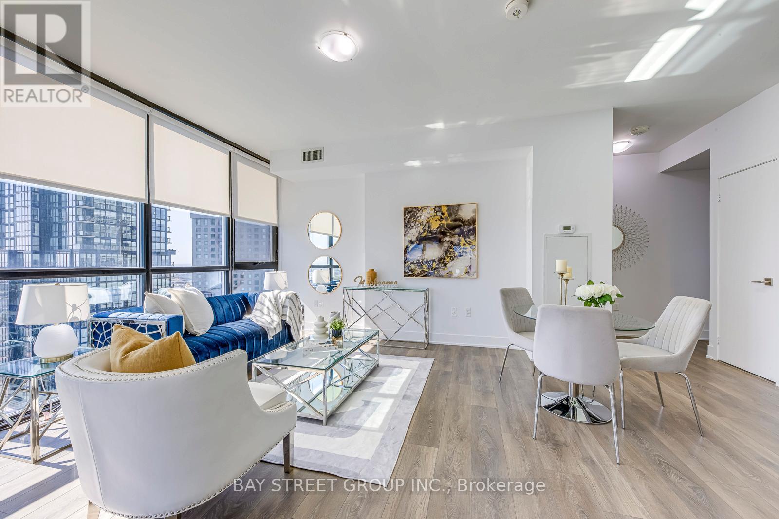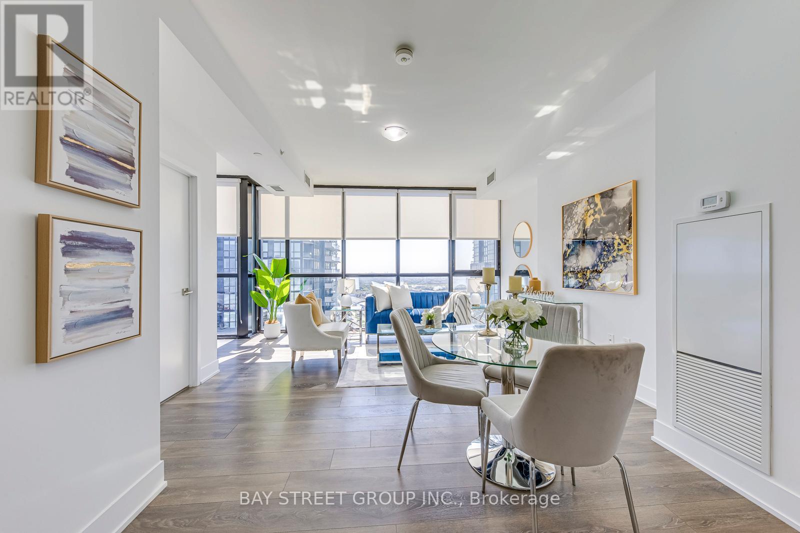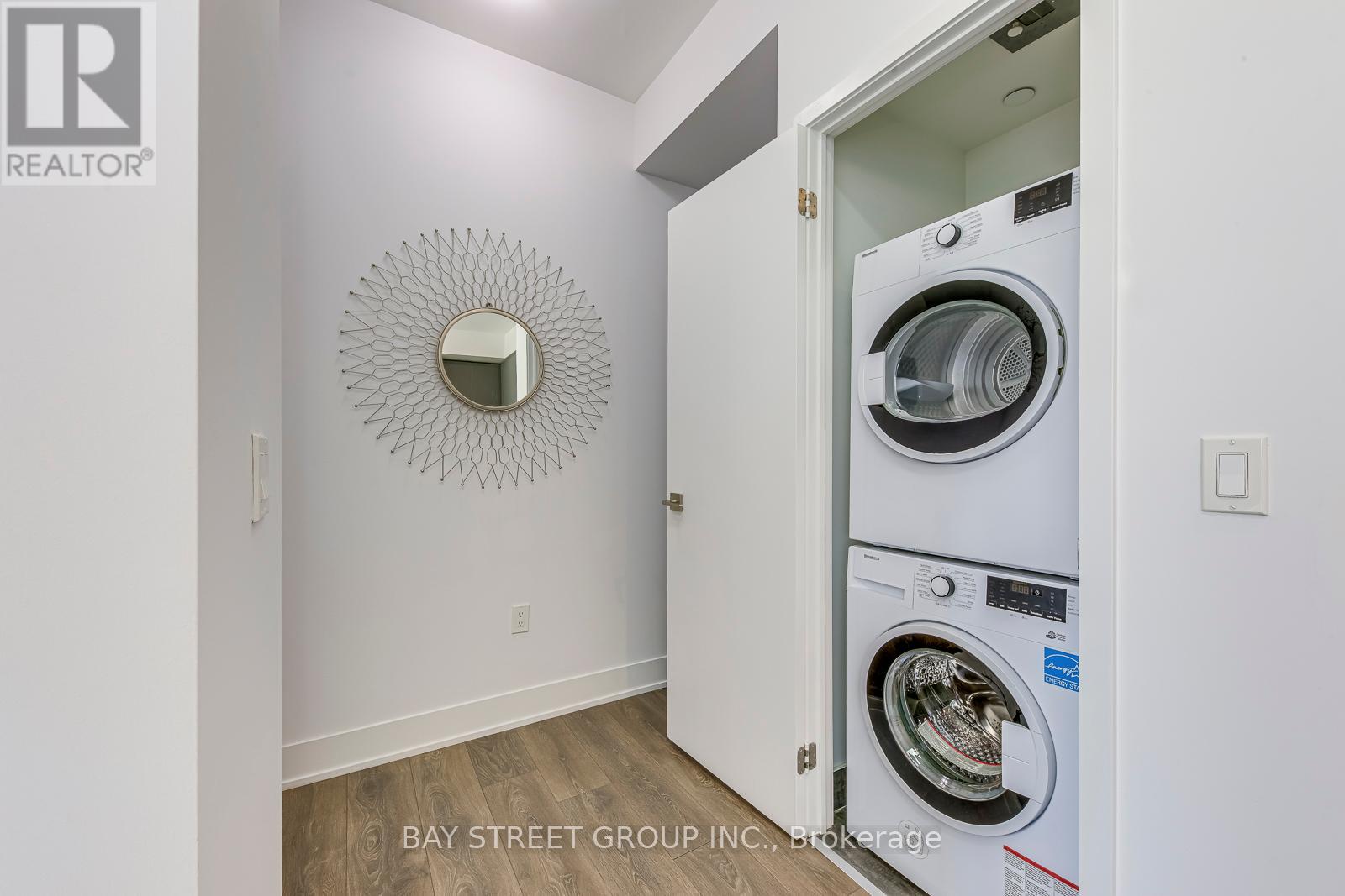 $699.32 MonthlyStunning corner suite featuring 2 spacious bedrooms plus a den and 2 full bathrooms in the heart of Vaughan Metropolitan Centre. This modern, sun-filled unit offers 851 sqft of functional open-concept living space with 9 ft ceilings and floor-to-ceiling windows showcasing unobstructed southeast views. Enjoy a large primary bedroom with a private ensuite, sleek laminate flooring throughout, and a bright combined living/dining area. Unbeatable location steps to subway, shops, restaurants, groceries, and minutes to Hwys 400 & 407, York University, and more. Premium amenities include an indoor pool, gym, party room, games/library room, movie theatre, concierge. (id:51158)