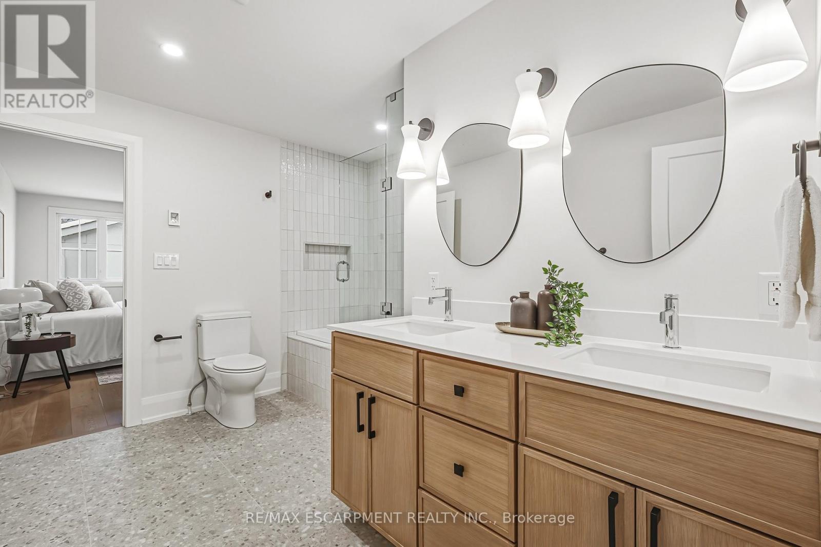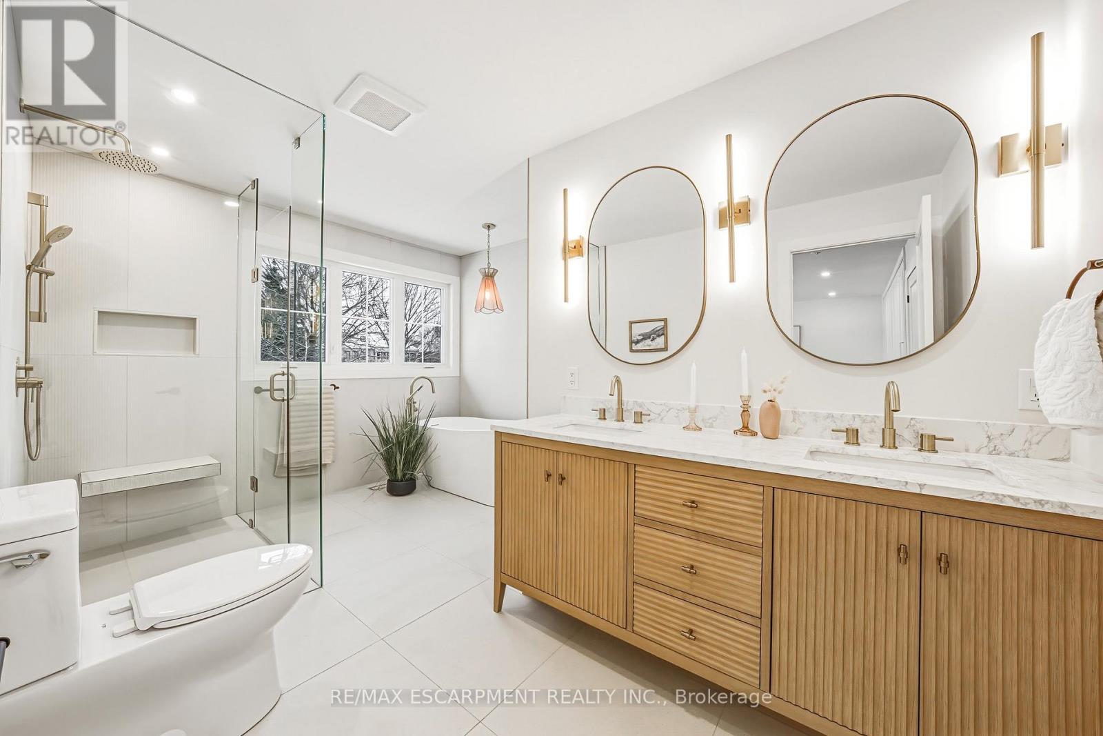 Spectacular, FULLY RENOVATED (2025/2026) 2 storey home in Shoreacres! Nestled on a 72-ft x 115-ft (pool sized) lot across the street from Glen Afton Park! This home has 5+1 bedrooms, 5.5 bathrooms & is an absolute dream home! The incredible floorplan boasts over 3500 square feet PLUS a finished lower level with in-law/nanny suite potential. The large foyer leads to the front office / den. There is also a spacious main floor bedroom with a 3-piece ensuite. The amazing great room has 13'5 vaulted ceilings with skylights, two separate doors to the private yard & consists of a stunning kitchen, dining area & a family room with a gas fireplace. The kitchen has custom cabinetry, gourmet appliances & a large oak island. The kitchen connects to the sprawling mudroom with a large pantry, garage access & custom cabinetry / bench. There is also a large main floor laundry room and 2-piece bath! The top level includes 4 large bedrooms & THREE full bathrooms. The primary bedroom has spa-like 5-piece ensuite & large custom built in closets. The finished lower level has a rec room with a wet bar, bedroom, 3-piece bath & rough in for laundry. The exterior has a 3-car driveway & a fenced private back / side yard with a stone patio, a covered 20 ft x 12ft cabana, custom stone Gas BBQ feature & plenty of space for a pool! New windows / doors, flooring, bathrooms, trim and doors, drywall, insulation, plumbing, electrical and landscaping! Heated tiles throughout & dual furnaces / AC's! (id:51158)