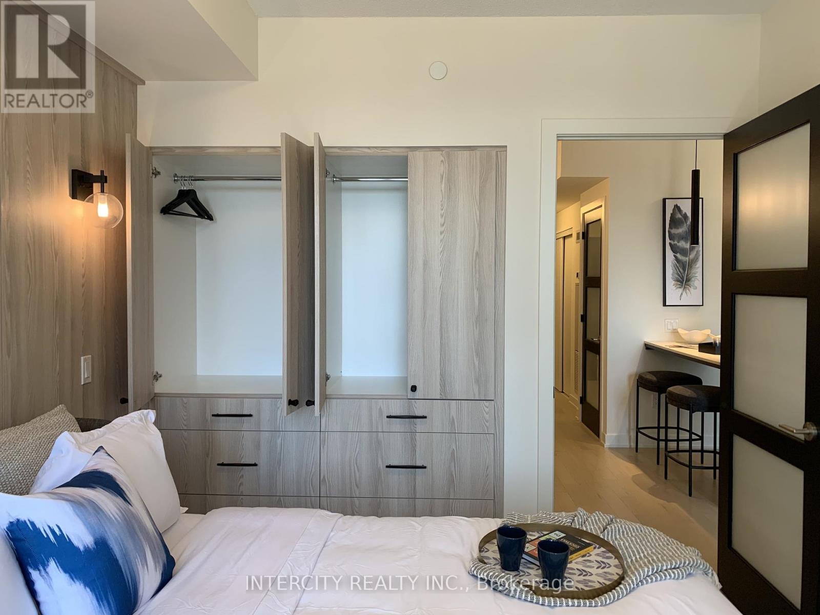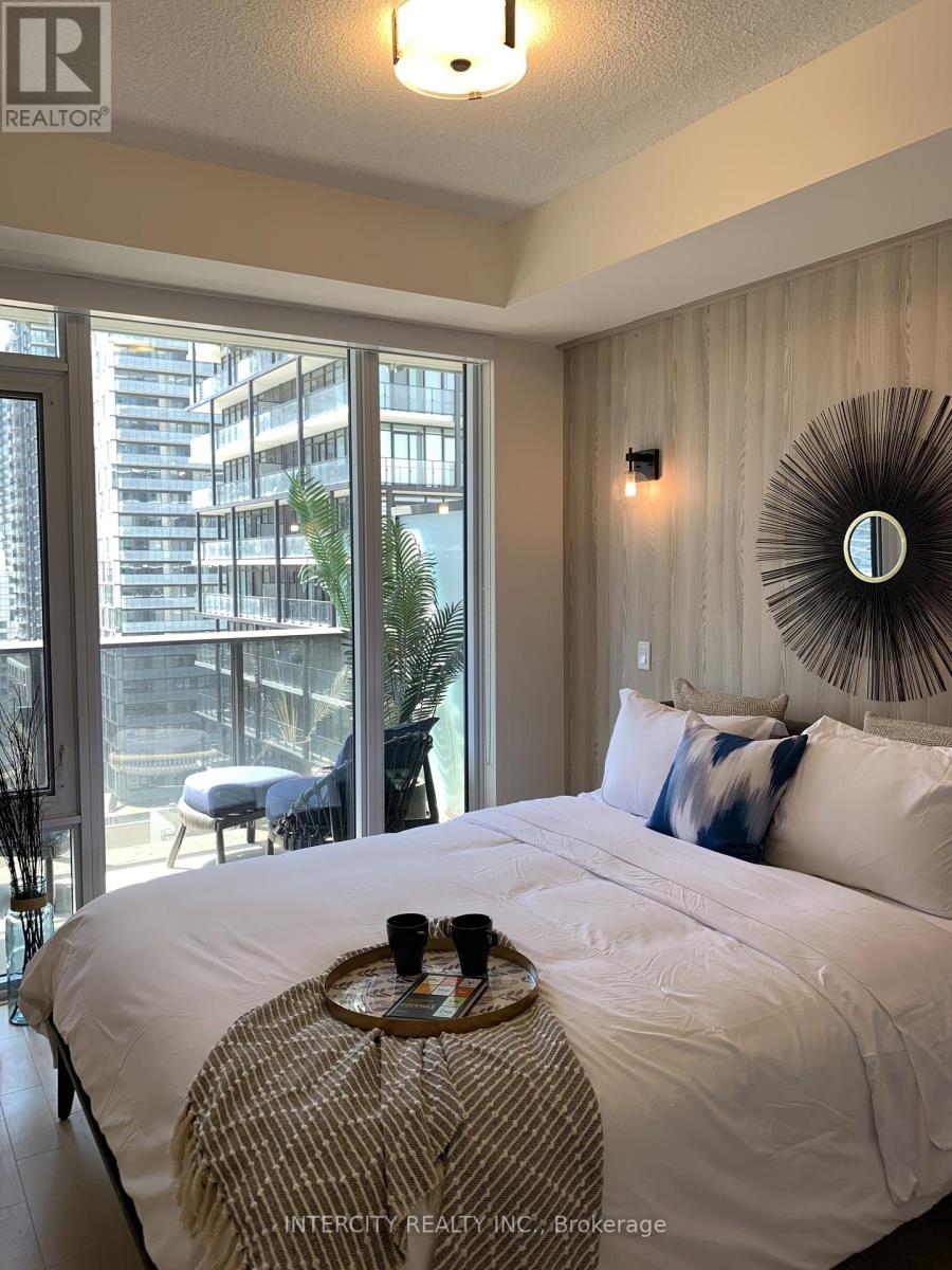 Located on the 25th floor in the heart of Toronto's Entertainment District, this fully professional furnished suite at 330 Richmond St. W offers exceptional style, flexibility, and convenience. Built by Greenpark Homes, an award-winning developer known for timeless craftsmanship, the residence blends modern luxury with thoughtful design. The open-concept living area is enhanced by a custom-installed glass wall, transforming the space into a bright, private second bedroom when needed ideal for guests or a home office. Floor-to-ceiling windows bathe the interior in natural light, while wide-plank hardwood floors and designer furnishings create a polished, move-in-ready home. The gourmet kitchen features sleek cabinetry, quartz countertops, and premium integrated appliances. A spacious den provides additional versatility, and the private balcony offers sweeping city views. Amenities include a rooftop pool and Sky Lounge with panoramic vistas, a fully equipped fitness and yoga studio, a media room, and 24-hour concierge service. Steps from theatres, fine dining, the Financial District, and transit, this residence delivers the ultimate downtown lifestyle luxurious, flexible, and impeccably located. Bell High Speed Internet Included. (id:51158)