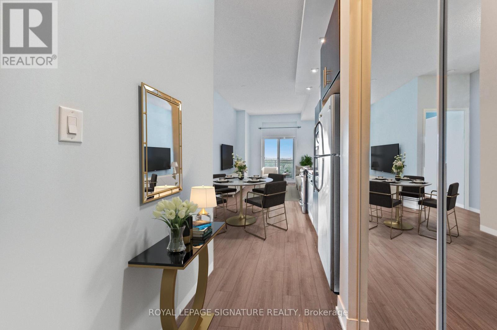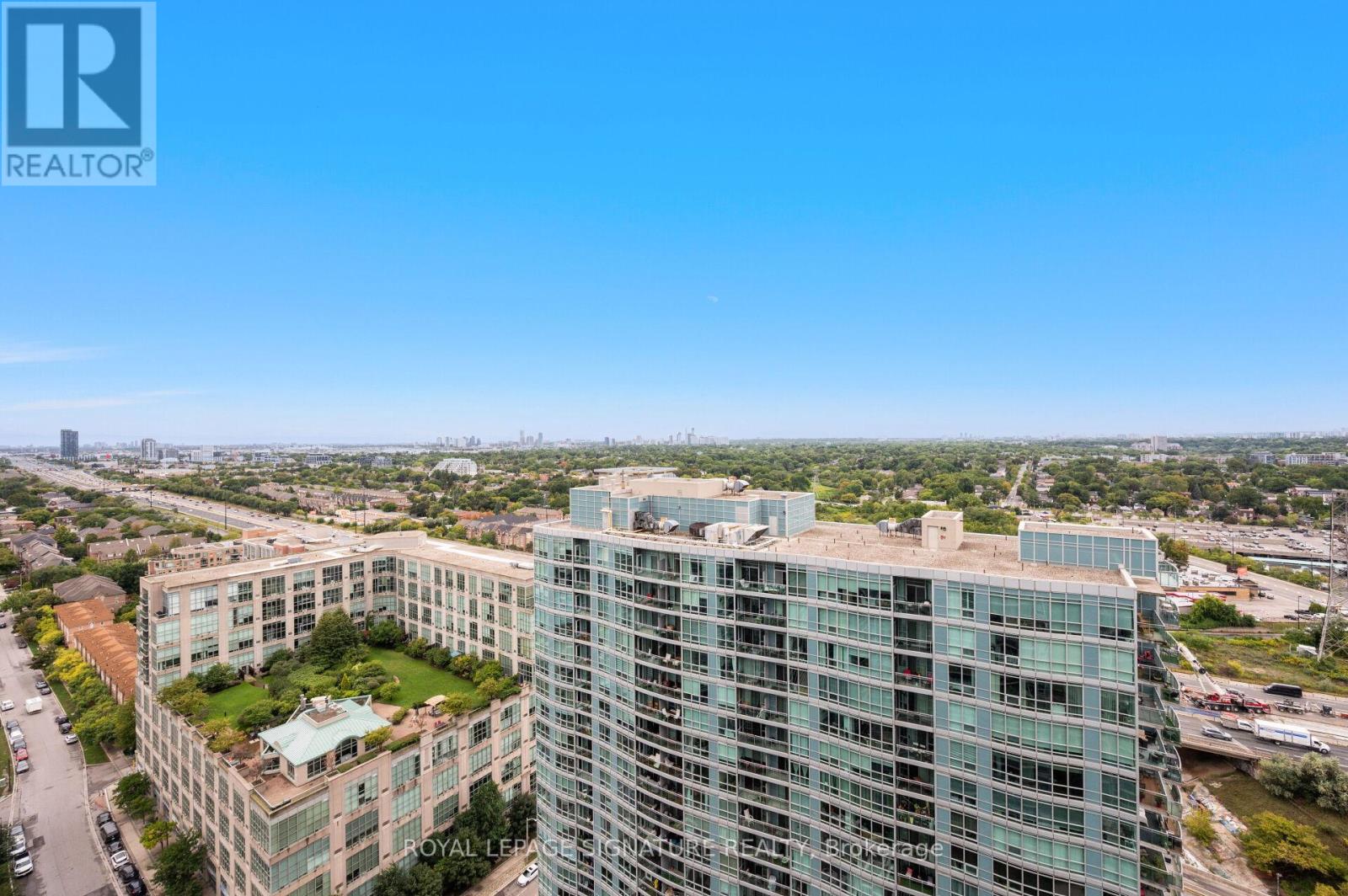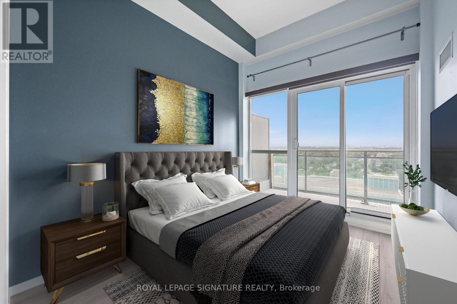 $630 MonthlyBright & Spacious Condo with 10 Ceilings in California Condos! Live in the heart of Humber Bay Shores/Mimico, where nature and city life meet. This stunning suite features a sun-filled living room with a walk-out to a large balcony offering breathtaking 180 unobstructed city views. The modern kitchen is equipped with stainless steel appliances, tall cabinetry, quartz countertops, and a stylish backsplash. Enjoy the versatile open-concept den-perfect for a home office or dining area. The large bedroom features a walk-in closet and access to a balcony. Enjoy world-class amenities, including a 24-hour concierge, fitness center, indoor pool, sauna, squash/racquet courts, party room, BBQ terrace & more. Unbeatable location for commuters--just a short walk to Mimico GO, TTC streetcar, and minutes to the Gardiner Expressway, offering easy access to downtown and the suburbs. Steps to Humber Bay Park, waterfront trails, marinas, restaurants, schools, Humber College, St. Josephs Hospital, community centers & more. (id:51158)