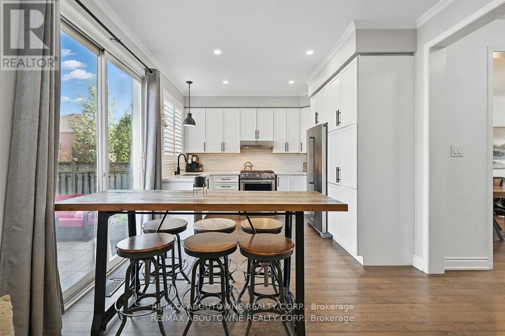Gorgeous upgraded 4+1 bedroom detached home on a quiet street, with more than 2500 sf of total living space. Featuring a welcoming front porch, 9-foot ceilings, an elegant upgraded staircase, and abundant natural light, this home is designed with family living in mind. The renovated kitchen will impress with its quartz countertops, marble backsplash, stainless steel KitchenAid appliances, and generous pantry space, ideal for busy family meals. California shutters, crown mouldings, pot lights, and rich hardwood flooring add warmth and charm throughout the main living area. Upstairs, the primary suite offers a peaceful retreat with a walk-in closet and ensuite bathroom complete with a soaker tub and walk-in shower. Three additional spacious bedrooms and a full main bath provide plenty of room for growing families. The finished basement extends your living space with a fifth bedroom, a full bathroom with in-floor heating, and a comfortable recreation area perfect for teens, in-laws, or a home office setup. Parking for three vehicles with an attached single-car garage and two driveway spaces. Other key updates include: furnace (2021), A/C (2018), and roof (2018). Walk to school, parks, trails, and all the family-friendly amenities Oakville is known for. Don't miss it! (id:51158)