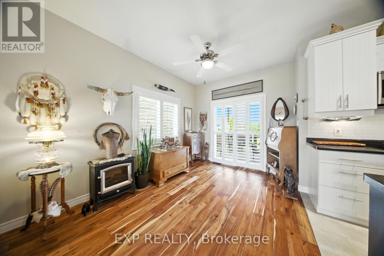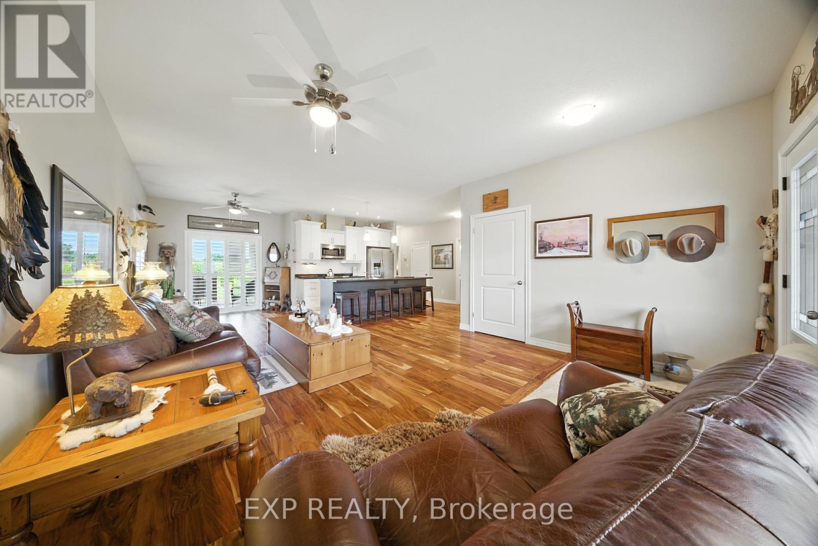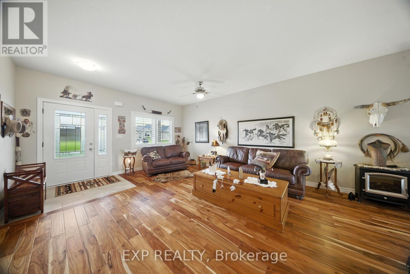 ***Motivated Seller*** Experience luxury living in the sought-after Woodway Trails community of Simcoe with this beautifully maintained home showcasing upgrades and thoughtful details throughout. The open-concept layout highlights rich hardwood floors, and a coffered ceiling in the great room, while the expansive primary suite offers an oversized walk-in closet and a spa-inspired ensuite with an extra-large shower. Both bathrooms are finished with upgraded fixtures, and the kitchen is designed for style and function with abundant storage, a spacious island, tile backsplash, and designer finishes that make it ideal for everyday living or entertaining. Curb appeal begins with a textured brown metal roof installed in 2021, a porcelain tile front porch, storm door, powered shed, and a TV antenna with signal boost, while the double paved driveway, landscaped evergreens and annuals, and rear deck with durable metal skirting add charm and practicality. The oversized double garage includes 6-inch insulation above, a heavy-duty opener with keypad entry, and inside access for convenience. Inside, 9-foot textured ceilings, hardwood and ceramic flooring, California shutters, ceiling fans, and abundant natural light create a warm and welcoming atmosphere. The professionally finished basement extends your living space with a California ceiling (except laundry), extra-large windows with blinds, a full 4-piece bathroom with closet, and a storage area. A true highlight is the 14-foot stainless steel wet bar with lighting, bar refrigerator, and ceramic flooring, creating a perfect space for entertaining. Added peace of mind comes with a sump pump, sewer back-up valve, owned hot water tank, laundry room with cabinets, and ceramic finishes throughout. Ideally located near schools, parks, trails, and amenities, this home blends style, comfort, and function in a move-in-ready property perfect for buyers seeking quality and modern living. (id:51158)