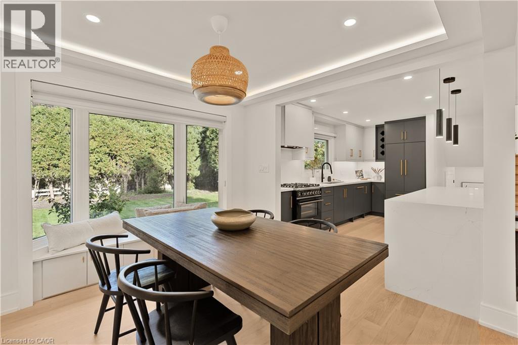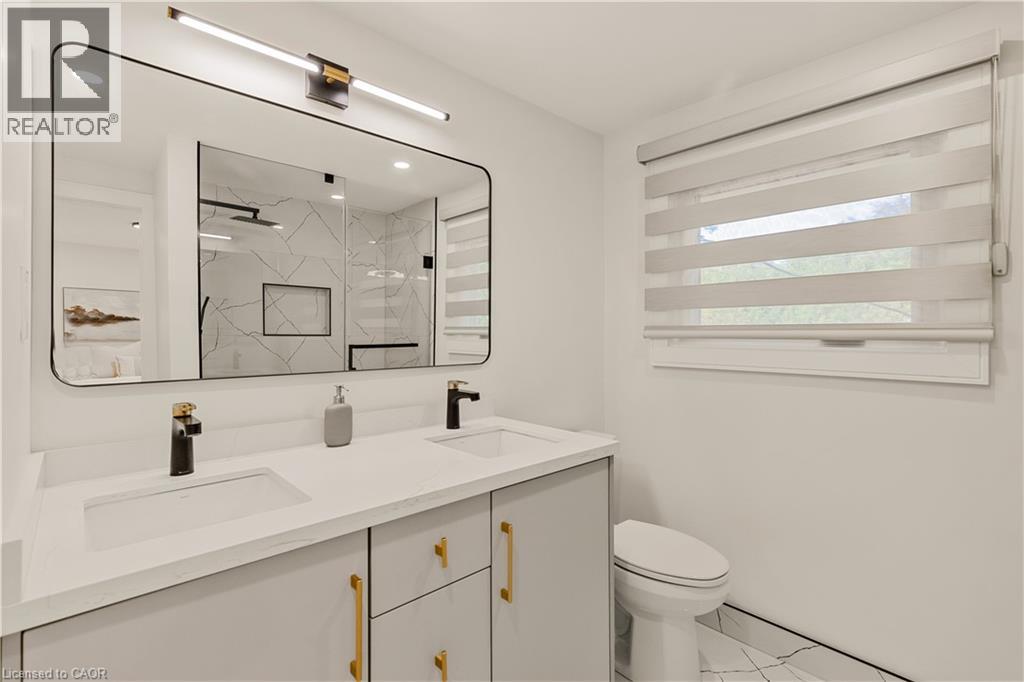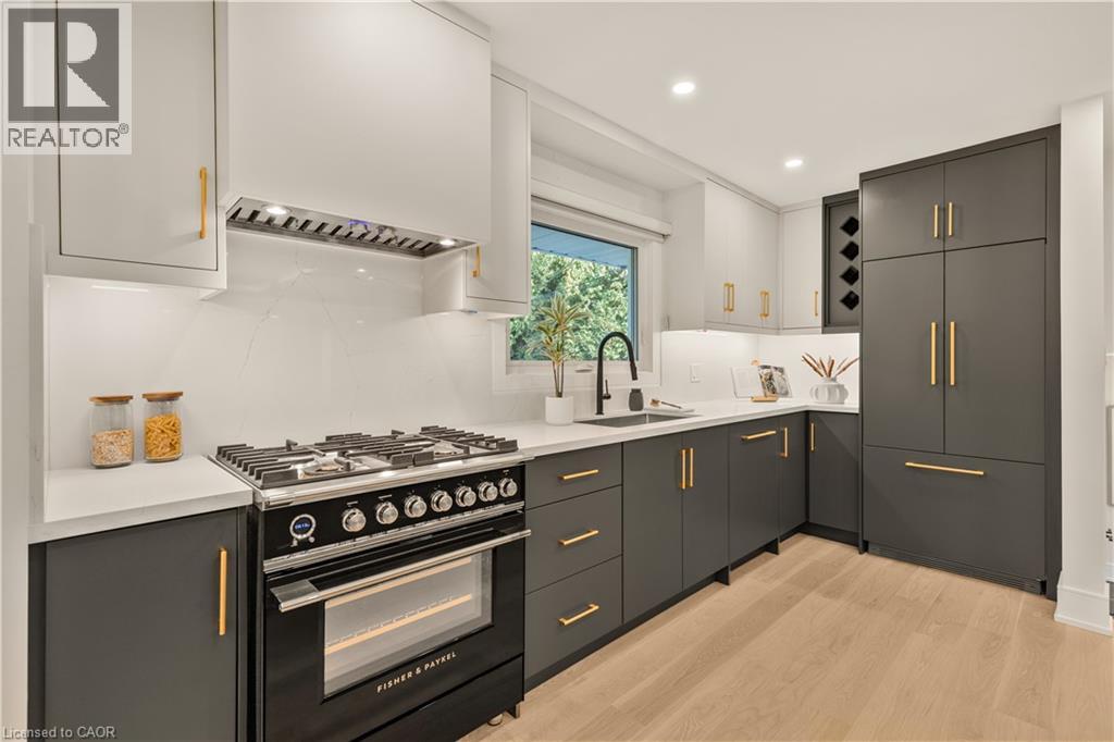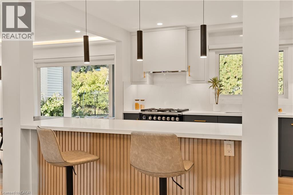 Welcome to this updated family home in the heart of Shoreacres - one of South Burlingtons most sought-after neighbourhoods, known for its top-rated schools, parks, and strong community feel. Updated in 2024, this home has been transformed with custom finishes throughout. The open-concept main floor is greeted by a functional entrance with custom built-ins that lead into the living room, dining area, and kitchen. The kitchen features panelled Fisher & Paykel appliances, a waterfall quartz island with seating, and sleek cabinetry offering ample counter and storage space. Upstairs, you'll find three spacious bedrooms , two with their own private ensuites. The lower levels extend your living space with two family/rec rooms, wet bar area, and in-wall wiring ready for a home theatre setup - ideal for movie nights or a teen hangout space. This level also includes a fourth bedroom with a 4-piece ensuite. Updates include engineered hardwood floors, fluted feature walls, built-in fireplace, custom and motorized blinds, and integrated wall lighting, newer windows throughout, refreshed landscaping, garage door (2025), & owned hot water heater. Just steps to the lake, this is an opportunity to move into a turnkey, designer-finished home in a true family-friendly neighbourhood. (id:51158)