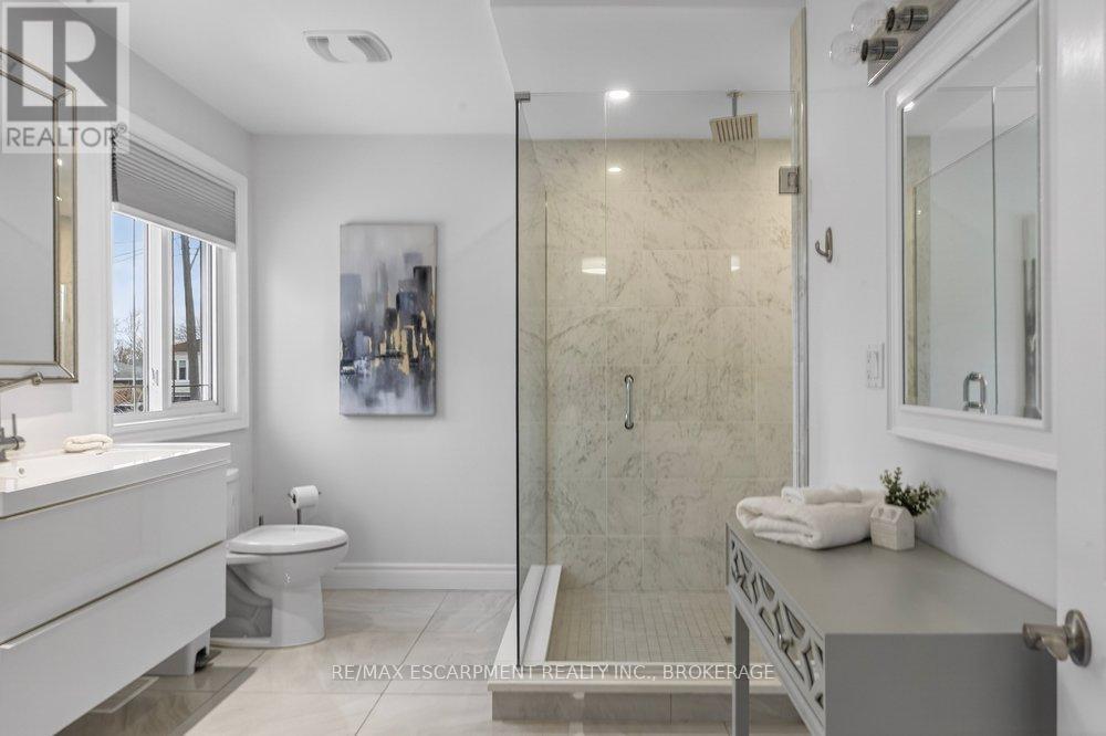 Beautifully renovated and truly oversized at 1,440 sq ft, this turn-key bungalow stands out from the rest. A rare opportunity for first-time buyers, upsizers, downsizersr growing families, multi-generational living, or those simply wanting more space on one level. The exceptional primary retreat feels like a private escape, complete with an oversized walk-in closet and a spa-inspired ensuite featuring double sinks, a dedicated vanity area, and a large walk-in shower. The chef's kitchen is designed for both everyday living and entertaining, showcasing high-end appliances including double ovens and a Bosch dishwasher (2025), with ample prep and storage space. A separate side entrance leads to the partially finished basement, offering immediate flexibility for guests, a home office, gym, or in-law setup, with future income potential. The basement was partially renovated in 2022, adding even more functionality. Major updates provide peace of mind: most electrical, plumbing and heating (2016), new A/C (2022), added attic insulation (2022), premium deck (2023), new asphalt driveway (2024), EV Charger (2025), Smart Thermostat (2025), partial waterproofing and new backyard fencing. Situated on a large, mature lot in a quiet West Mountain neighbourhood close to top-rated schools, parks, escarpment stairs, Westcliffe Falls, Mohawk College, shopping, transit, and quick Linc and 403 access. A rare opportunity for first-time buyers, upsizers, downsizers, or investors seeking flexibility, long-term value, and the luxury of high-end bungalow living in one of Hamilton's most sought-after neighbourhoods. (id:51158)