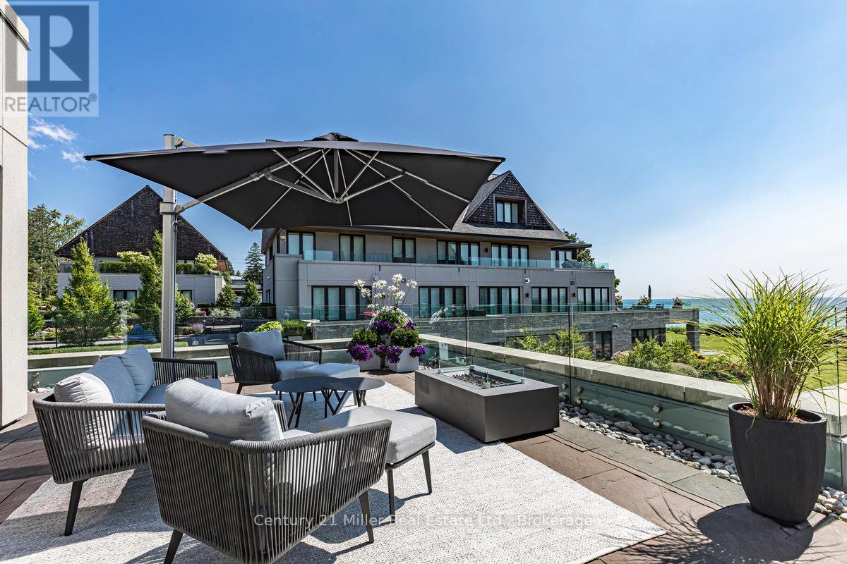 Elegant Lakeside Living in Oakville's Most Exclusive Community. An exquisite luxury residence nestled in one of Oakville's most prestigious enclaves just steps from the lake. This rare offering presents sophisticated single-level living in a boutique community, where timeless architecture meets contemporary comfort. Spanning over 3,000 square feet, this 2-bedroom, 2.5-bath suite offers refined elegance and privacy, featuring soaring ceilings, wide-plank hardwood floors, and oversized windows that flood the space with natural light. The open-concept layout is designed for upscale entertaining and easy everyday living. The gourmet kitchen is a chefs dream, appointed with premium appliances, quartz countertops, custom cabinetry, and a generous island that anchors the heart of the home. The dining and living areas flow seamlessly, complete with a gas fireplace, elegant millwork, and a walkout to a private 1,300+ square foot terrace perfect for morning coffee or evening cocktails. Retreat to the spacious primary suite, showcasing his and her closets as well as a large walk-in closet and a lavish 5-piece ensuite with double vanities, a soaker tub, and a glass-enclosed shower. A well-appointed second bedroom with its own ensuite provides comfort for guests or family. Enjoy direct elevator access to your private vestibule, leading to a two-car garage and dedicated storage room, a rare convenience that enhances the ease of condominium living. This exclusive lakeside community offers a tranquil lifestyle just minutes from downtown Oakville, the marina, waterfront trails, fine dining, and world-class amenities. A refined opportunity for the discerning buyer seeking turnkey luxury in South East Oakville. (id:51158)