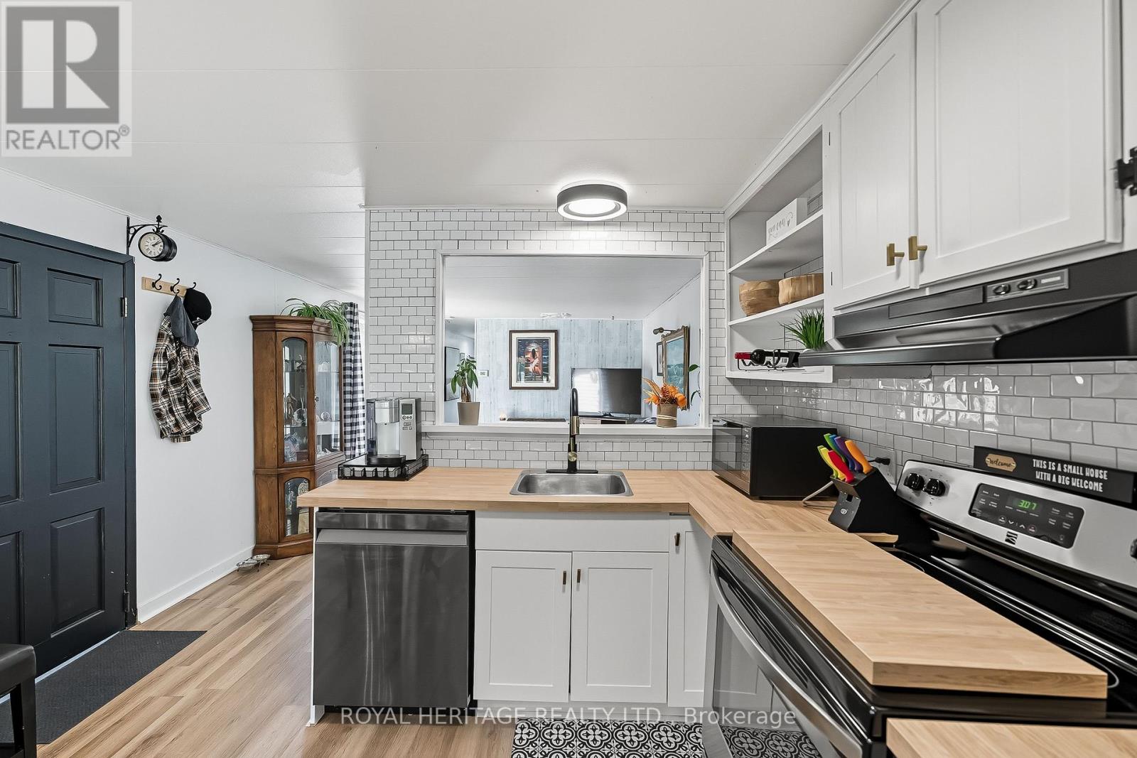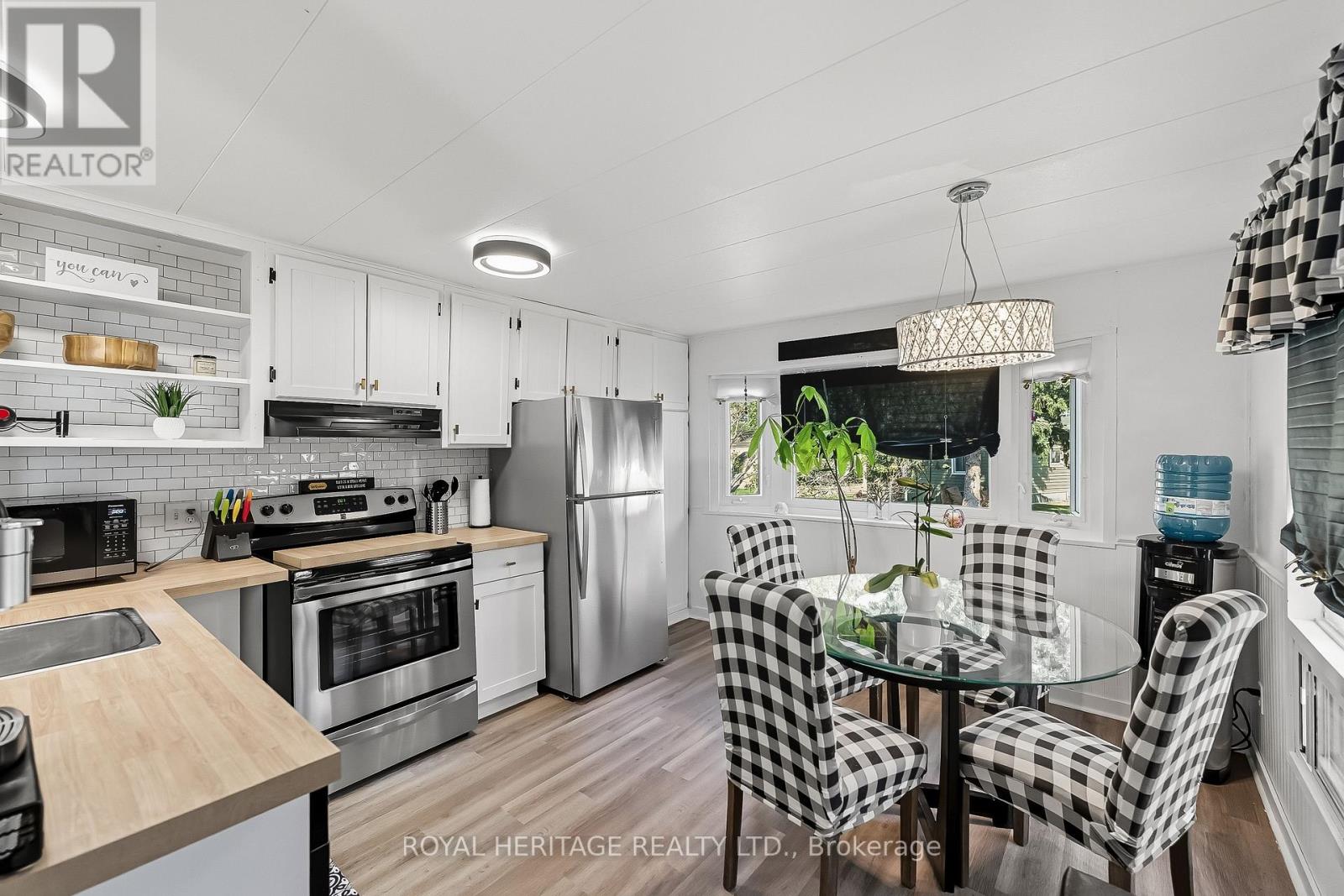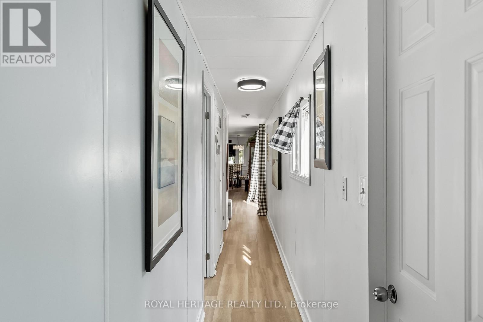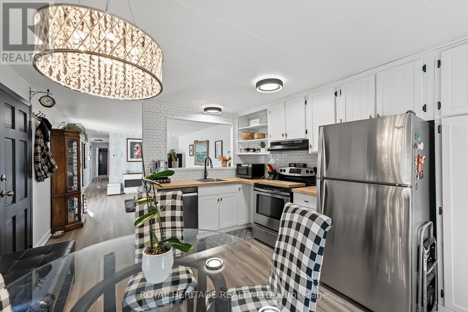 This four-season modular home presents an excellent opportunity for first-time buyers, downsizers, or anyone looking to enter the market at an attractive price point. Offered below market value, this property is ideal for buyers who want to update a home to their own taste and benefit from the added equity that comes with improvements.The home features several desirable updates, including a 2019 gas furnace, central air conditioning, and a bright, refreshed kitchen with painted cabinetry, new countertops, and a stylish backsplash. A charming bay window fills the living area with natural light, creating a warm and welcoming atmosphere. Additional conveniences include in-suite laundry, two garden sheds, and a private deck space to enjoy or reimagine. Set on one of the larger lots in the park, the property offers added outdoor space and privacy. Its location provides quick access to Highway 401 and is just minutes from Cobourg and Port Hope, placing shopping, dining, and recreation close at hand while maintaining the peace of community living. For buyers willing to bring their vision to life, this property offers exceptional potential to update, personalize, and increase long-term value. Monthly Land Lease Fees: $719.88 (Includes lease, taxes, and water monitoring).Financing available through RBC. (id:51158)