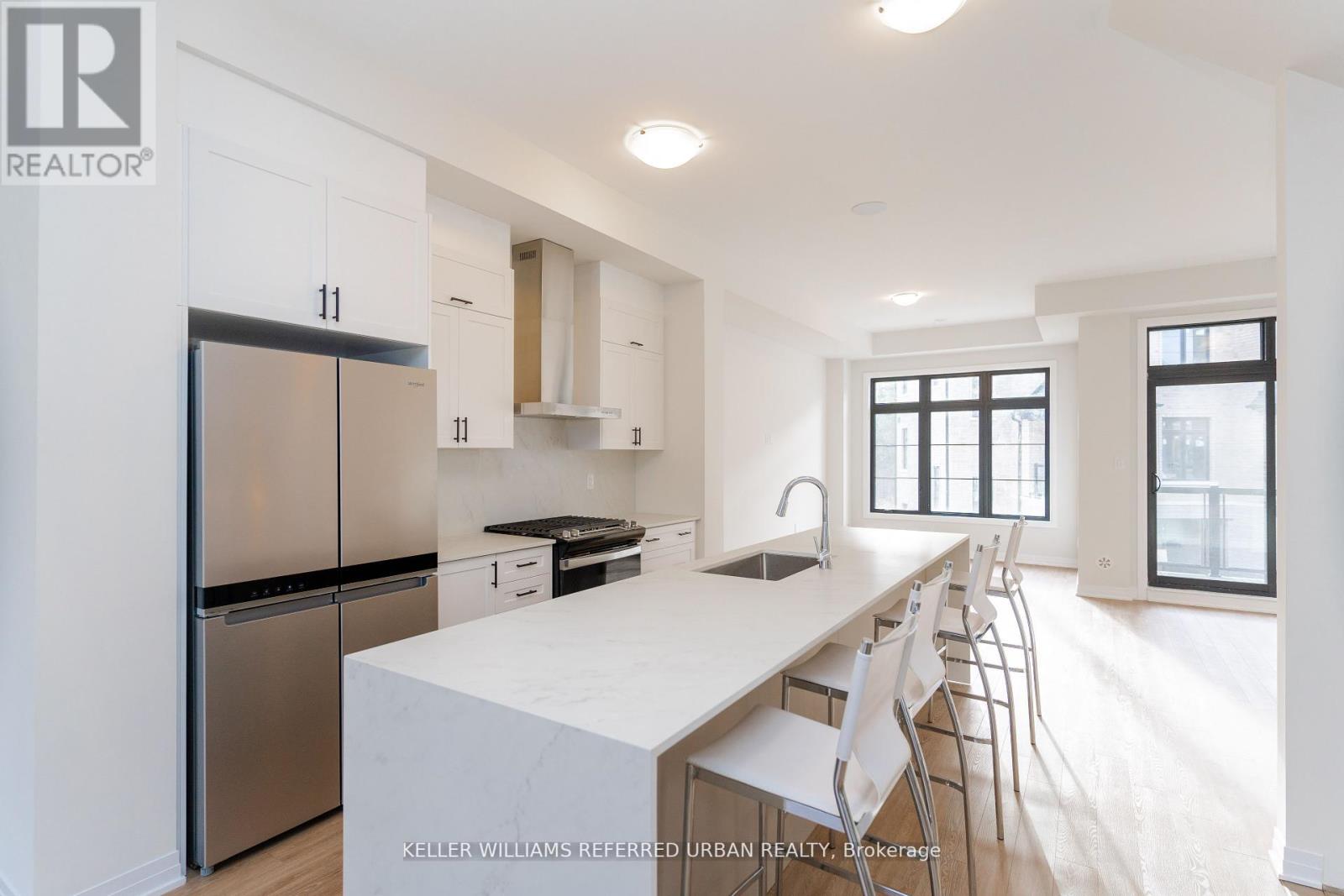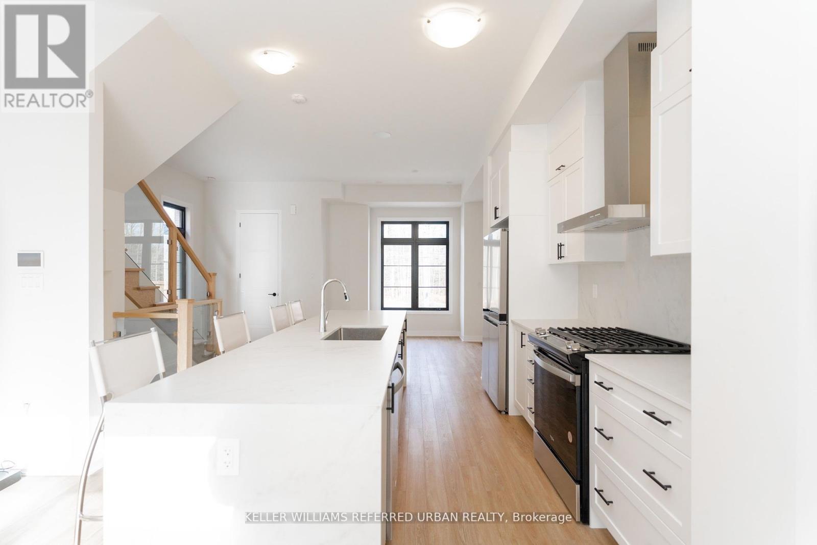Luxury Townhome in Prestigious Vellore Woods! This stunning 3+1 bedroom, 4-bathroom townhome offers approximately 2,000 sq. ft. of thoughtfully designed living space, perfect for modern family living and entertaining. Enjoy the convenience of a double car garage and the elegance of upgraded glass railings that enhance the homes contemporary appeal. The ground level features a bright and versatile den or home office with large windows, a private powder room, and a closet-ideal for guests or multigenerational living. You'll also find a full laundry room with a utility sink and double closet, plus direct garage access. Upstairs, the open-concept main floor impresses with a chef-inspired kitchen boasting an oversized island, breakfast bar, and stainless steel appliances. The spacious dining area flows seamlessly into the living room, which walks out to a private balcony perfect for outdoor relaxation. Retreat to the luxurious primary suite with a walk-in closet and a spa-like 5-piece ensuite. **EXTRAS** All utilities are included except cable/internet. (id:51158)