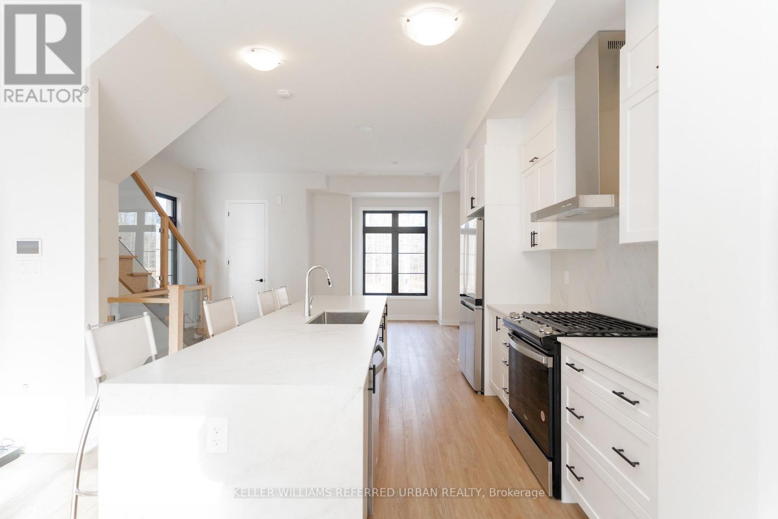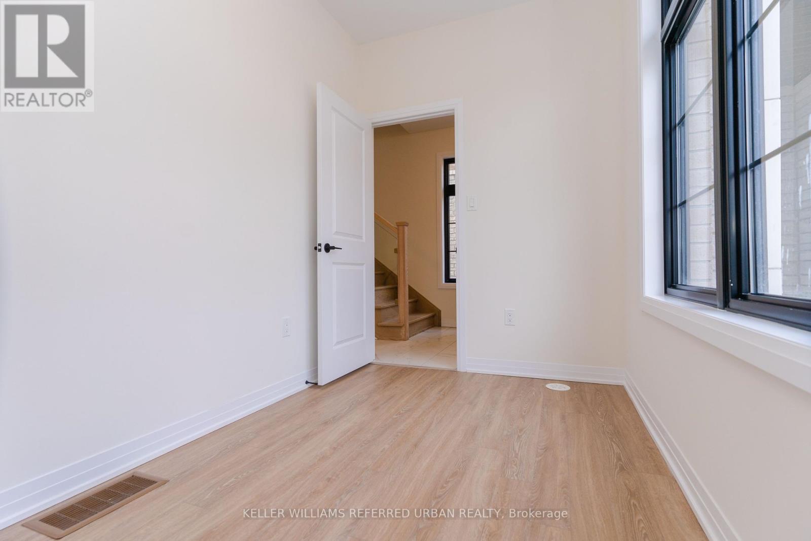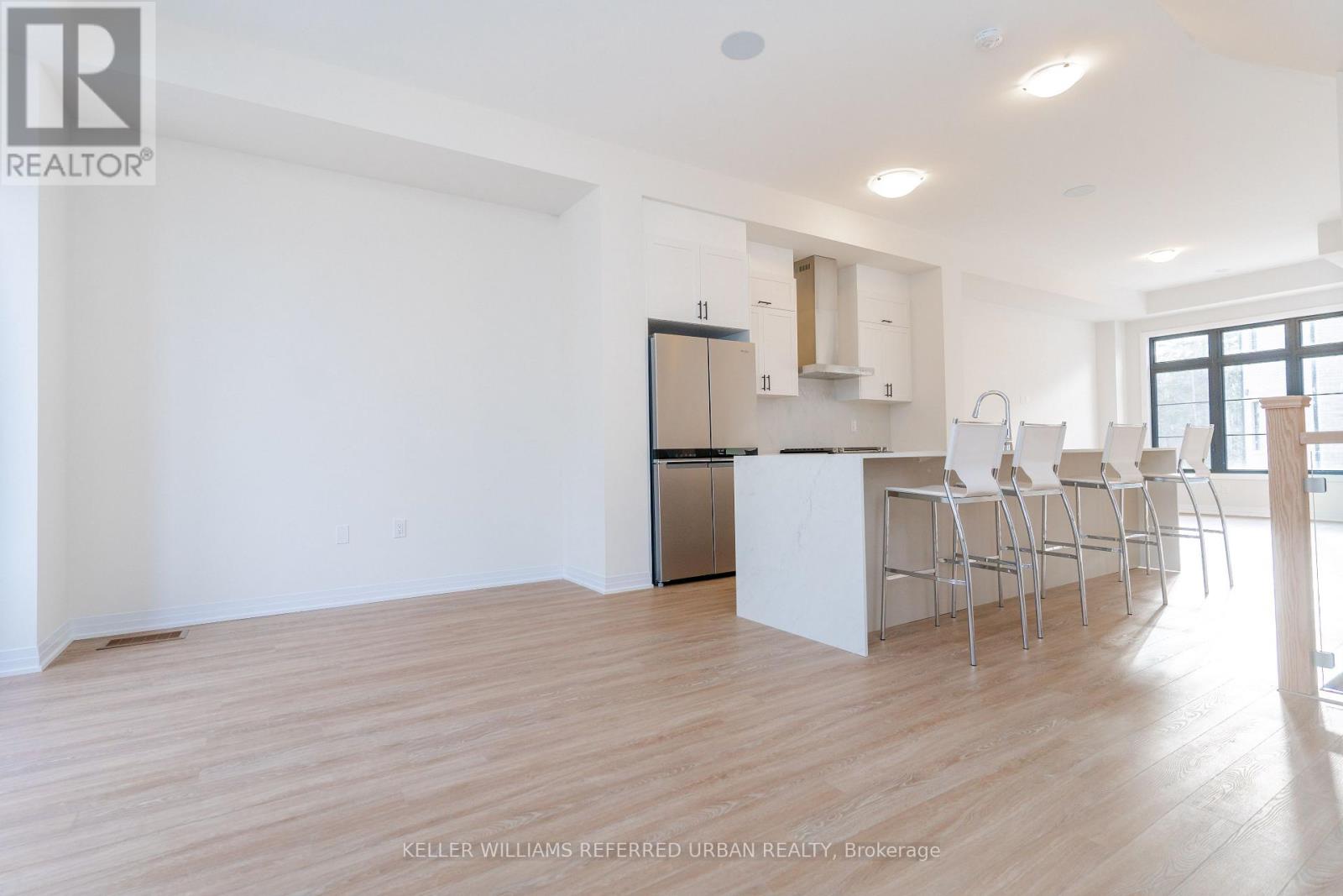 Luxury Townhome in Prestigious Vellore Woods! This stunning 3+1 bedroom, 4-bathroom townhome offers approximately 2,000 sq. ft. of thoughtfully designed living space, perfect for modern family living and entertaining. Enjoy the convenience of a double car garage and the elegance of upgraded glass railings that enhance the homes contemporary appeal. The ground level features a bright and versatile den or home office with large windows, a private powder room, and a closet-ideal for guests or multigenerational living. Youll also find a full laundry room with a utility sink and double closet, plus direct garage access. Upstairs, the open-concept main floor impresses with a chef-inspired kitchen boasting an oversized island, breakfast bar, and stainless steel appliances. The spacious dining area flows seamlessly into the living room, which walks out to a private balcony perfect for outdoor relaxation. Retreat to the luxurious primary suite with a walk-in closet and a spa-like 5-piece ensuite. Two additional bedrooms and well-appointed baths complete the upper level.Located in the highly sought-after Vellore Woods community, surrounded by lush green spaces and scenic trails. Minutes from Vaughan Mills Shopping Centre, fine dining, top-rated schools, and with quick access to Hwy 400. Unfinished basement offers excellent storage and future customization potential. (id:51158)