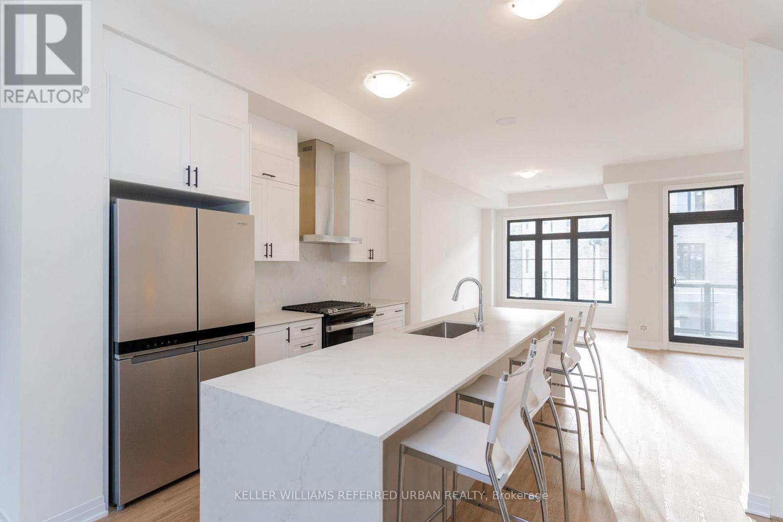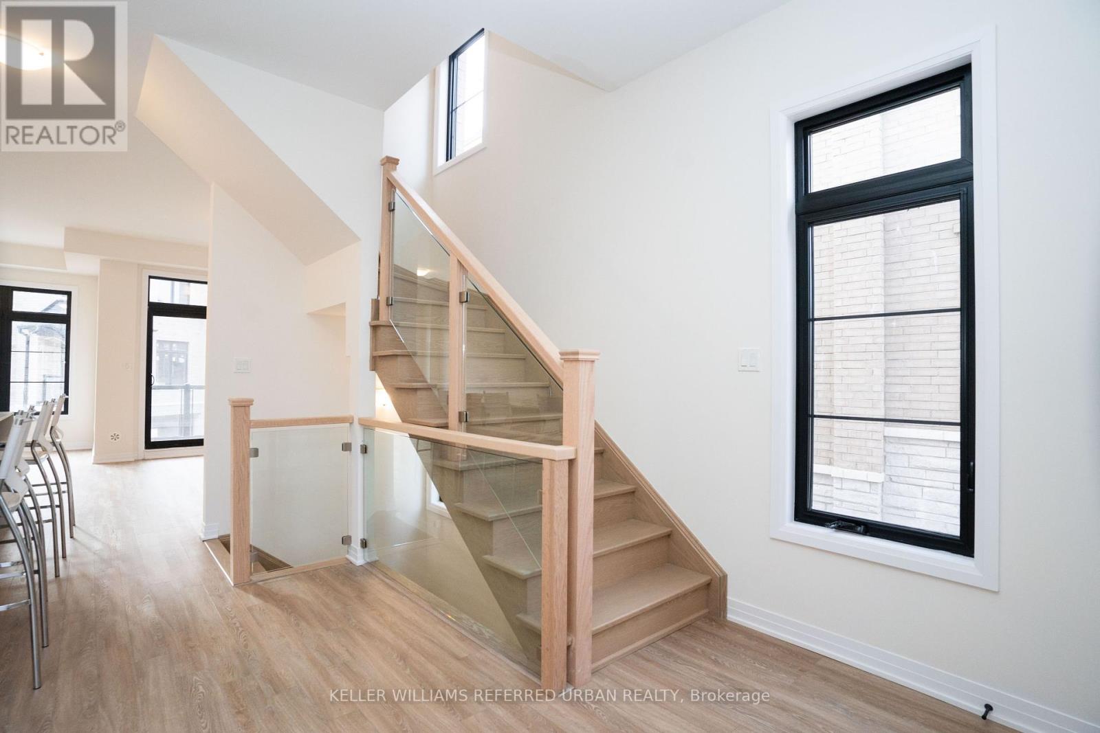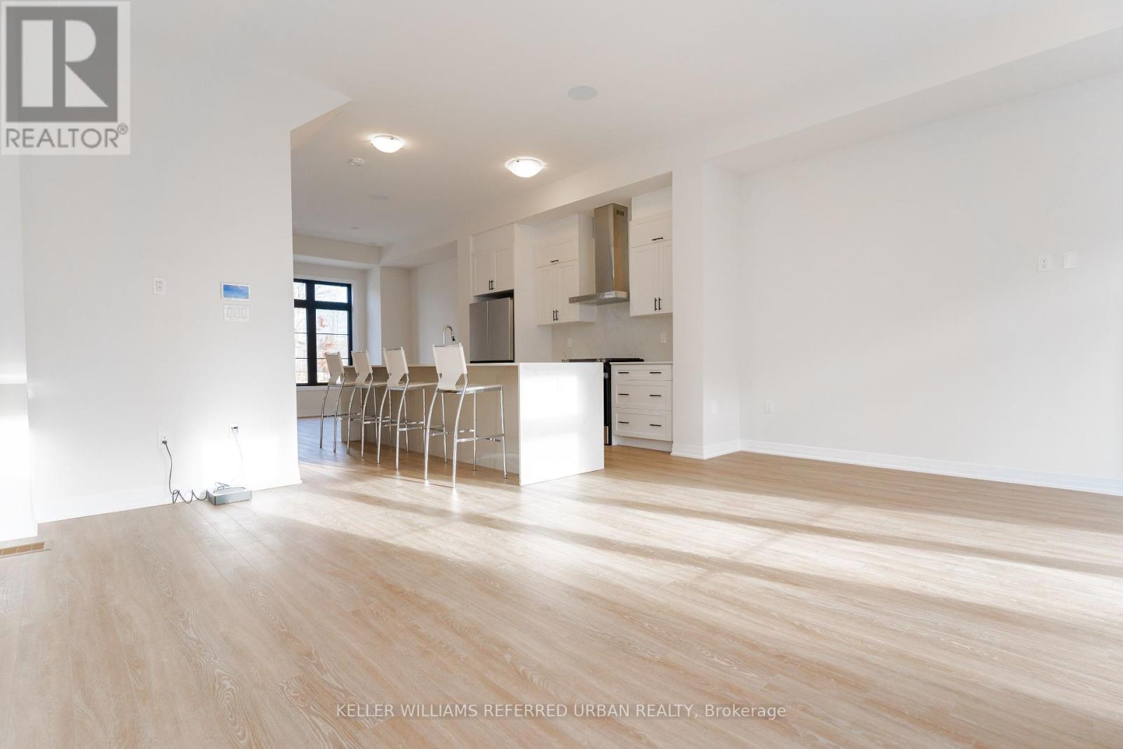 Luxury Townhome in Prestigious Vellore Woods! This stunning 3+1 bedroom, 4-bathroom townhome offers approximately 2,000 sq. ft. of thoughtfully designed living space, perfect for modern family living and entertaining. Enjoy the convenience of a double car garage and the elegance of upgraded glass railings that enhance the homes contemporary appeal. The ground level features a bright and versatile den or home office with large windows, a private powder room, and a closet-ideal for guests or multigenerational living. Youll also find a full laundry room with a utility sink and double closet, plus direct garage access. Upstairs, the open-concept main floor impresses with a chef-inspired kitchen boasting an oversized island, breakfast bar, and stainless steel appliances. The spacious dining area flows seamlessly into the living room, which walks out to a private balcony perfect for outdoor relaxation. Retreat to the luxurious primary suite with a walk-in closet and a spa-like 5-piece ensuite. Two additional bedrooms and well-appointed baths complete the upper level.Located in the highly sought-after Vellore Woods community, surrounded by lush green spaces and scenic trails. Minutes from Vaughan Mills Shopping Centre, fine dining, top-rated schools, and with quick access to Hwy 400. Unfinished basement offers excellent storage and future customization potential. (id:51158)