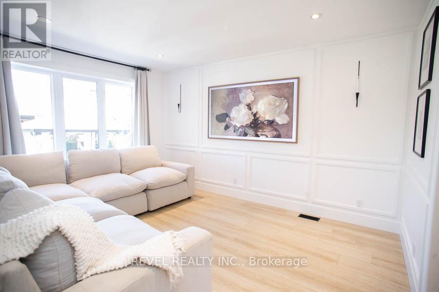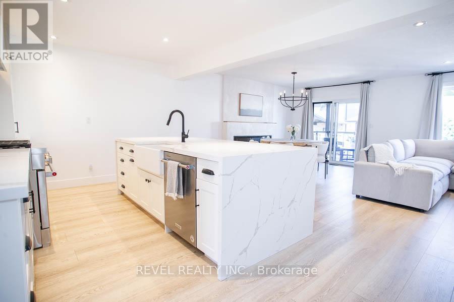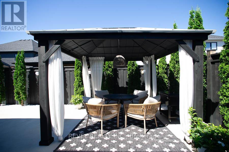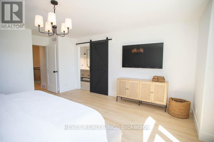 Stunning home in the heart of Waterford - one of Norfolk County's most sought-after communities.This beautifully designed, nearly 2,000 sq ft home offers 3 bedrooms, 2.5 bathrooms, a double garage, and a modern backyard oasis with covered porch. Thoughtfully curated materials and upgrades throughout give this home the feel of a custom build, with style and continuity in every detail. Striking curb appeal is enhanced by professional landscaping, concrete walkways, and steps that wrap elegantly around the home. Inside, a grand foyer welcomes you with wide-plank LVP flooring, wainscoting, and a dramatic hardwood staircase with sconce lighting.The mudroom/laundry space is both functional and stylish, with ample built-in cabinetry, quartz counters, and bench seating - leading to a designer powder room with floating vanity, vessel sinks and honeycomb tile that can be found in all bathrooms. The open-concept main living area is perfect for both everyday life and entertaining. The kitchen features modern white cabinetry, quartz countertops, a massive 9.5 x 4.5 island, open shelving, and two pantries.The adjoining dining and living areas flow seamlessly, highlighted by a sleek concrete fireplace. Patio doors open to a composite covered porch with glass railing, overlooking a beautifully designed backyard with seating area, gazebo, and elegant lighting. Upstairs, the primary suite includes a barn-door walk-in closet and spa-inspired ensuite with soaker tub, glass shower, and quartz vanity. Two additional spacious bedrooms, a designer full bathroom, and a cozy office area with barn doors complete the upper level. This home is a rare blend of luxury, function, and style ready to welcome its next family. (id:51158)