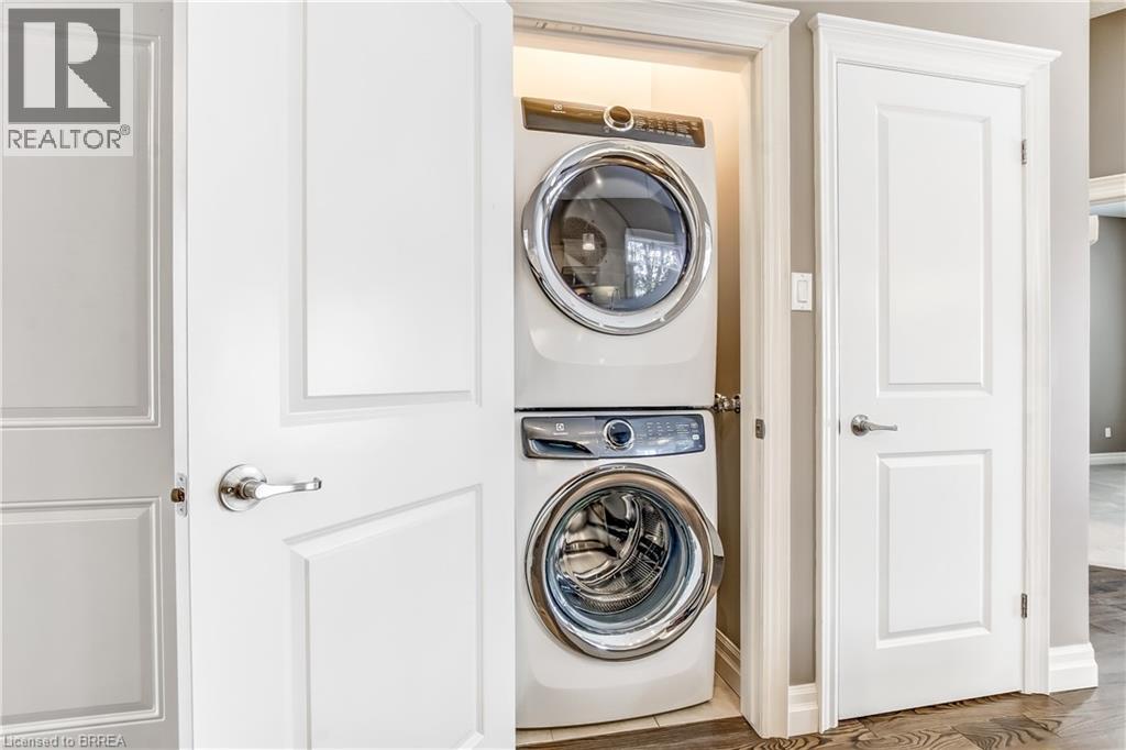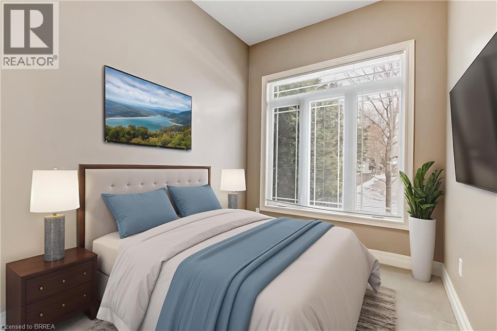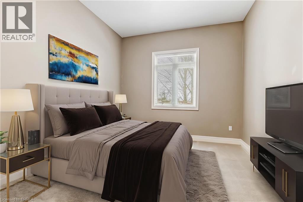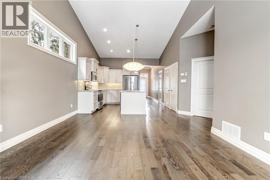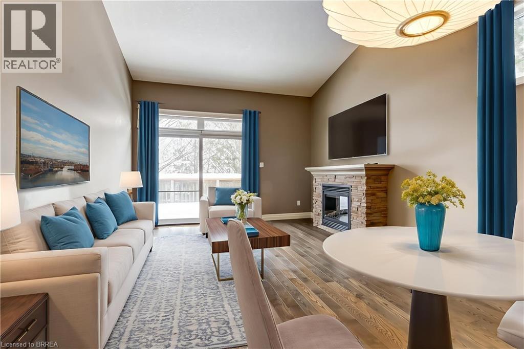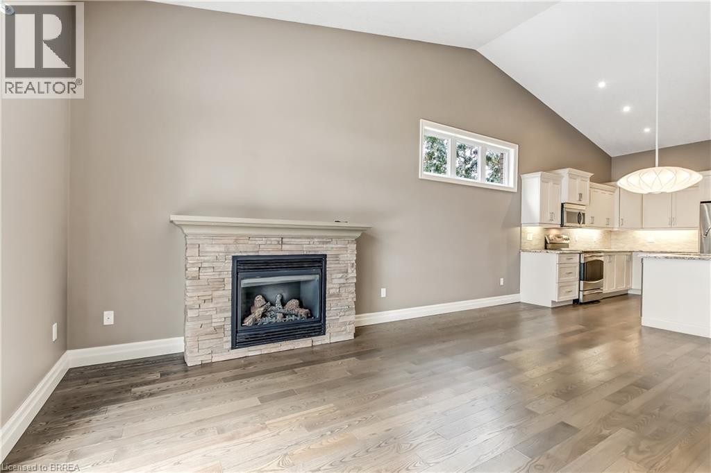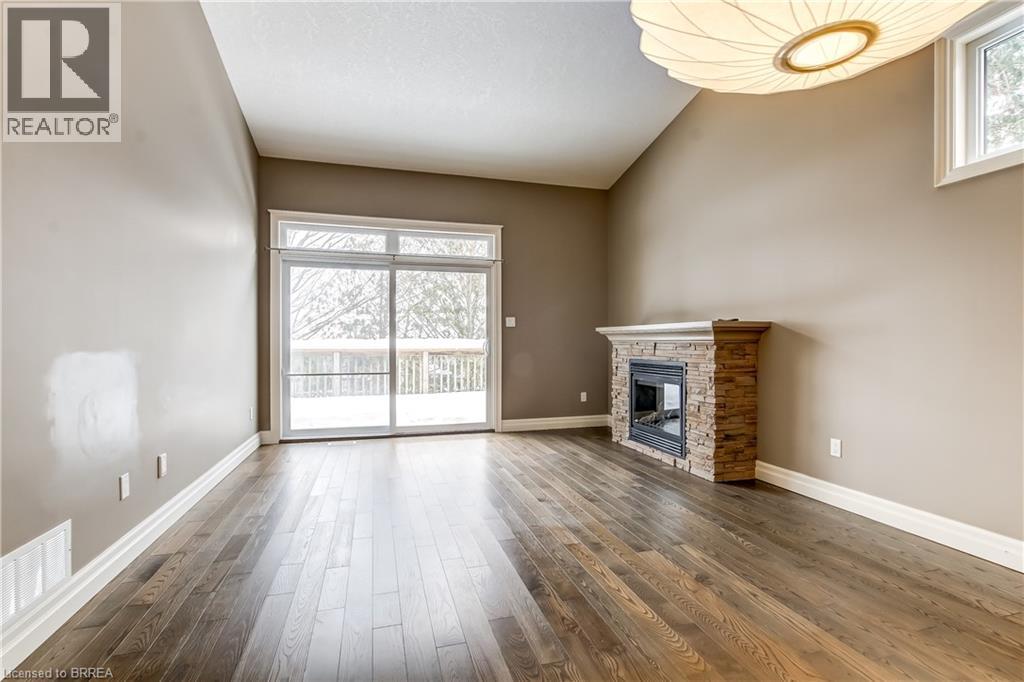 $575 MonthlyWelcome to an exclusive enclave of bungalow townhome condominiums in the highly desirable village of St. George. Enjoy a perfect balance of convenience and tranquility—close to all amenities, yet far enough to embrace a quiet, carefree lifestyle. This beautifully upgraded end-unit, known as The Taylor, offers 1,753 sq. ft. of finished living space and was the builder’s former model suite, showcasing premium finishes throughout. The professionally landscaped, park-like setting provides maintenance-free living, including lawn care and snow removal. The bright main floor features cathedral ceilings in the great room and kitchen, 9’ ceilings throughout, and upper transom and side windows that flood the space with natural light. The well-appointed kitchen boasts upgraded cabinetry, high-end granite countertops, a large walk-in pantry, and a gas fireplace with cultured stone surround anchoring the open-concept living area. Hardwood flooring enhances the great room, while ceramic tile finishes the foyer and bathrooms. The spacious primary suite offers a walk-in closet and a 4-piece ensuite with a tiled tub/shower to the ceiling. A main-floor den provides flexibility as a home office or second main-floor bedroom, along with the convenience of main-floor laundry. The fully finished lower level includes a large recreation room, an additional bedroom with walk-in closet, and a 3-piece bath with a walk-in tiled shower and upgraded fixtures. Oversized basement windows provide exceptional natural light. Backing onto mature trees, the private rear deck is ideal for outdoor entertaining. Just move in and enjoy this exceptional end-unit condo in a quiet, welcoming community. (id:51158)