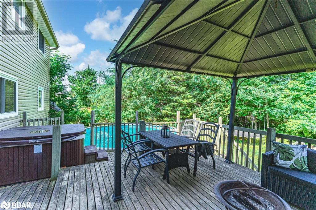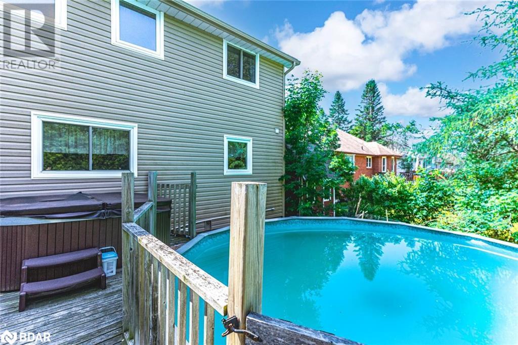 EXPERIENCE PEACEFUL BEACH TOWN LIVING ON A BEAUTIFUL TREED LOT! Dreaming of a peaceful spot just minutes from the beach? This family-friendly home in the Blueberry Trails neighbourhood offers laid-back living, a bright open layout, and a private backyard retreat built for making memories. Enjoy close proximity to shops, restaurants, the arena, everyday essentials, and the world’s longest freshwater beach. Set on a 60 x 180 ft treed lot surrounded by mature trees, this home offers privacy, a double-wide driveway, and an attached double-car garage with a convenient side door. The covered front porch creates a warm welcome, while inside, over 2,200 finished square feet of living space awaits. The open-concept main floor is filled with natural light, soaring vaulted ceilings, updated flooring, and a walkout to the back deck. The kitchen features stainless steel appliances, ample cabinetry, a double sink, tile floors, and generous counter space. The main floor also features a full bath, ideal for guests or busy family life. The primary bedroom presents double closets and an ensuite bathroom. A second bedroom, with a walk-in closet, and a third bedroom share a well-appointed 4-piece bath with an updated vanity. The lower level adds even more appeal with a spacious rec room that’s perfect for movie nights, a fourth bedroom for guests or family, and another full bath for added convenience. Step outside and experience your own private backyard oasis. Surrounded by towering mature trees, this space is the ultimate place to relax and entertain. Lounge in the sun on the expansive deck, unwind in the shade under the hard top gazebo, or take a refreshing dip in the pool. When the evening sets in, gather around the fire pit, enjoy a peaceful soak in the hot tub, and take in the stars above. Two sheds provide extra storage for all your outdoor essentials, making this backyard as functional as it is relaxing. This #HomeToStay is your very own staycation, every day of the week. (id:51158)